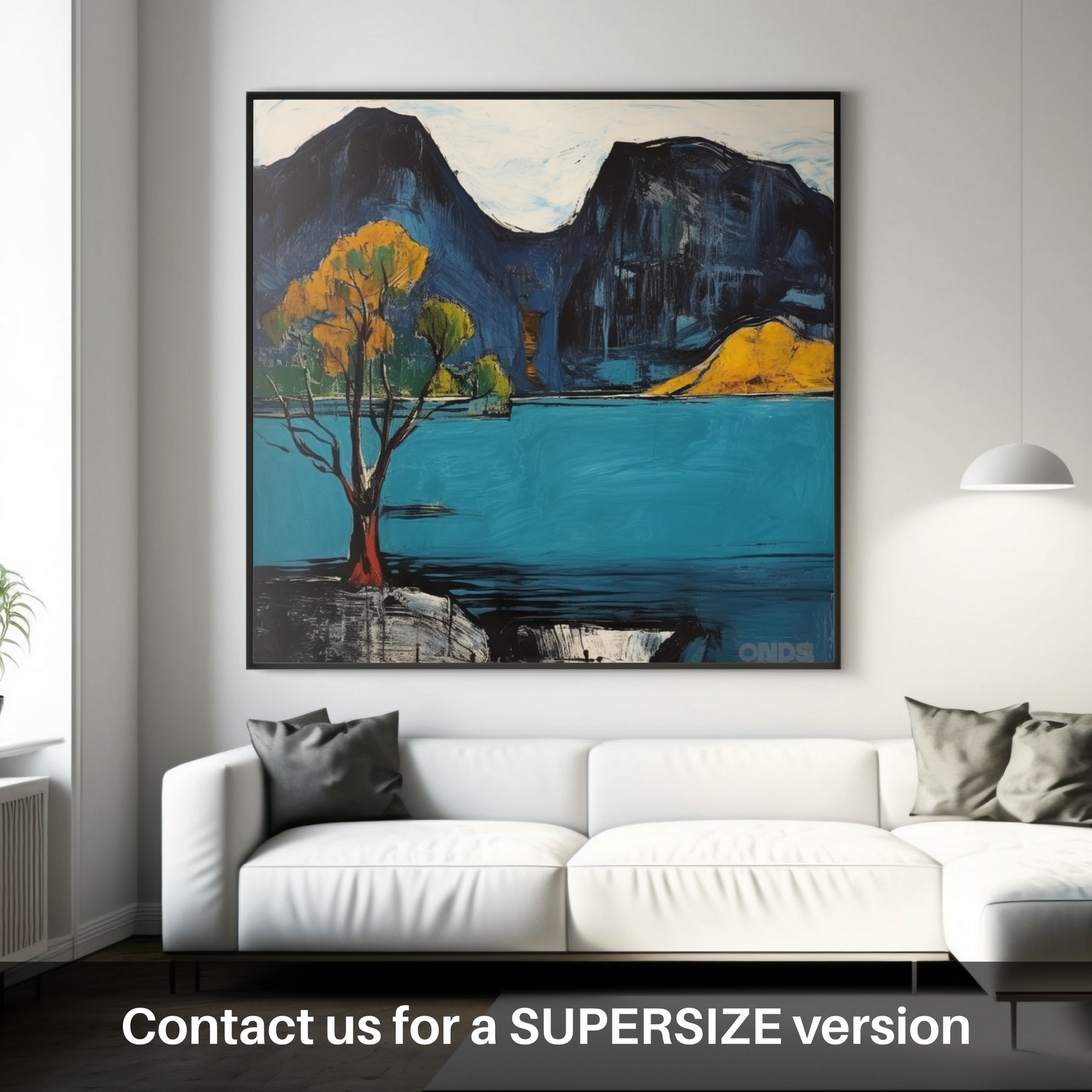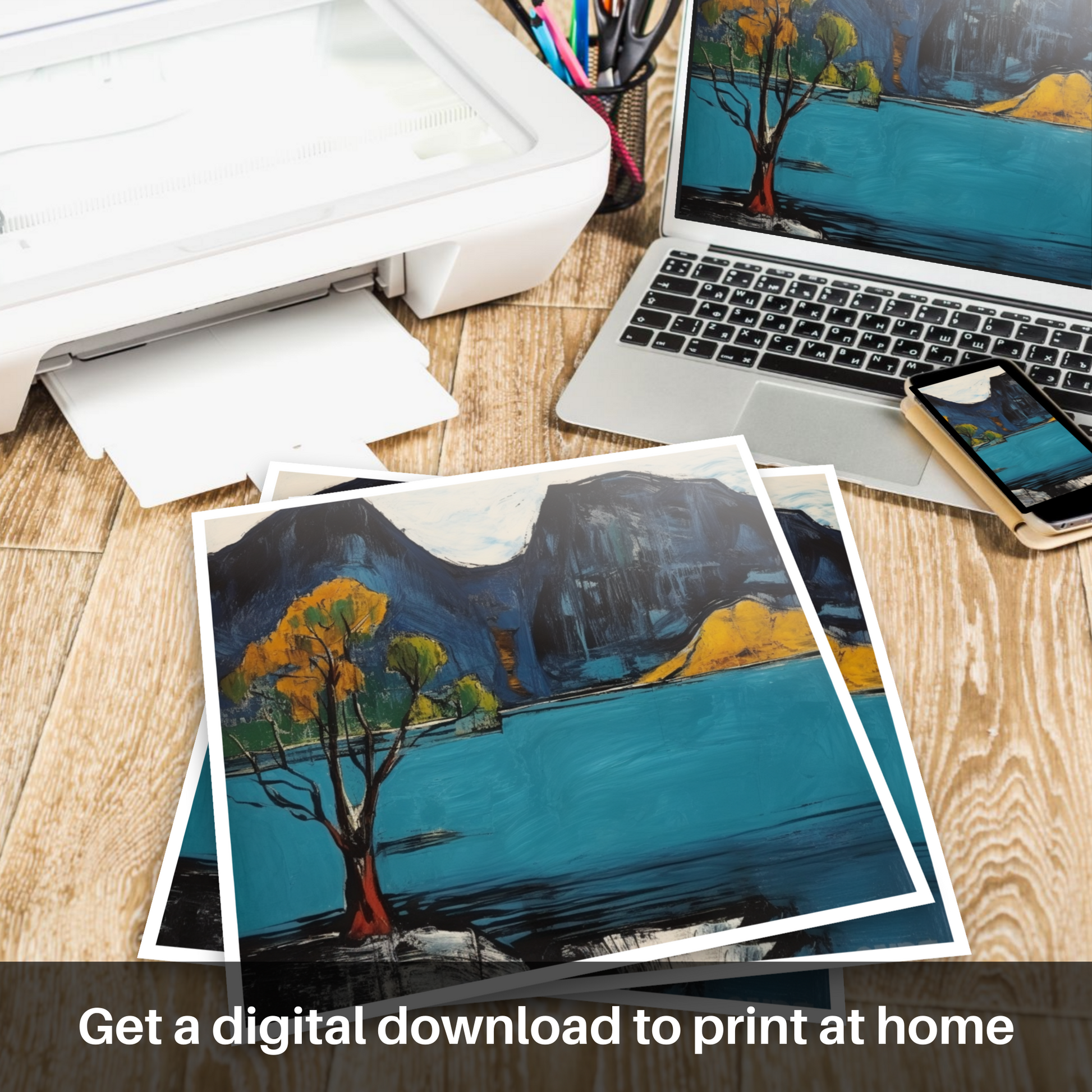 Immerse yourself in the vibrant simplicity and tranquillity of the Scottish Highlands with this charming piece, inspired by the serene beauty of Loch Maree in Wester Ross. A vivid representation of Naive Art, this print captures the unspoiled splendour of one of Scotland's most picturesque lochs with a refreshing, child-like perspective that conveys a story of nature in its purest form.