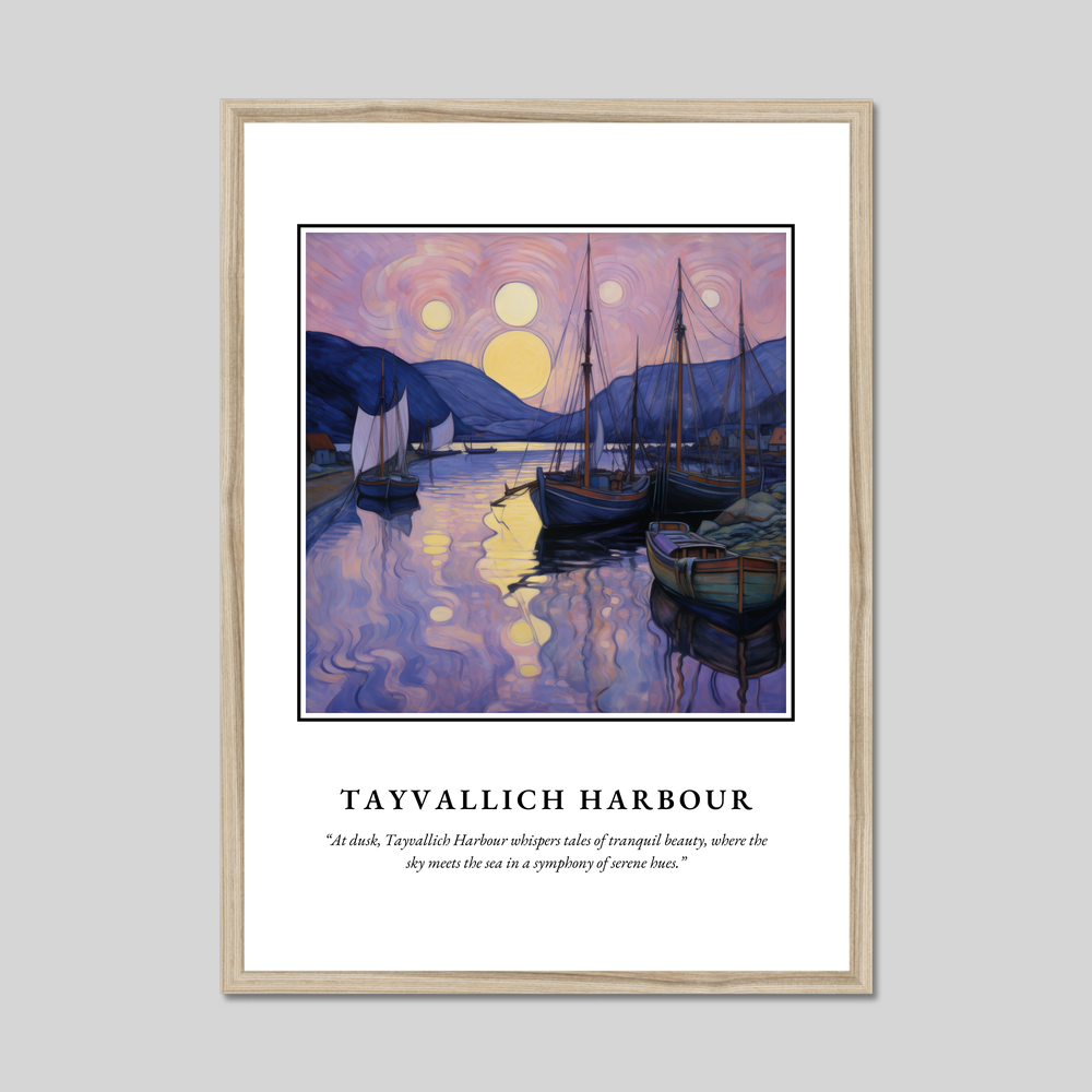 Discover the serene elegance of the Scottish coastline with our exquisitely designed framed poster print from the “Scottish Harbours” collection. Measuring a substantial 50cm x 70cm and available in a choice of black, white, or natural wood-effect frames, this piece is the perfect addition to any art lover's home without overwhelming your budget. It's an ideal statement piece for those who hold a special connection to the enchanting locale of Tayvallich Harbour or for admirers of the graceful Art Nouveau style.
