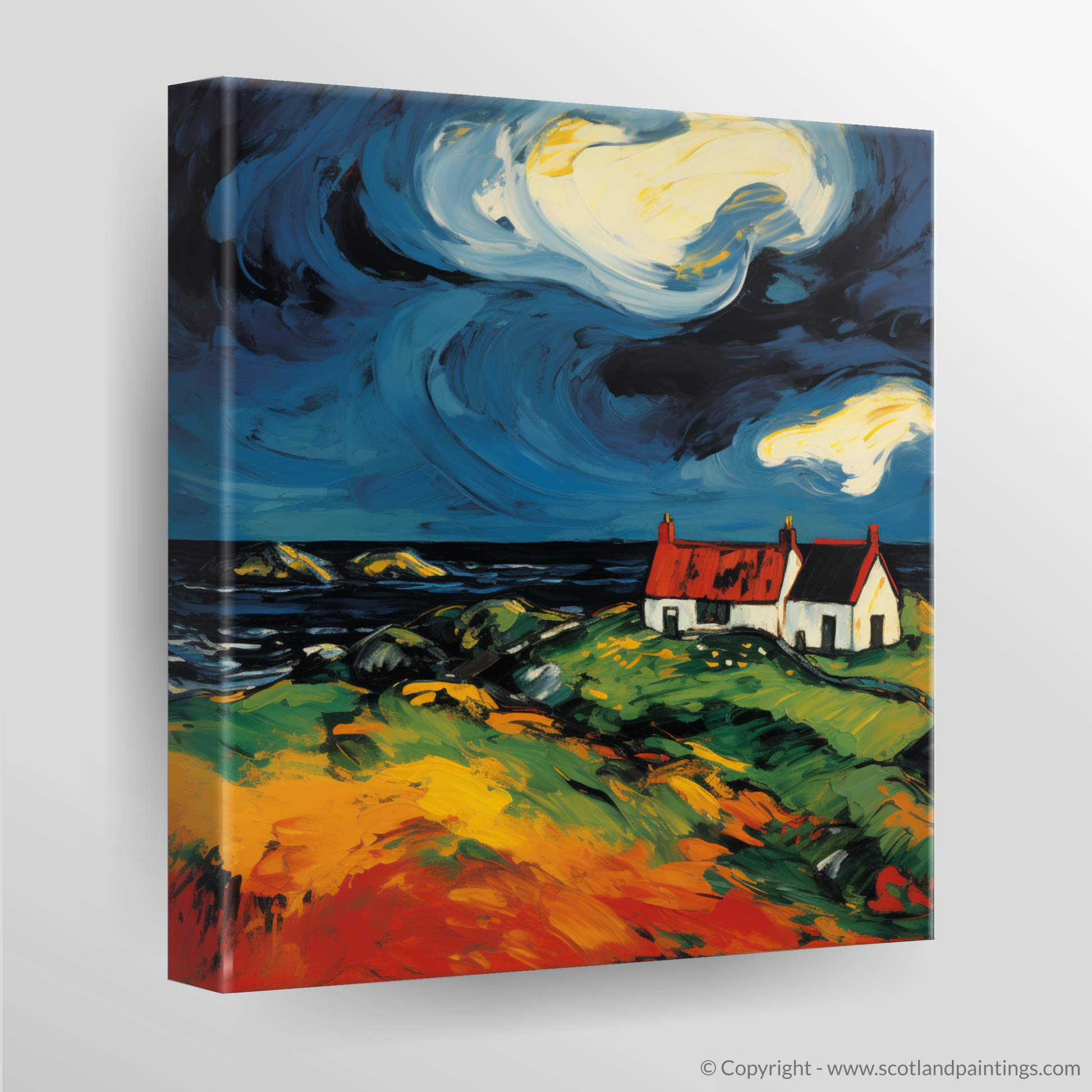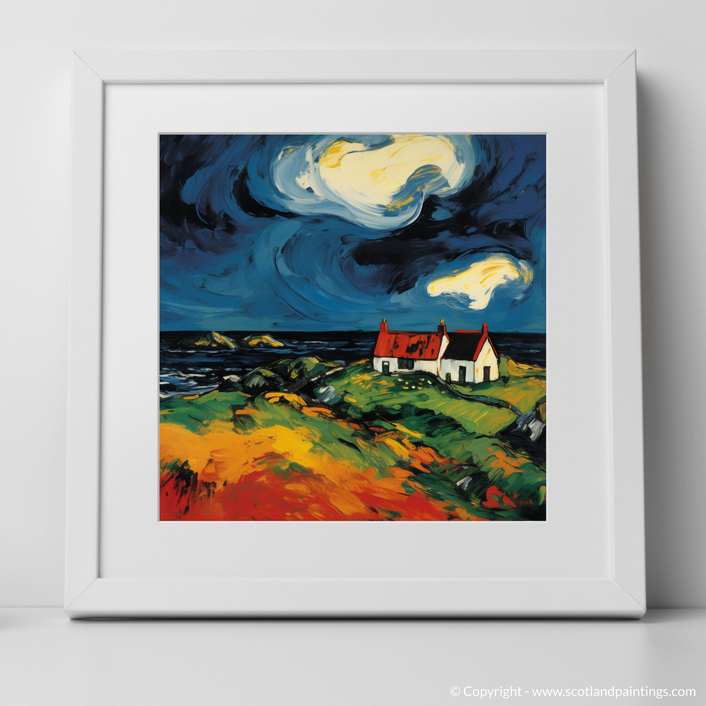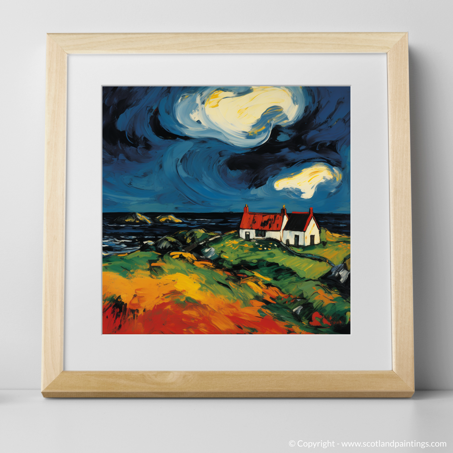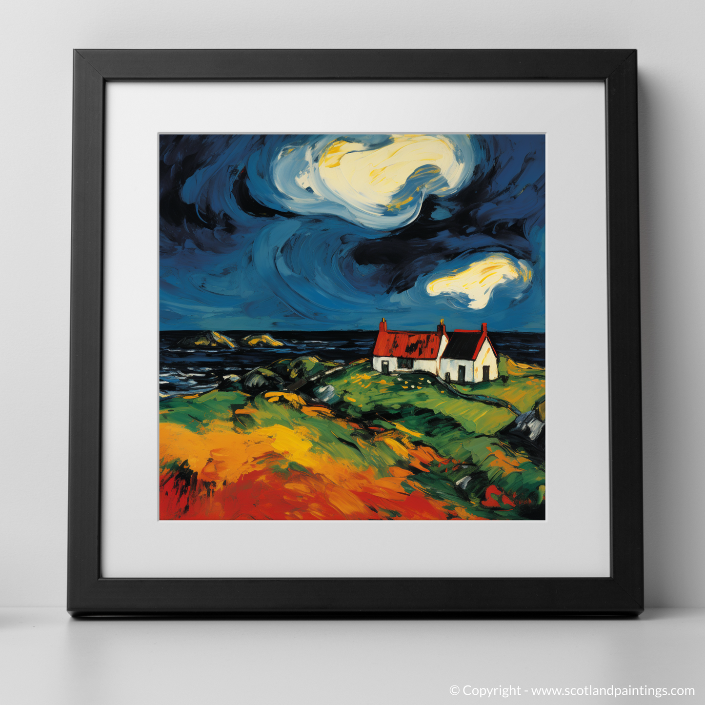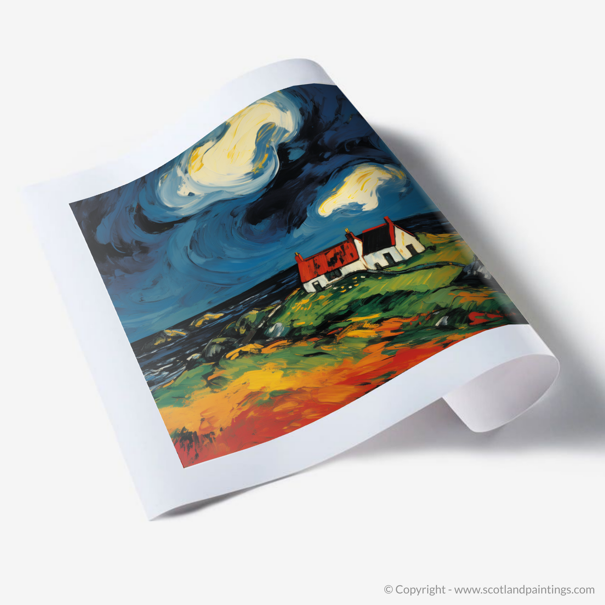 This print is a celebration of the Scottish Isles' unique spirit, providing an artful homage to the solitary structures that dot these ancient landscapes. It is a piece that will add a vibrant burst of life and a touch of the untamed to any space in which it is displayed.