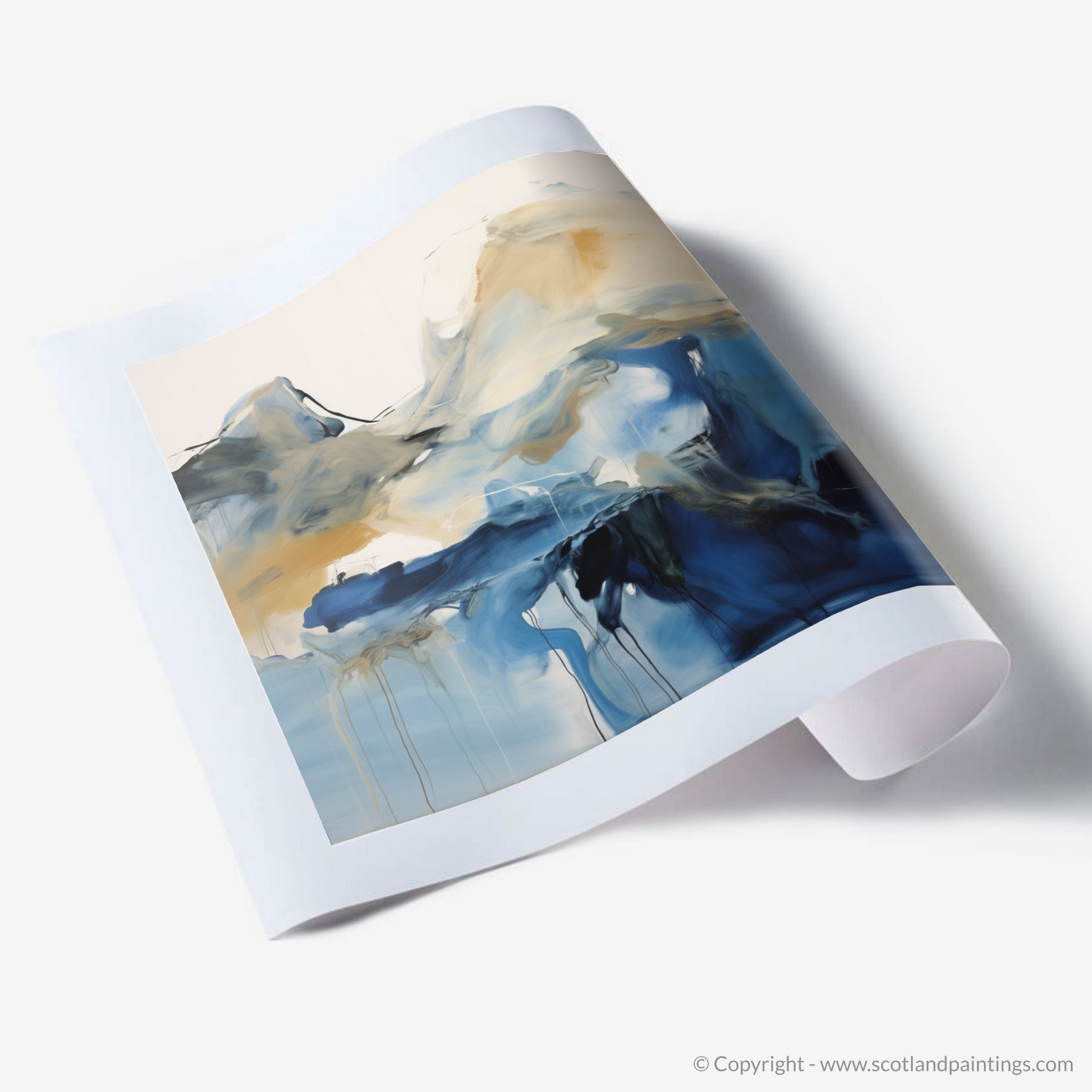 Immerse your senses in the evocative allure of Highland serenity with this captivating abstract print that eloquently whispers of Fort William's mystique. Envision being enveloped in the transformative landscape of Scotland, where the sprawling grandeur of the peaks and valleys comes alive through the fluid dance of form and colour.