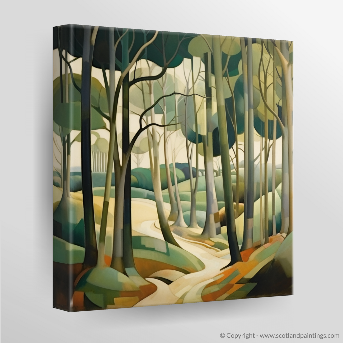 The undulating rhythm of the landscape is palpable, as the Cubist style lends movement and depth to the rolling terrain. The portrayal creates an almost palpable sensory experience as if one can almost hear the whispering of leaves and feel the hum of the ancient forest floor beneath.