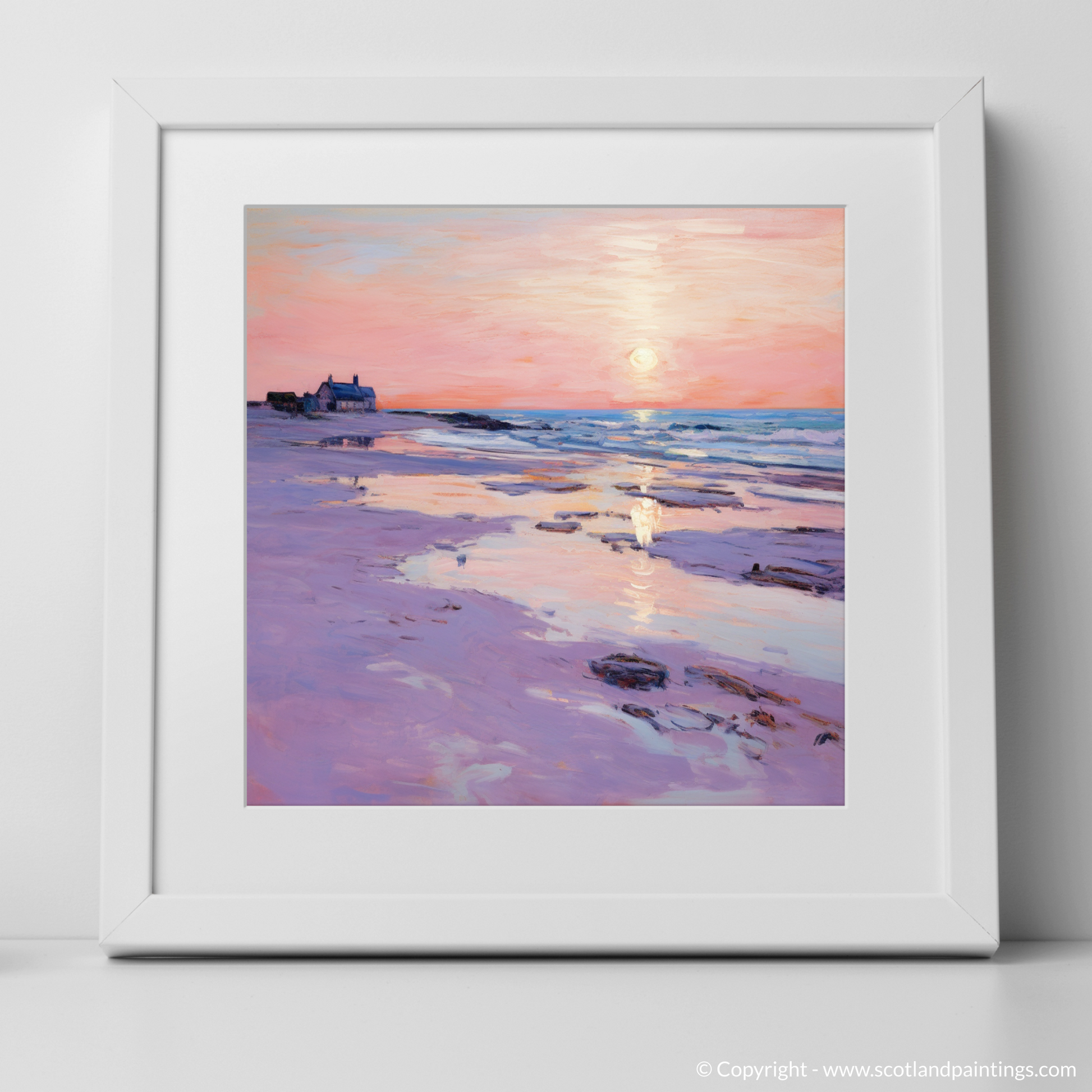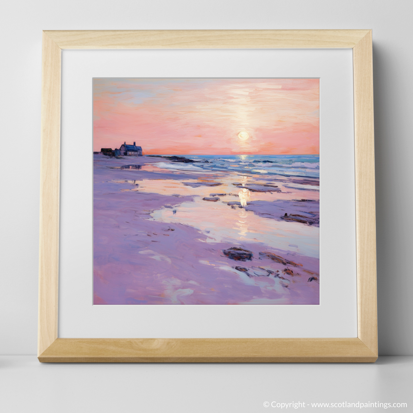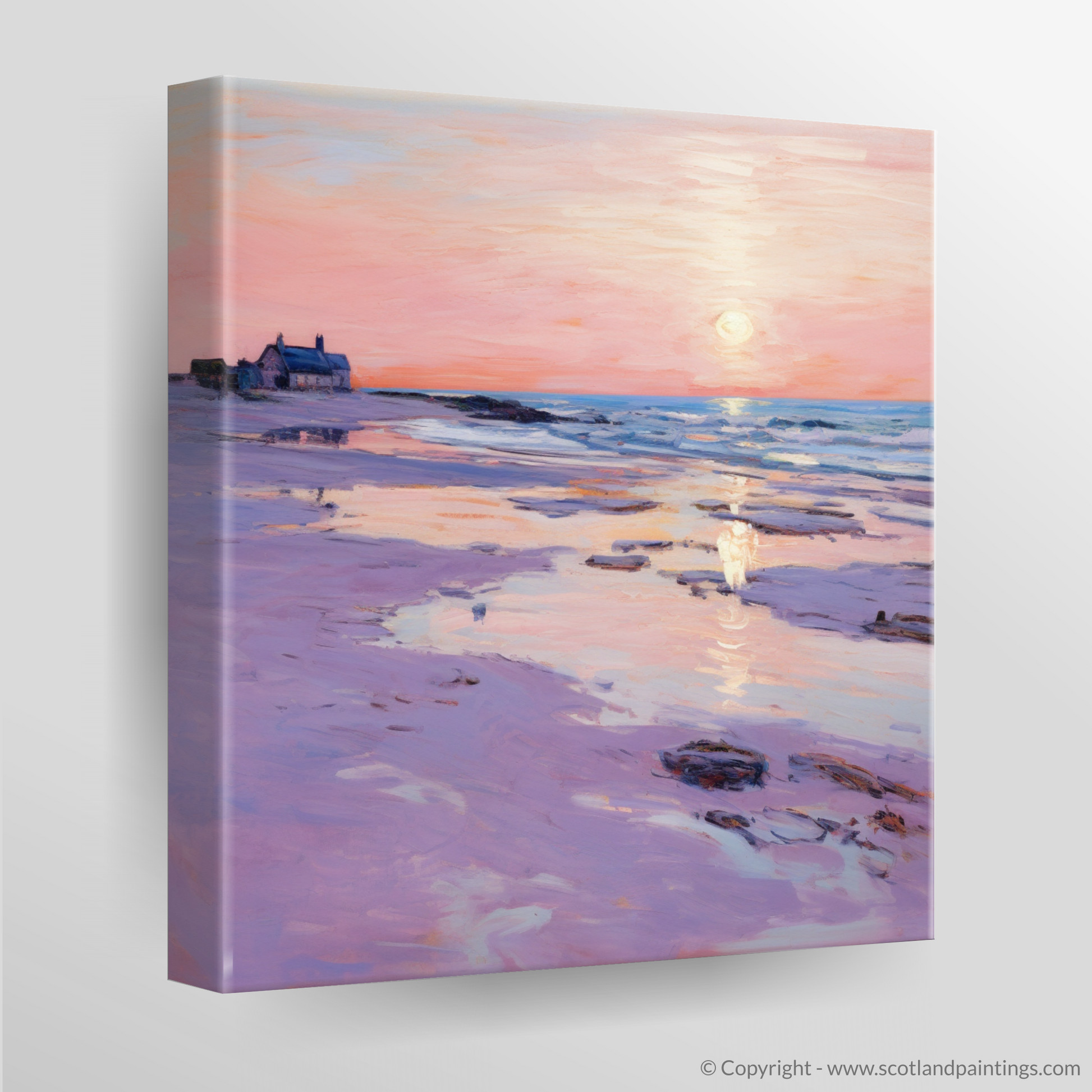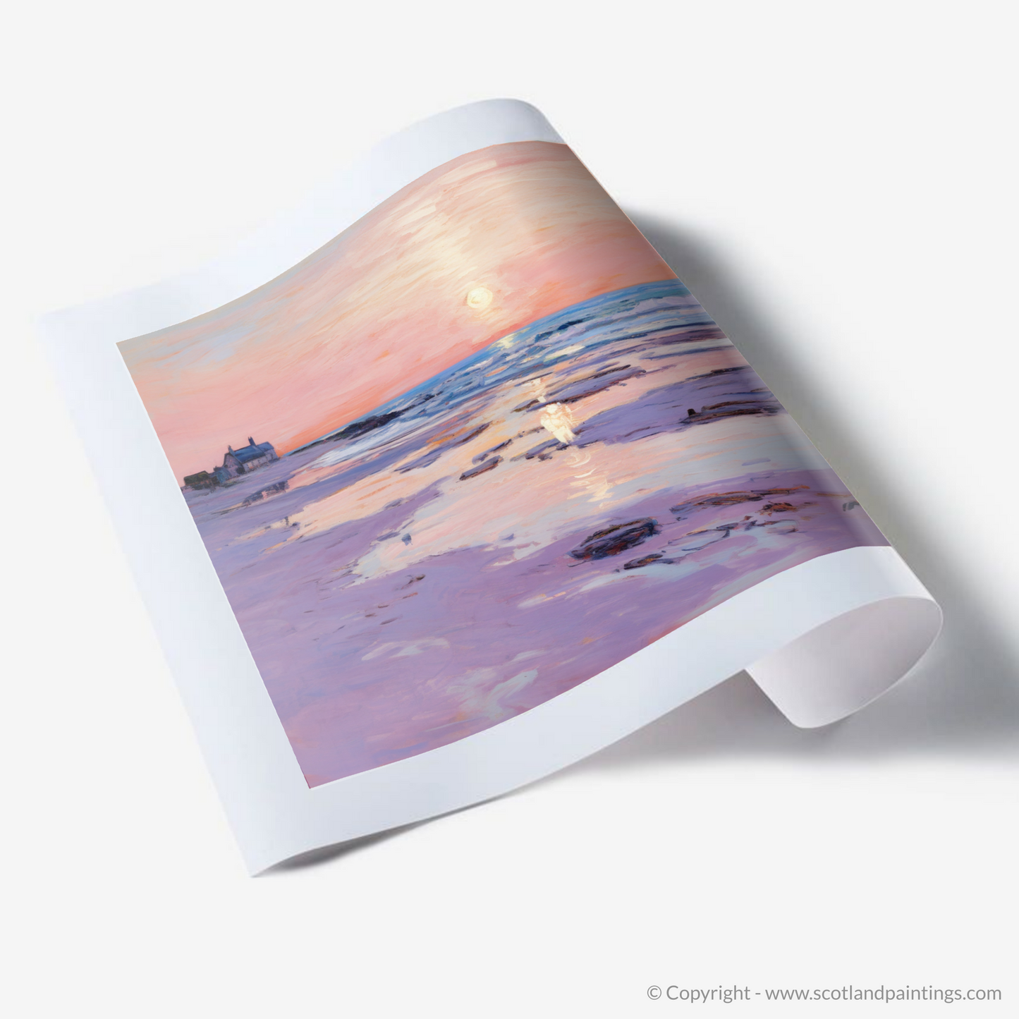 Capturing the sublime tranquility of West Sands as the day relinquishes its hold, this evocative print evokes the serene beauty of a Scottish beach at dusk. The Impressionistic strokes swirl in a melody of pastel hues, where the sky is awash in a symphony of roseate and lavender tones that reflect gracefully upon the wet sands beneath.