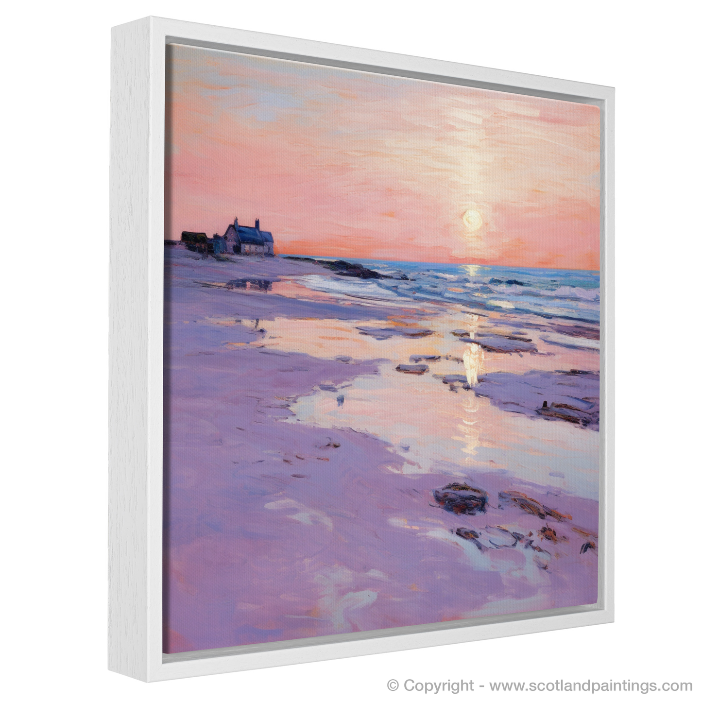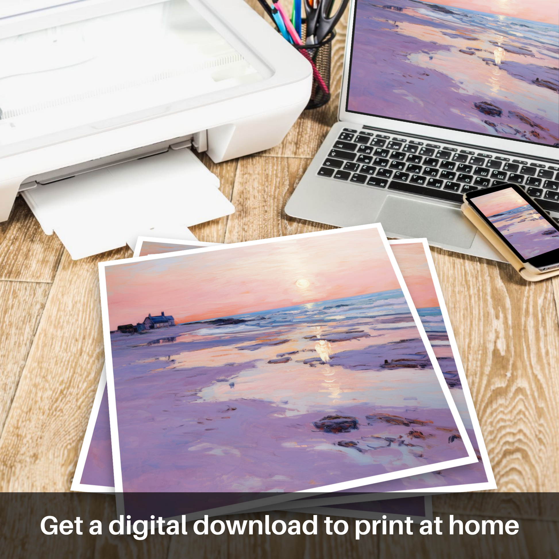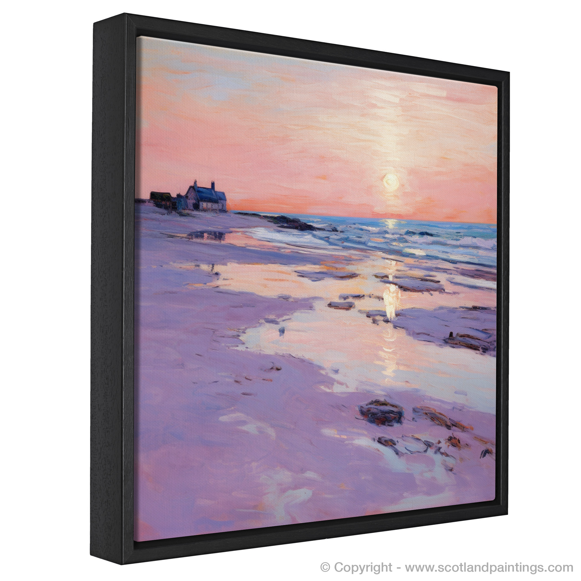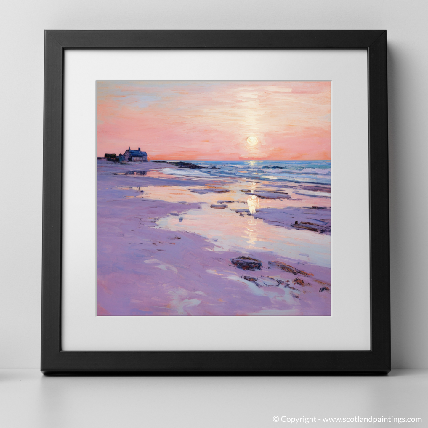 Capturing the sublime tranquility of West Sands as the day relinquishes its hold, this evocative print evokes the serene beauty of a Scottish beach at dusk. The Impressionistic strokes swirl in a melody of pastel hues, where the sky is awash in a symphony of roseate and lavender tones that reflect gracefully upon the wet sands beneath.