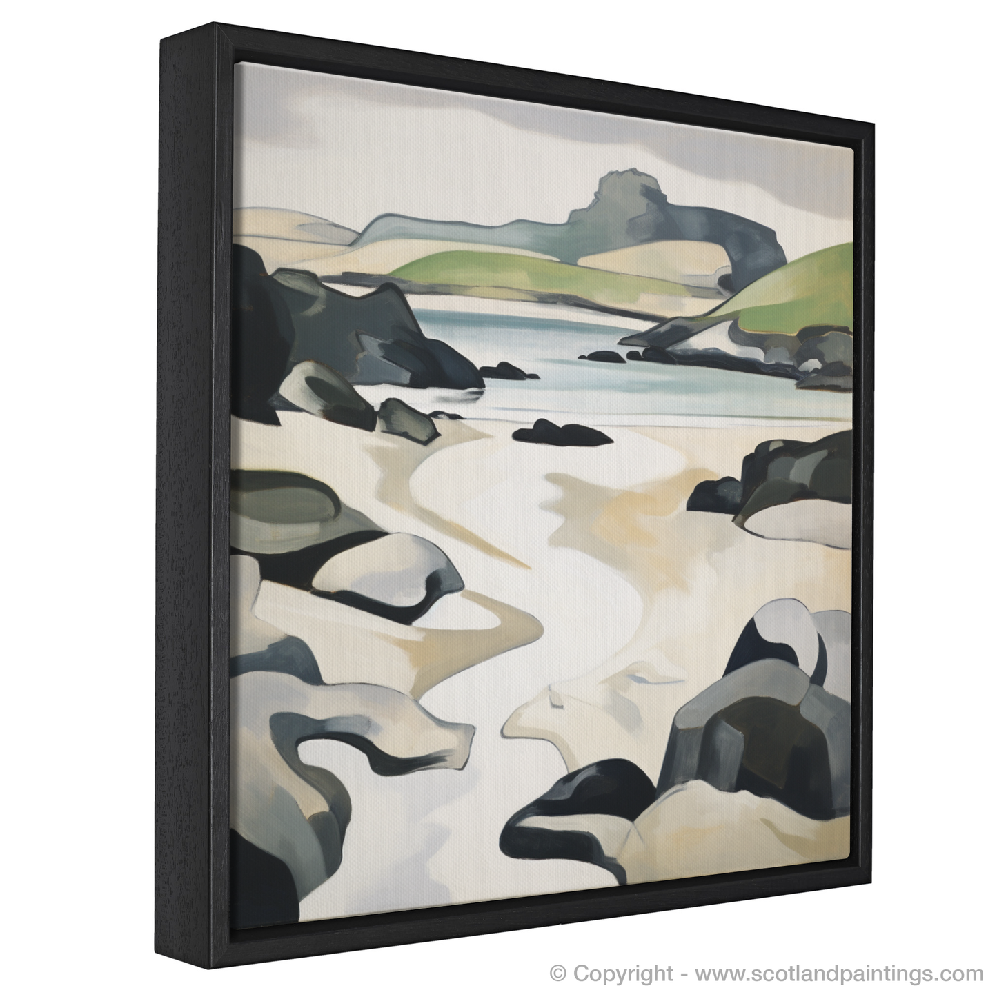Immerse yourself in the splendour of Scottish shores with this captivating rendition of Kiloran Bay, Isle of Colonsay. The print indulges the onlooker with a symphony of geometric shapes and fragmented forms synonymous with Cubist artistry. Angular lines intersect and overlap, crafting a dynamic reinterpretation of the beach's serene landscape.