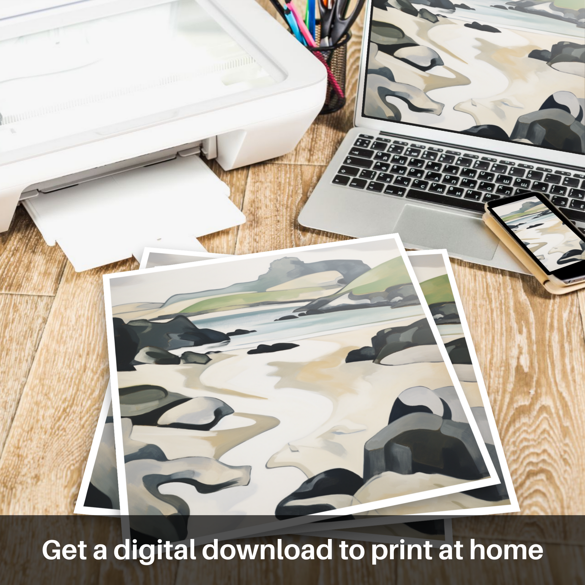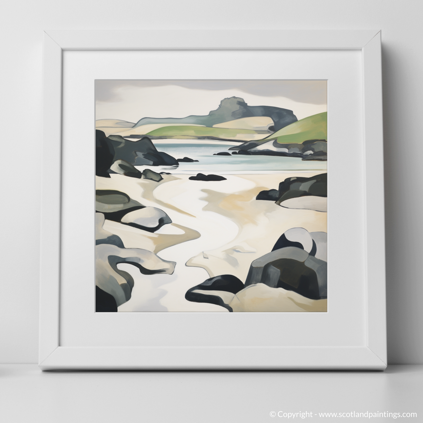This print, from our 'Scottish Beaches' collection, represents a bold, yet understated addition to any space, seamlessly blending with diverse decor styles while inviting contemplative gazes and sparking conversations. Robust in structure yet whimsical in spirit, it is an ode to Scotland’s coastal charm, crafted to resonate with both art enthusiasts and lovers of nature's splendour alike.
