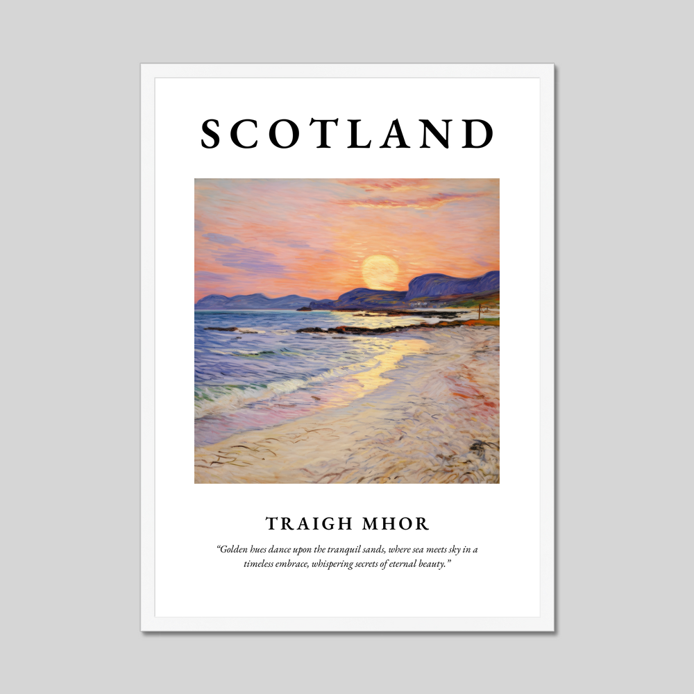 This poster not only pays homage to Traigh Mhor’s enchanting allure but also invites you to immerse yourself in the peaceful ambience of one of Scotland’s most treasured coastal retreats. A perfect addition for those longing for a piece of Scotland's unforgettable charm.