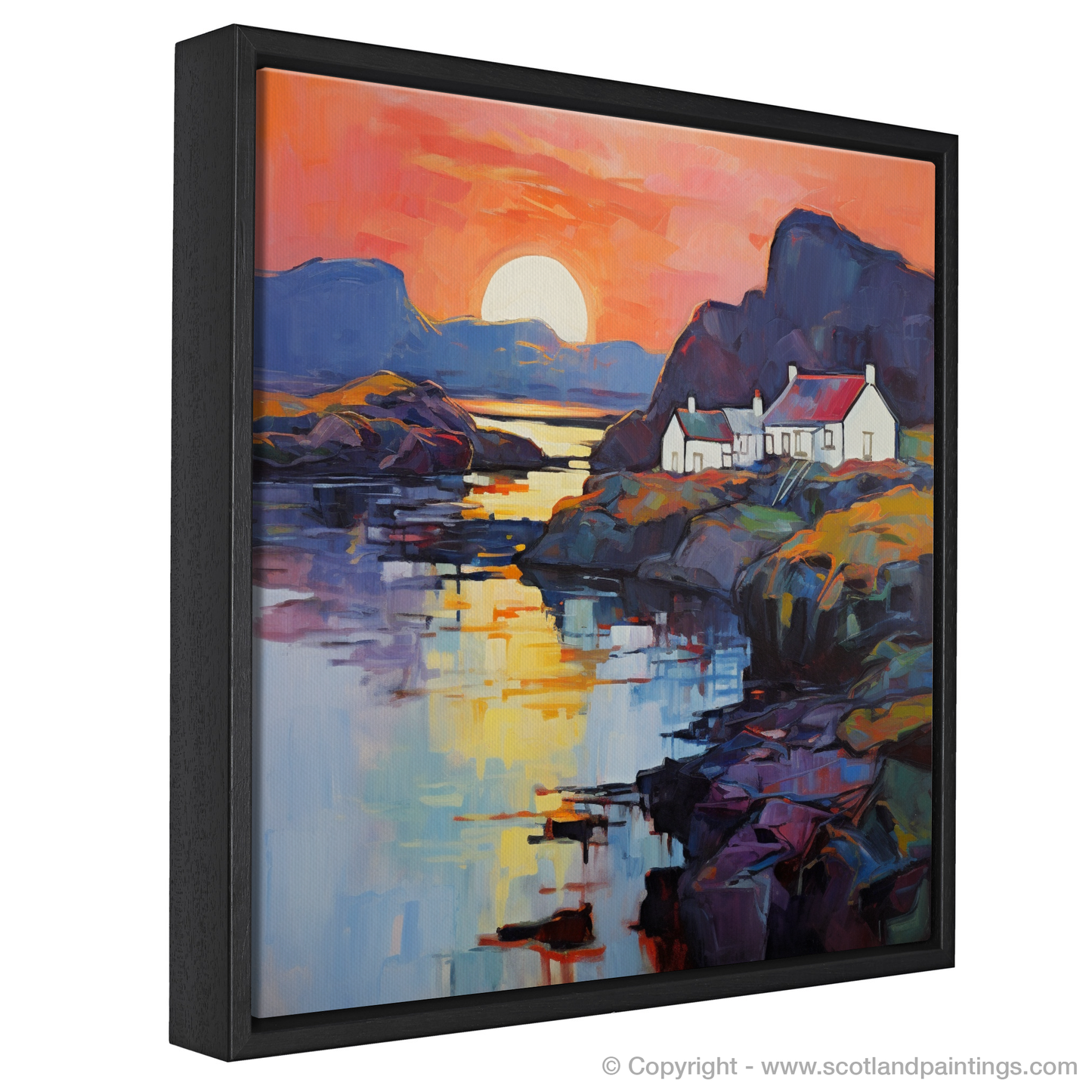 This bold piece, inspired by the Fauvist movement, breaks away from traditional representation and drenches the senses in the sheer intensity of colour and form. It is an ode to the wild and rugged beauty of Scotland's coastal enclaves—a poignant reminder of the tranquil solitude one can find at day's end in nature's embrace.