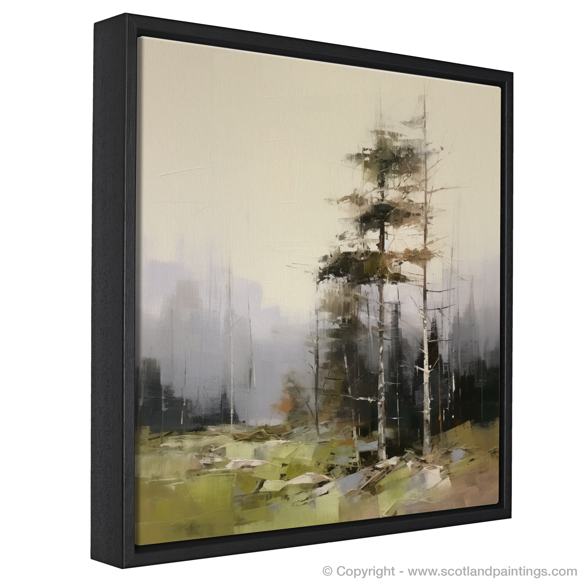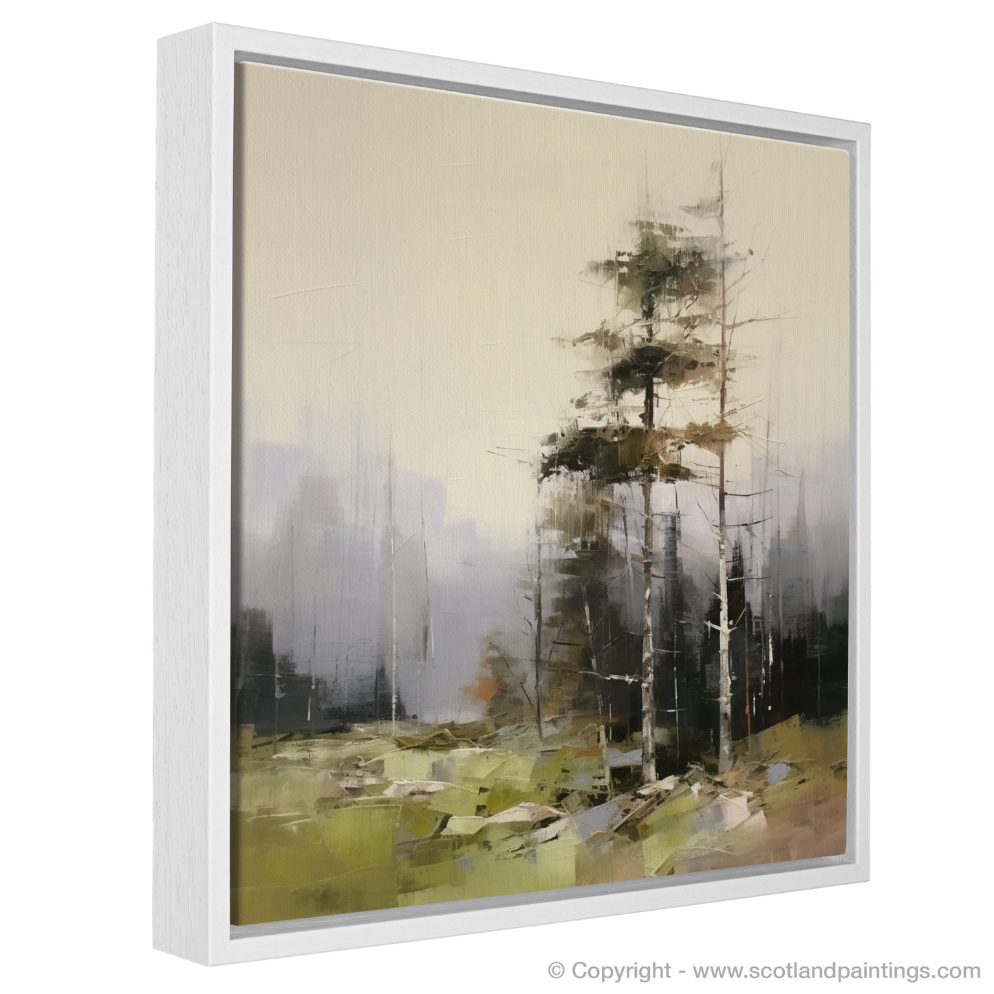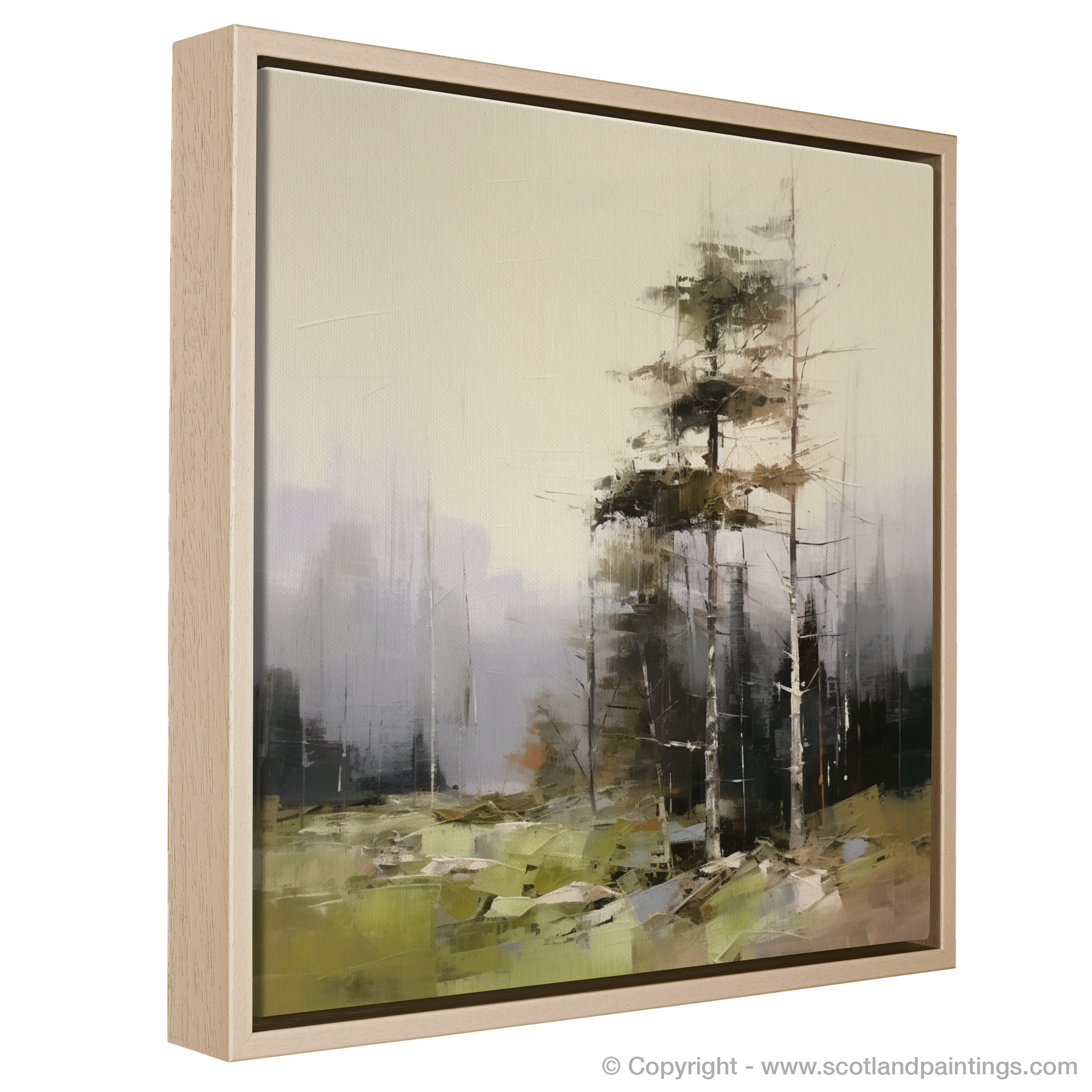 Embrace the serene simplicity of the Scottish Highlands with this evocative piece inspired by Morvern Forest. A paean to minimalism, the artwork distills the forest's essence into a serene symphony of muted tones and abstract forms. The foreground hints at a rough terrain, with swathes of earthy greens and hints of yellow suggesting a wild meadow or a moss-covered floor, providing a raw contrast to the softness of the backdrop. Wisps of white and grey intermingle to evoke an enigmatic mist that veils the woodland in mystery.