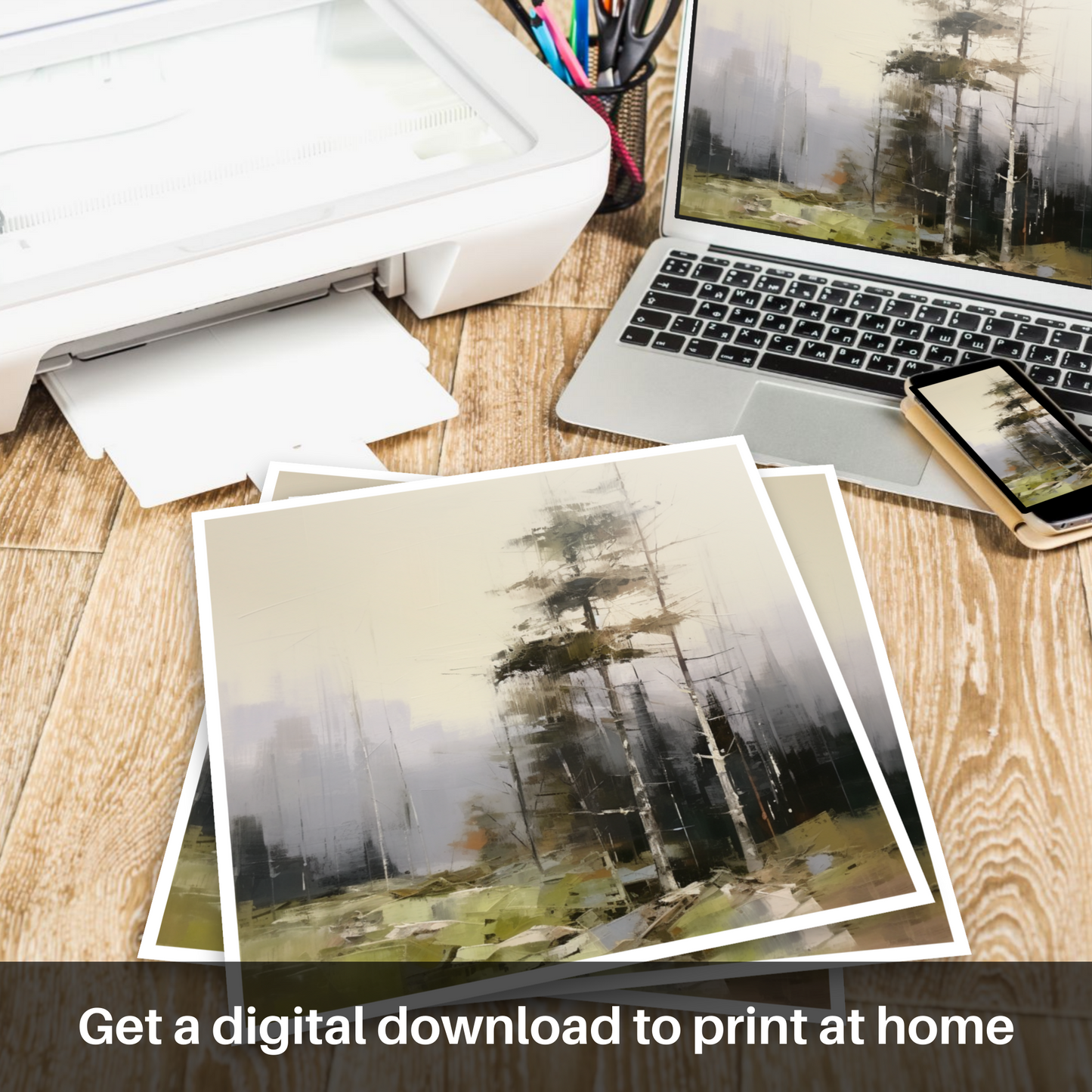 This print invites contemplation and introspection, offering a minimalist interpretation of Morvern Forest that complements any space with its understated beauty. A must-have for admirers of nature's timeless tranquility and the enchanting allure of Scotland's wooded havens.