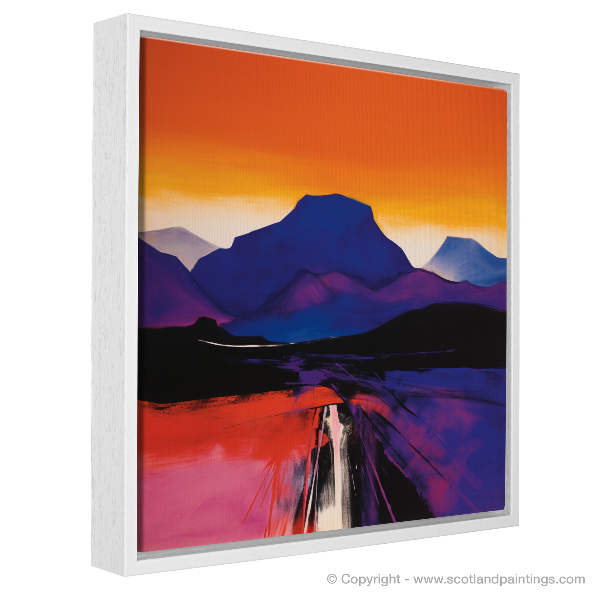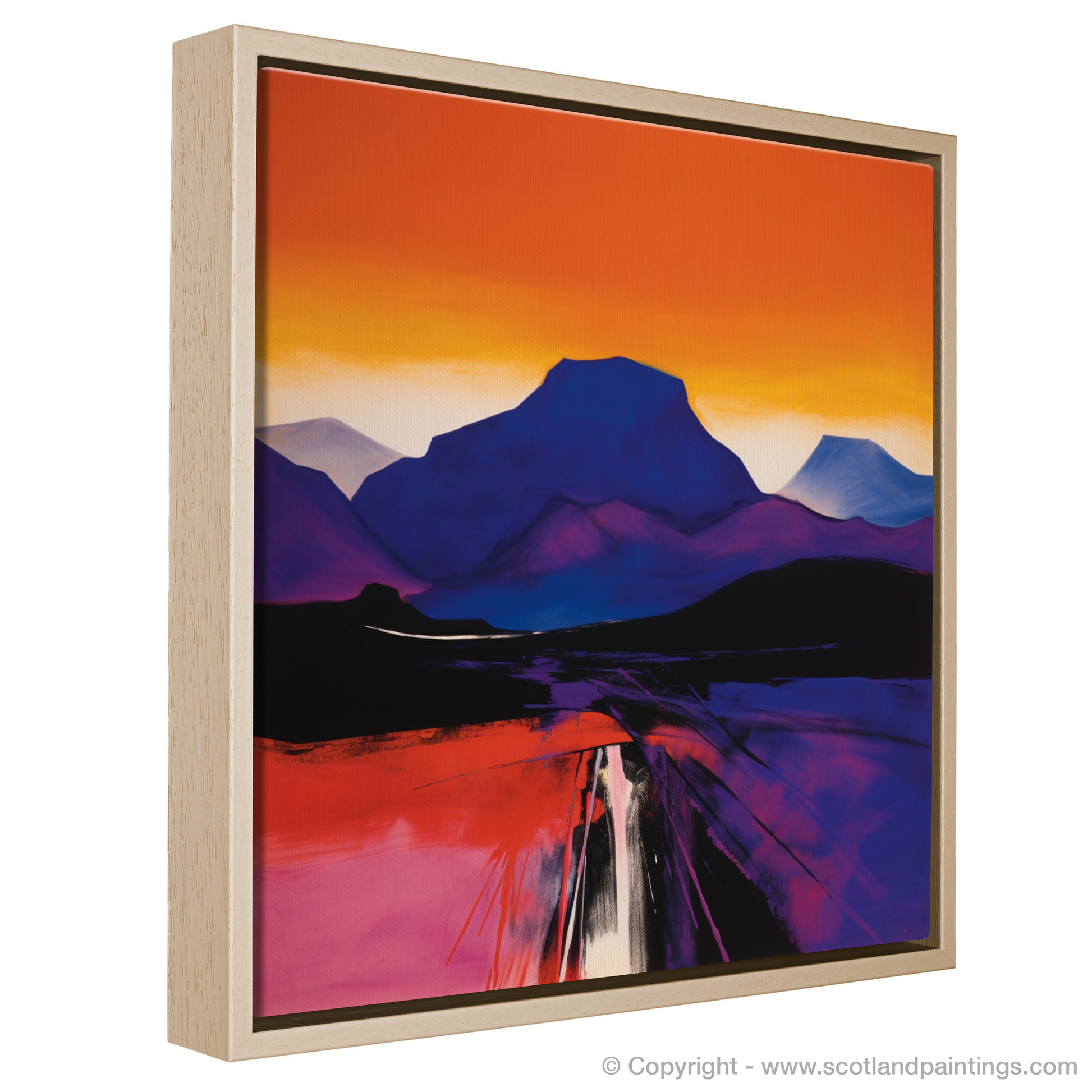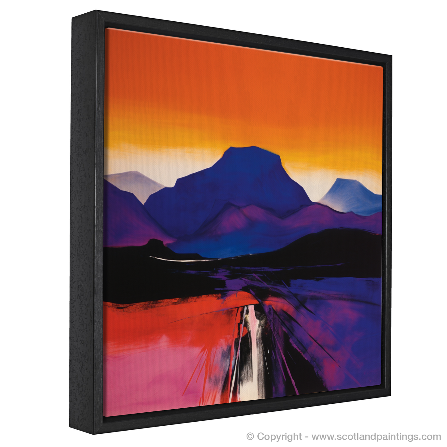This captivating piece is a part of the 'Scottish Mountains' collection, celebrating the natural splendour and atmospheric landscapes that Scotland is renowned for. Whether viewed as a homage to the serene beauty of the Highlands or as a statement piece brimming with vivid colour and abstract form, this print will surely enliven any space with its powerful presence.