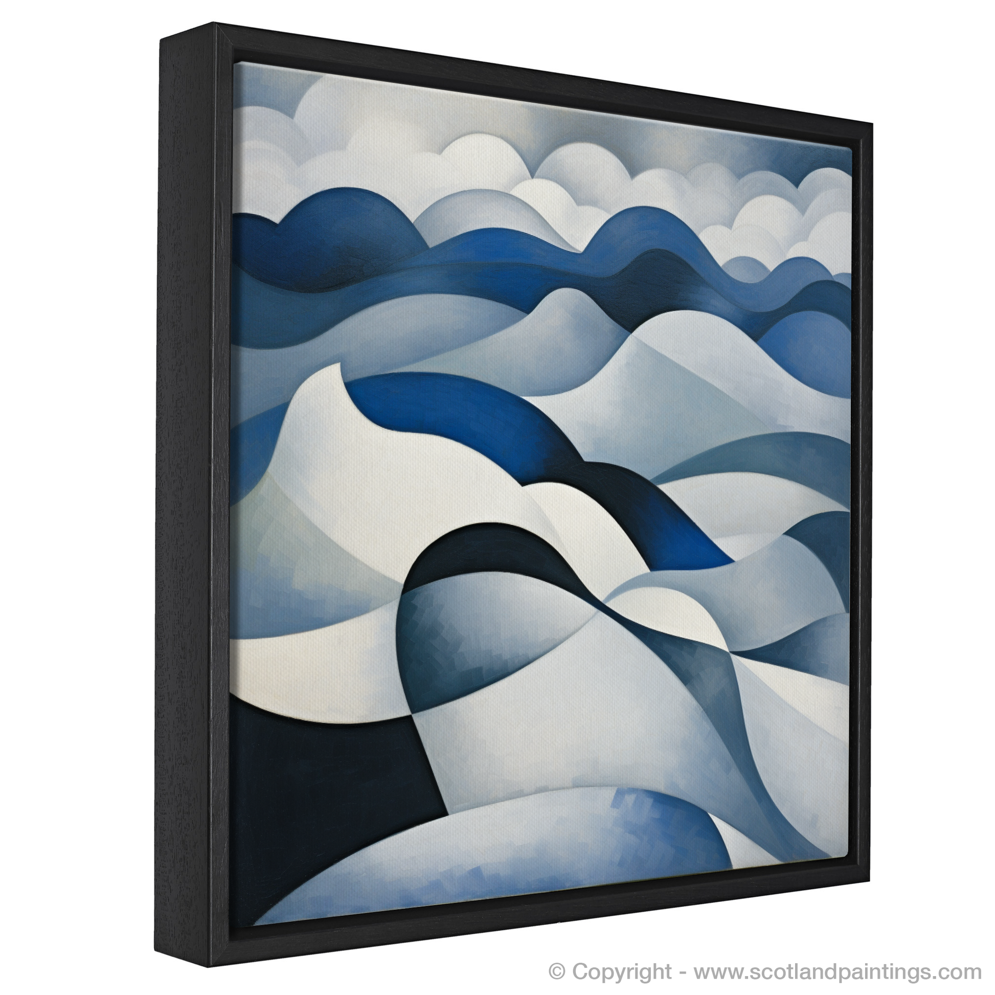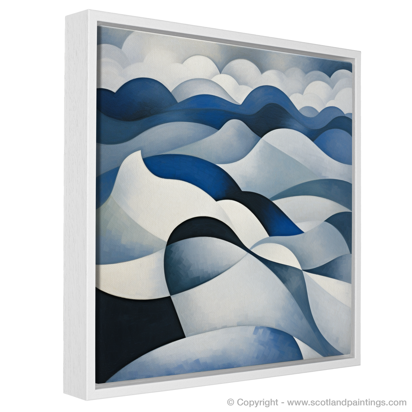 Imagine the powerful embrace of the tempestuous Scottish skies as they brood over the undulating dunes, encapsulated within this mesmerising abstract print, inspired by the Silver Sands of Morar. Evocative sweeps and curves dance across the canvas, portraying the wild, dynamic spirit of the highland shore with a symphony of cool blues and stark, contrasting whites.