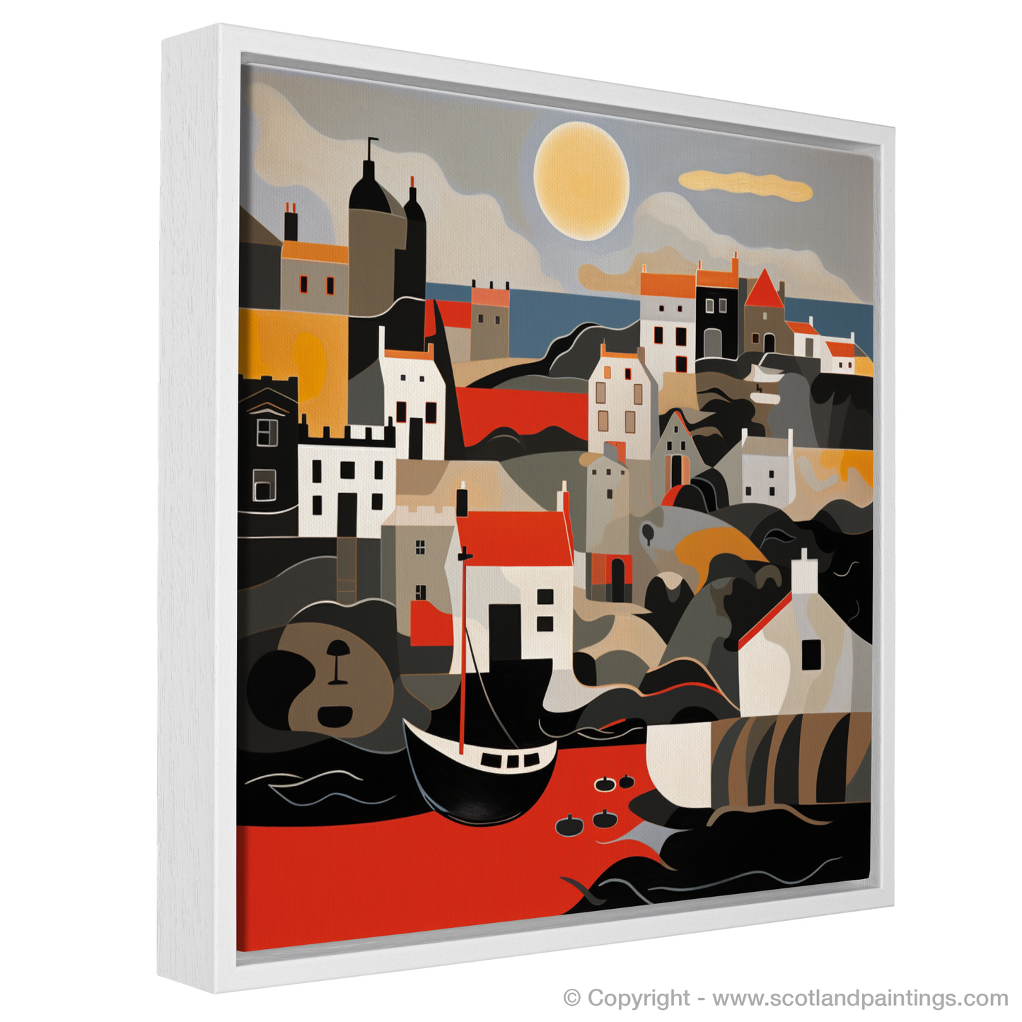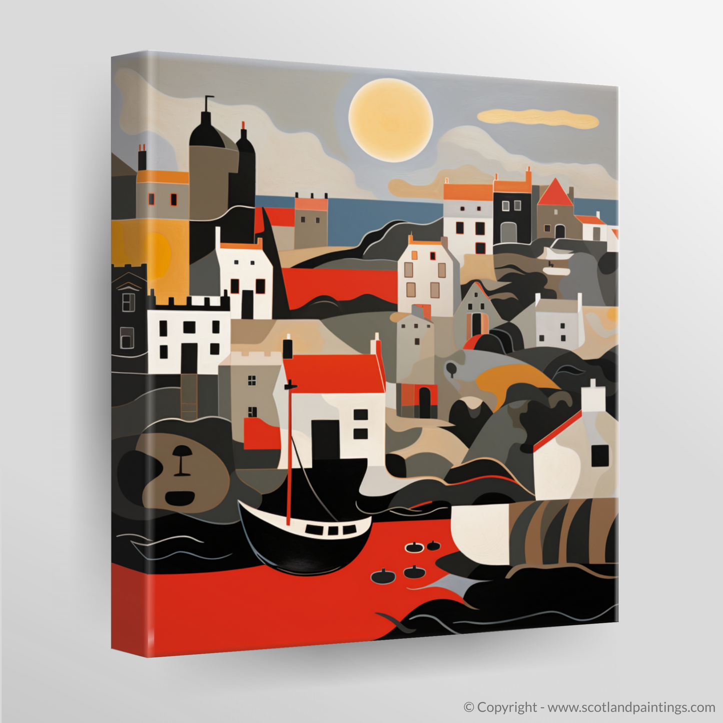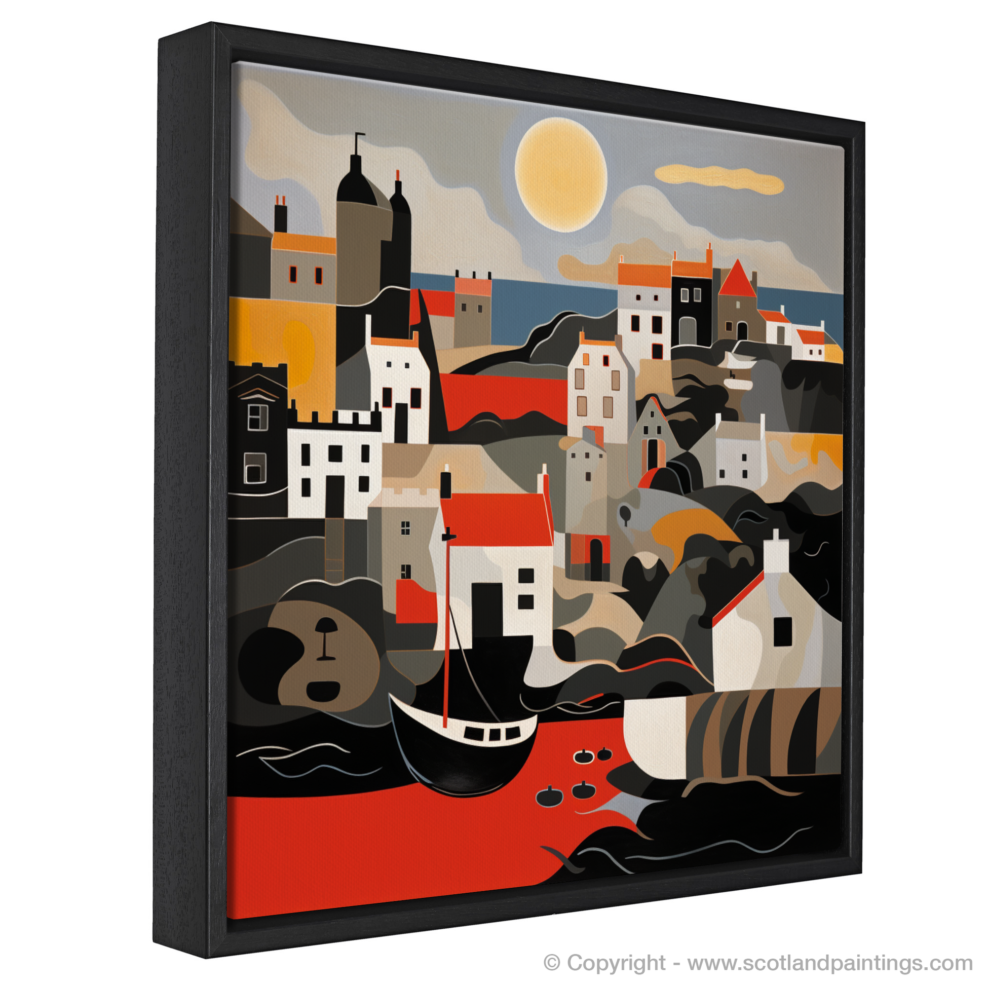 From the ripple of the waves to the tranquillity of the distant buildings, this print encapsulates the picturesque charm and romanticised mood of Scotland's coastal heritage. Whether a lover of abstract art or an admirer of Scotland's rugged coastline, this print offers a contemporary take on the timeless beauty that is Crail Harbour at golden hour.