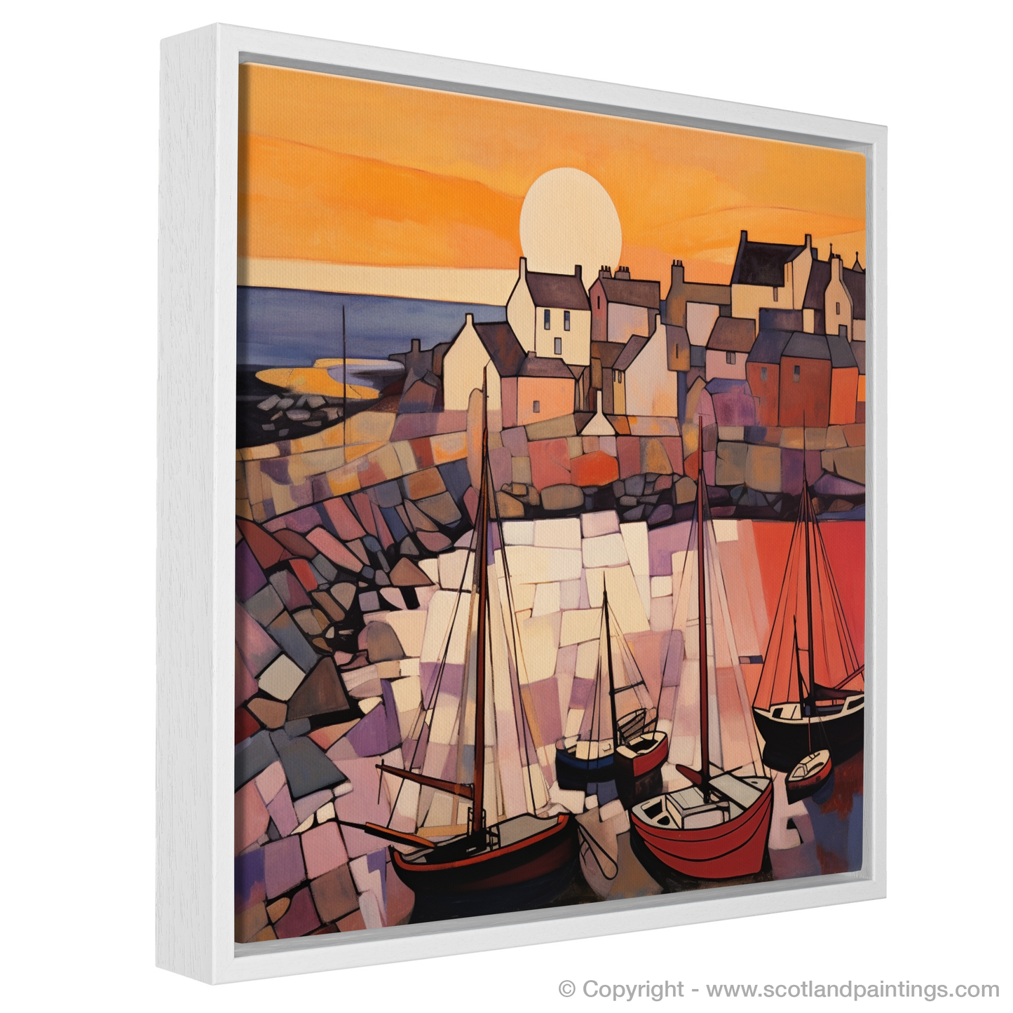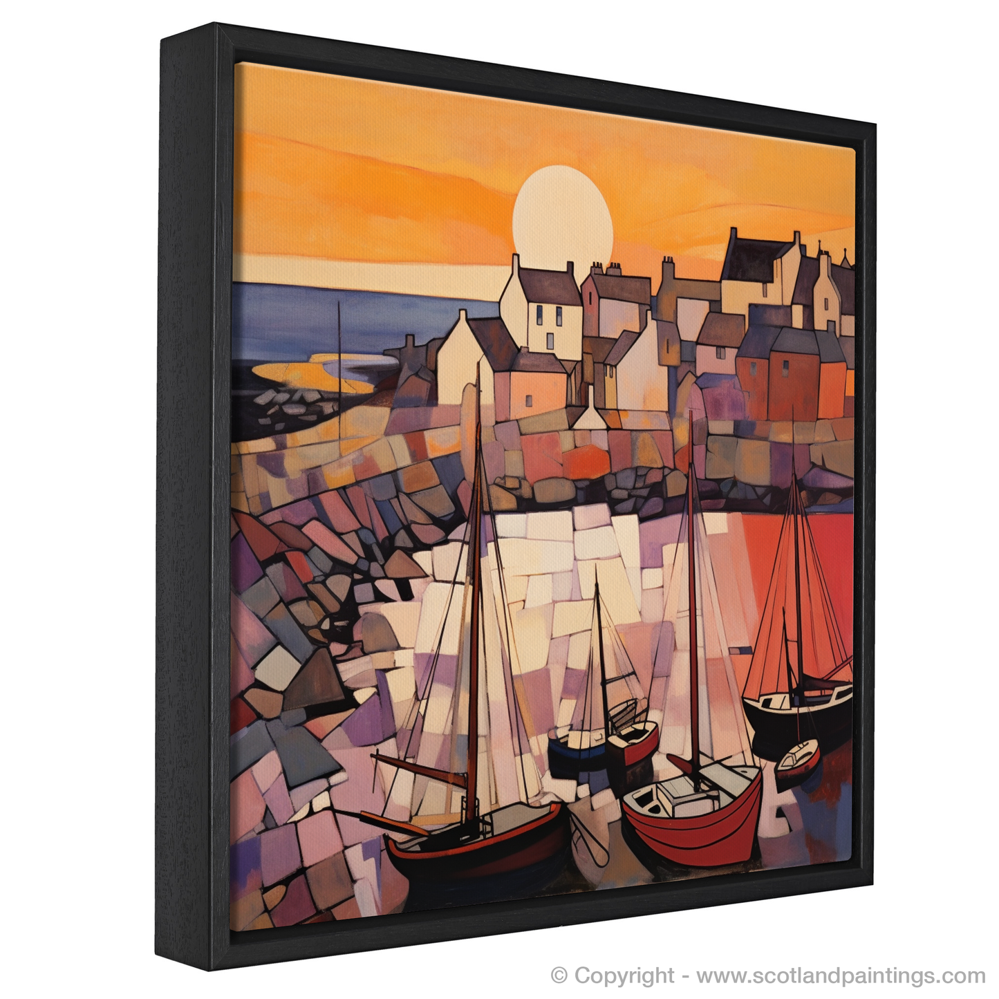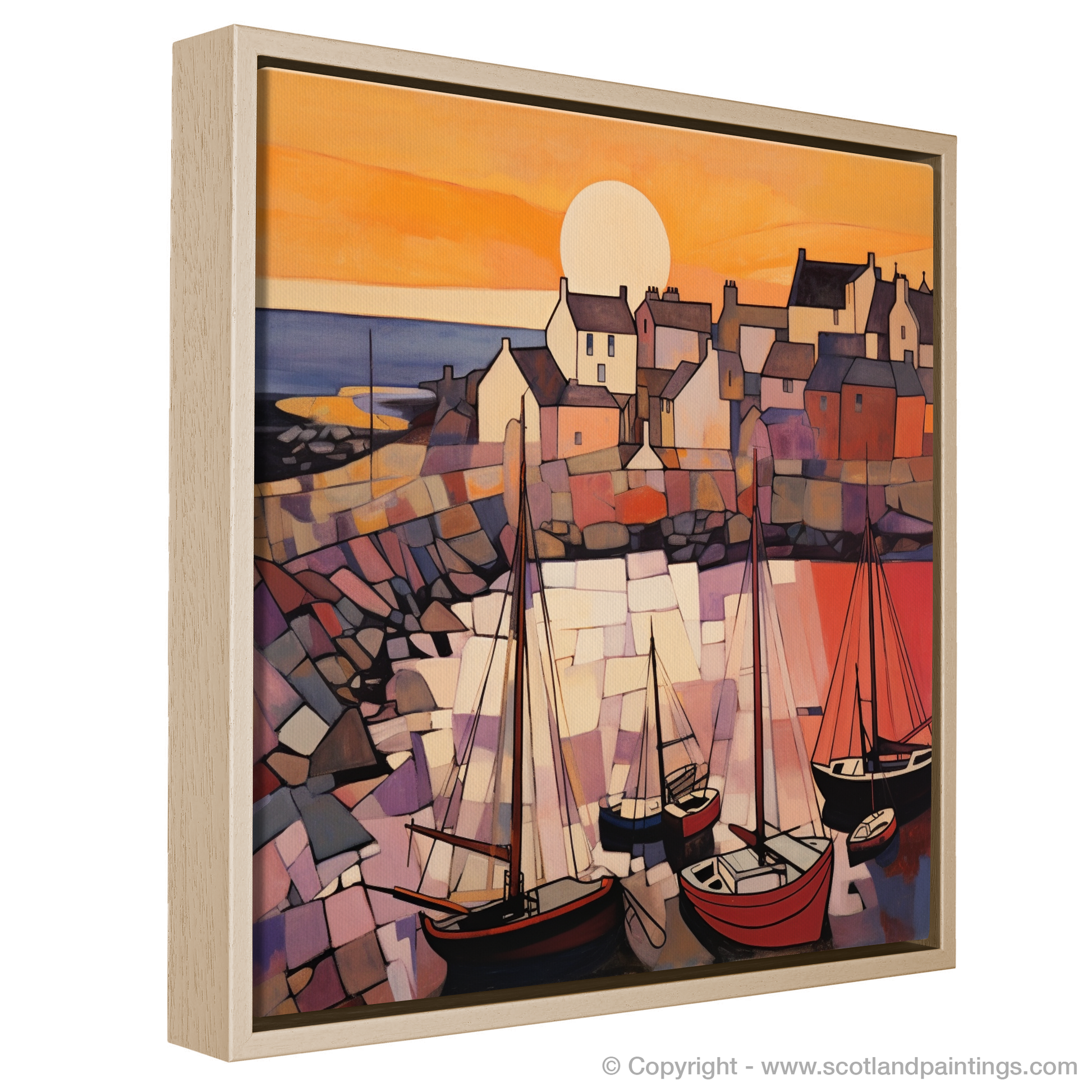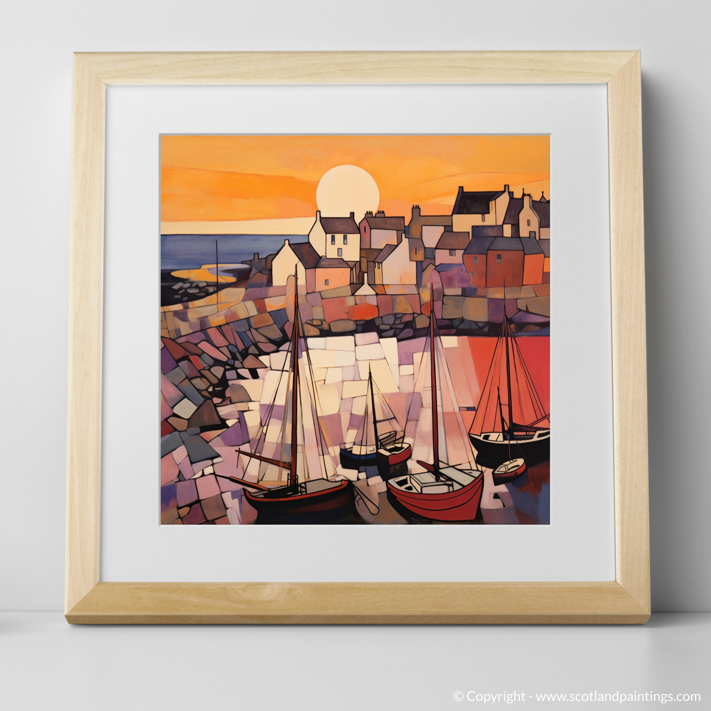 Immerse yourself in the geometric enchantment of Crail Harbour at the close of day with this inspired cubist interpretation of the picturesque Scottish scene. Angular forms and fragmented perspectives come together in a harmonious composition that reimagines the quaint coastal village and its maritime heritage.