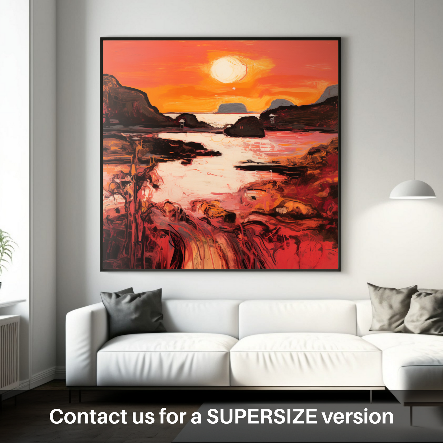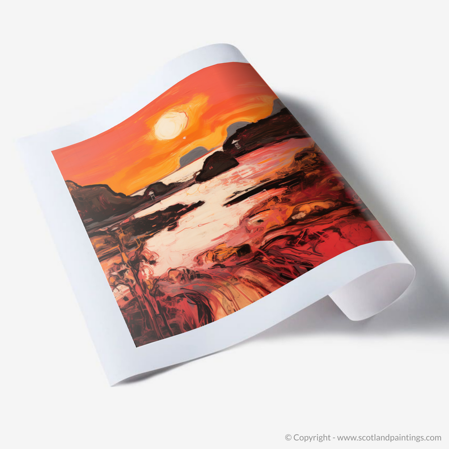 Let the essence of Scotland's natural grandeur grace your space with this evocative artwork, capturing the raw beauty of Shieldaig Bay at the day's golden hour. Embodying the spirit of Abstract Expressionism, the piece unfurls a panorama of vivid colours and dynamic brushstrokes that translate the majestic landscape into a stirring visual symphony.