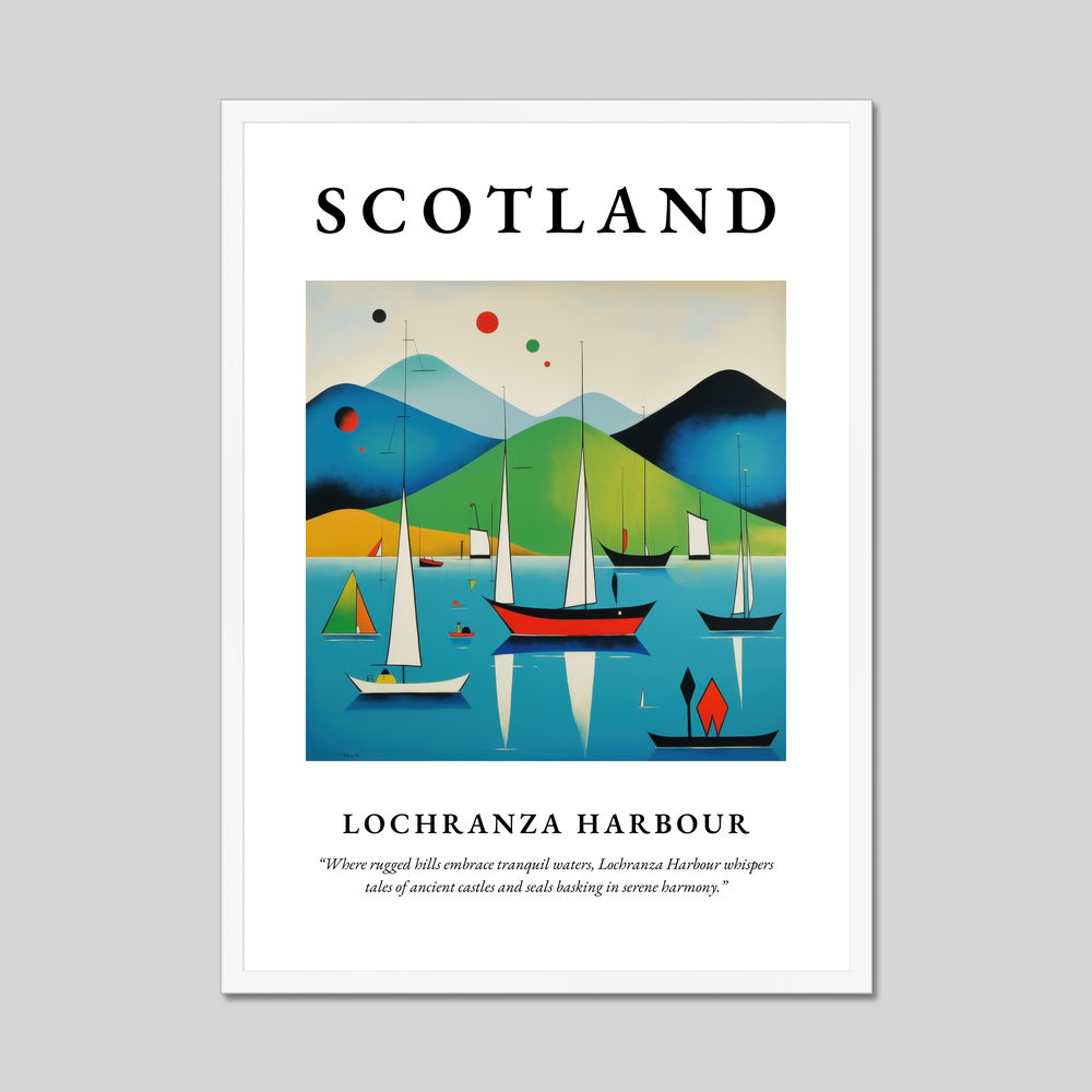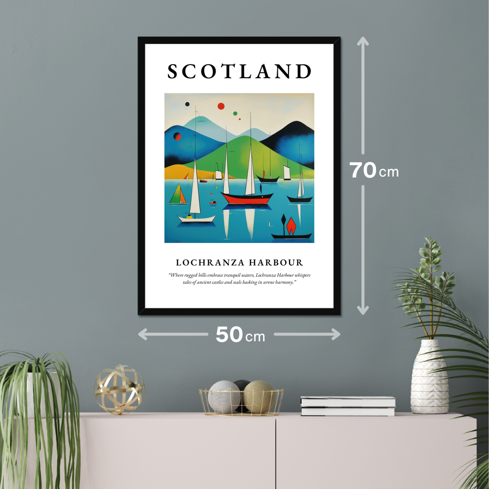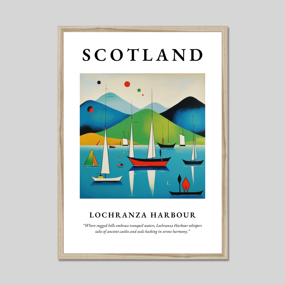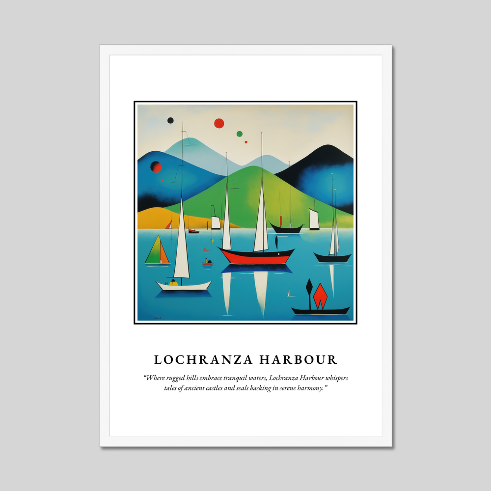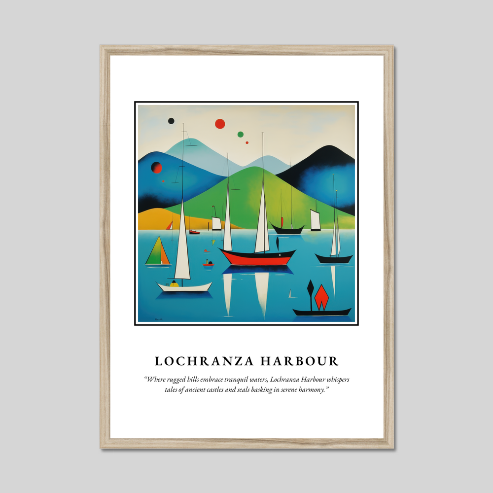 Unveil the beauty of Scotland in your living space with our striking 50cm x 70cm framed poster print. This captivating artwork is crafted in an abstract style, capturing the essence of Lochranza Harbour with bold and vibrant colours. Available in sleek black, pristine white, or elegant natural wood-effect frames, this poster complements any decor and serves as a dynamic focal point in any room.