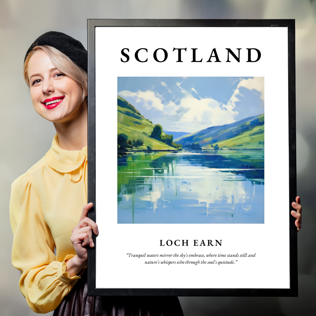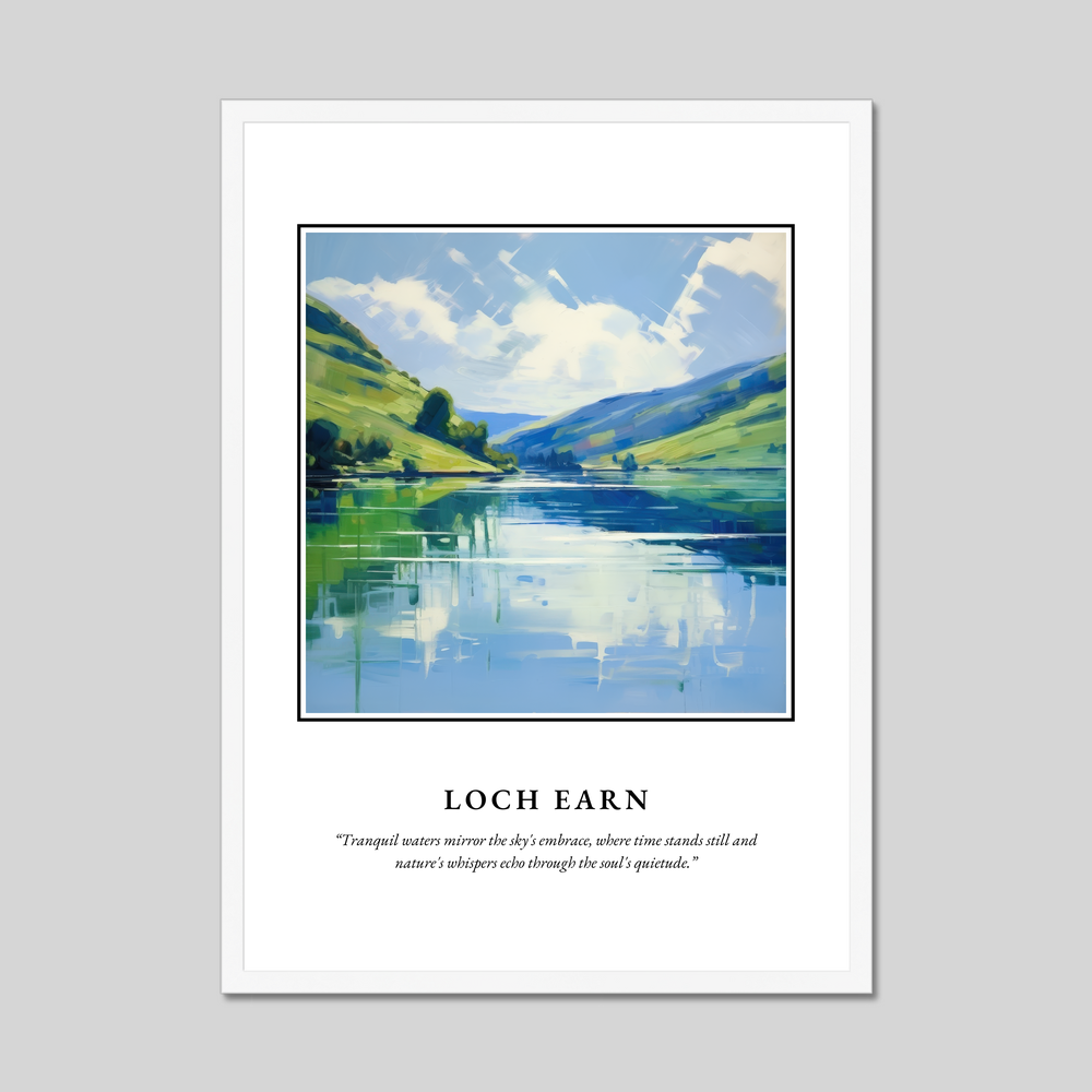 Capture the essence of Scotland's enchanting beauty with this striking framed poster print, designed to transport you to the tranquil landscapes of Loch Earn. Measuring 50cm x 70cm, this generous print offers a captivating view that will dominate any wall space with its elegance and charm, lending a touch of the Highlands to your home without breaking the bank. Available in a choice of sophisticated black, classic white, or a warm natural wood-effect frame, this poster seamlessly integrates into any decor style.