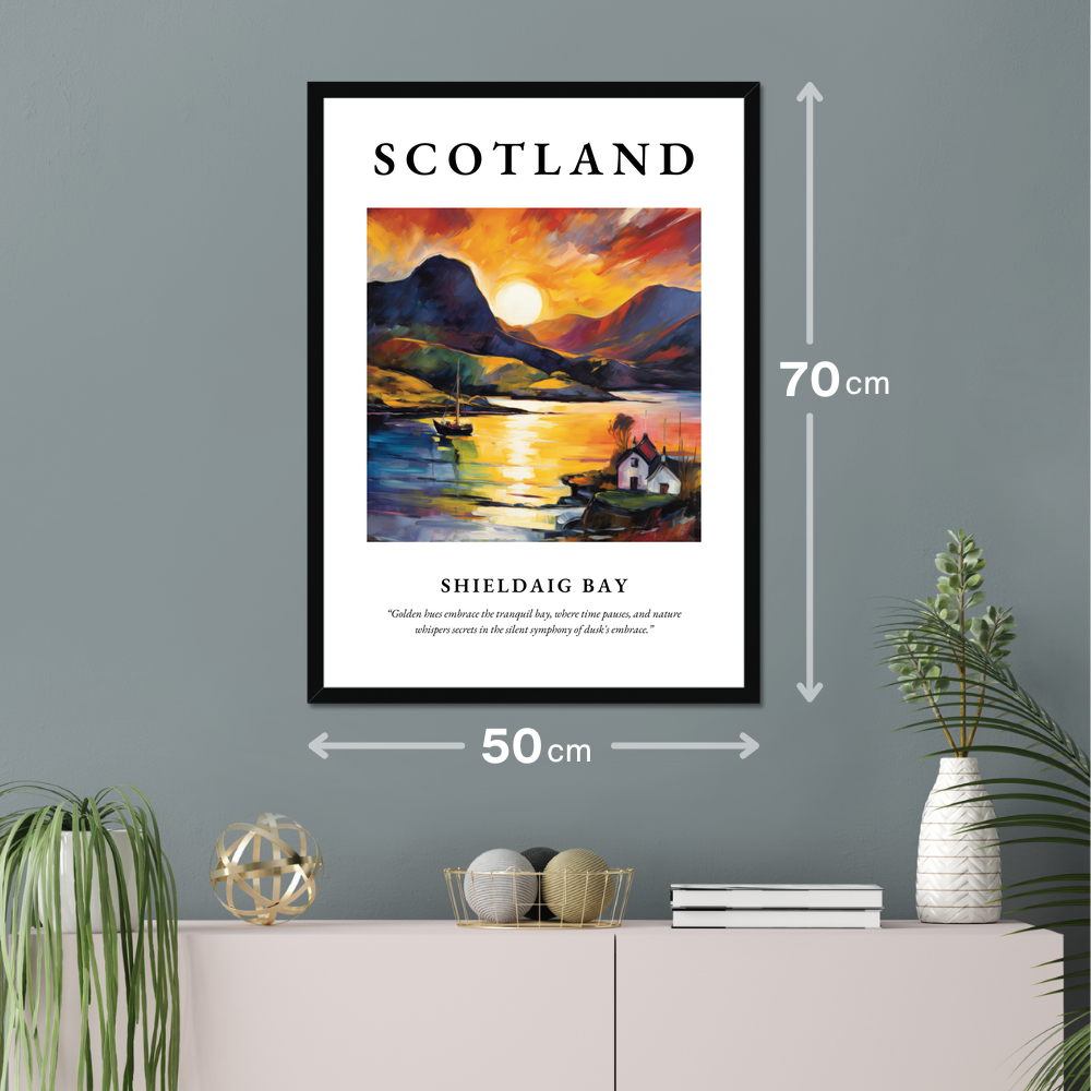 Immerse yourself in the captivating beauty of Scotland with our stunning framed poster print, a perfect homage to the enchanting Shieldaig Bay. Measuring an impressive 50cm x 70cm, this large-format piece instantly transforms any space, allowing you to bring a touch of Scottish charm into your home without breaking the bank. Choose from elegant black, classic white, or refined natural wood-effect frames to perfectly complement your interior decor.