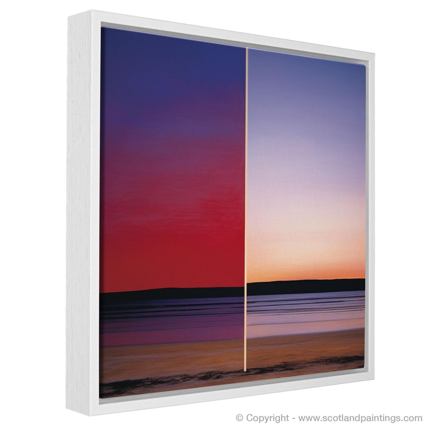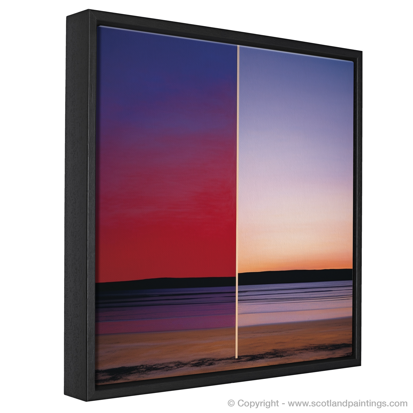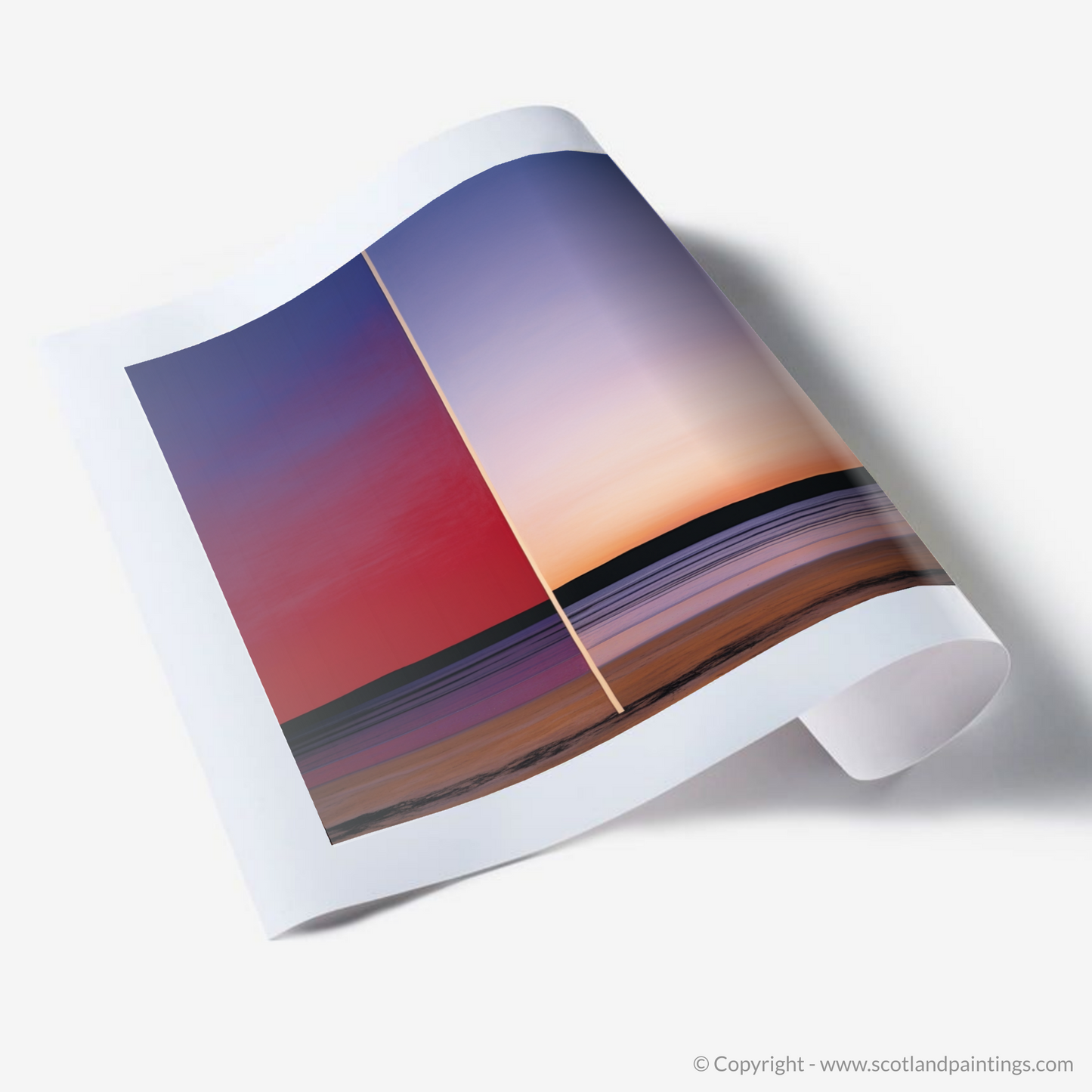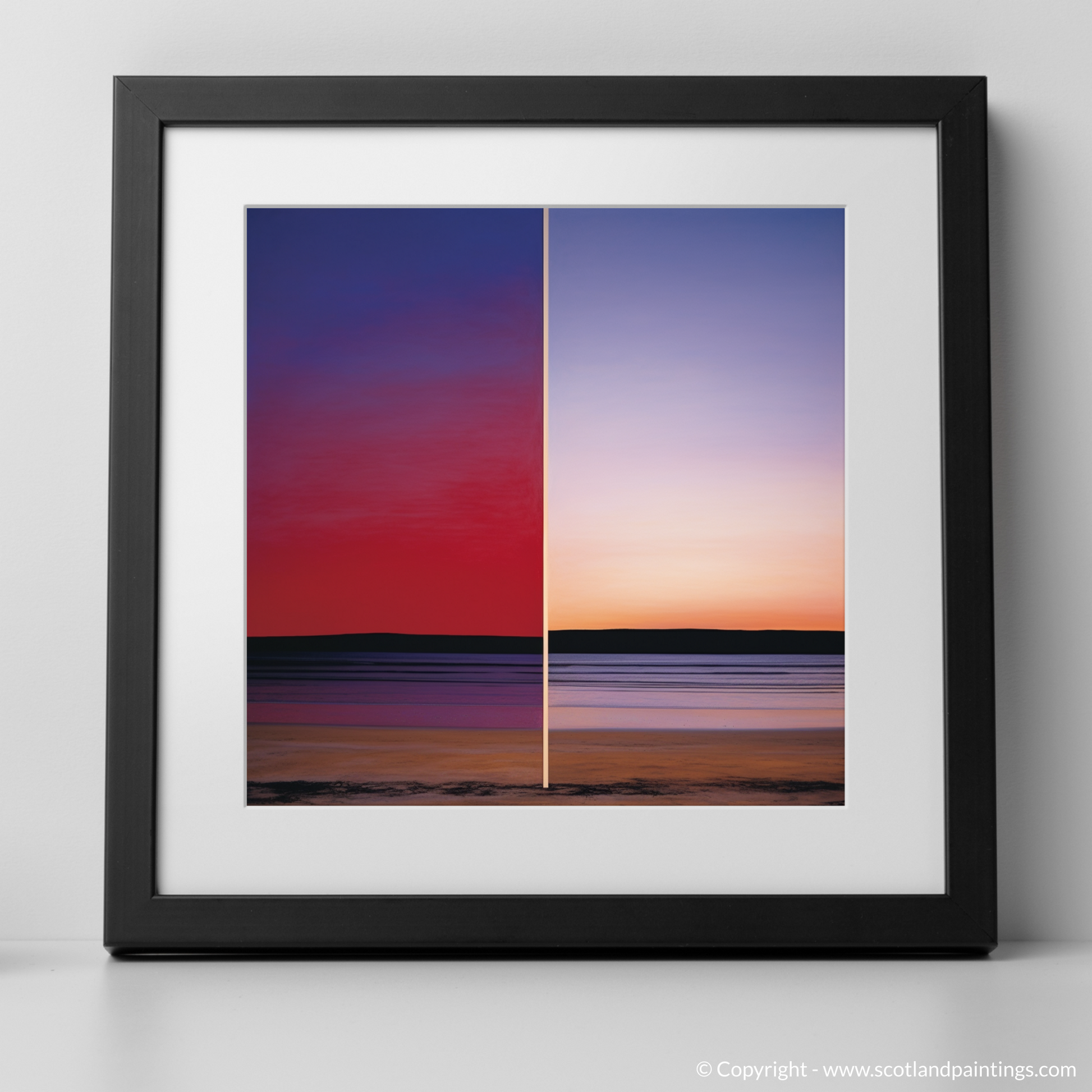 Immerse yourself in the tranquil hues of a Scottish Cove at dusk with this arresting print, evoking the serene beauty of Balnakeil Bay's sunset. This piece powerfully captures the essence of the Color Field movement, employing vast expanses of colour to encapsulate the viewer in its enveloping warmth.