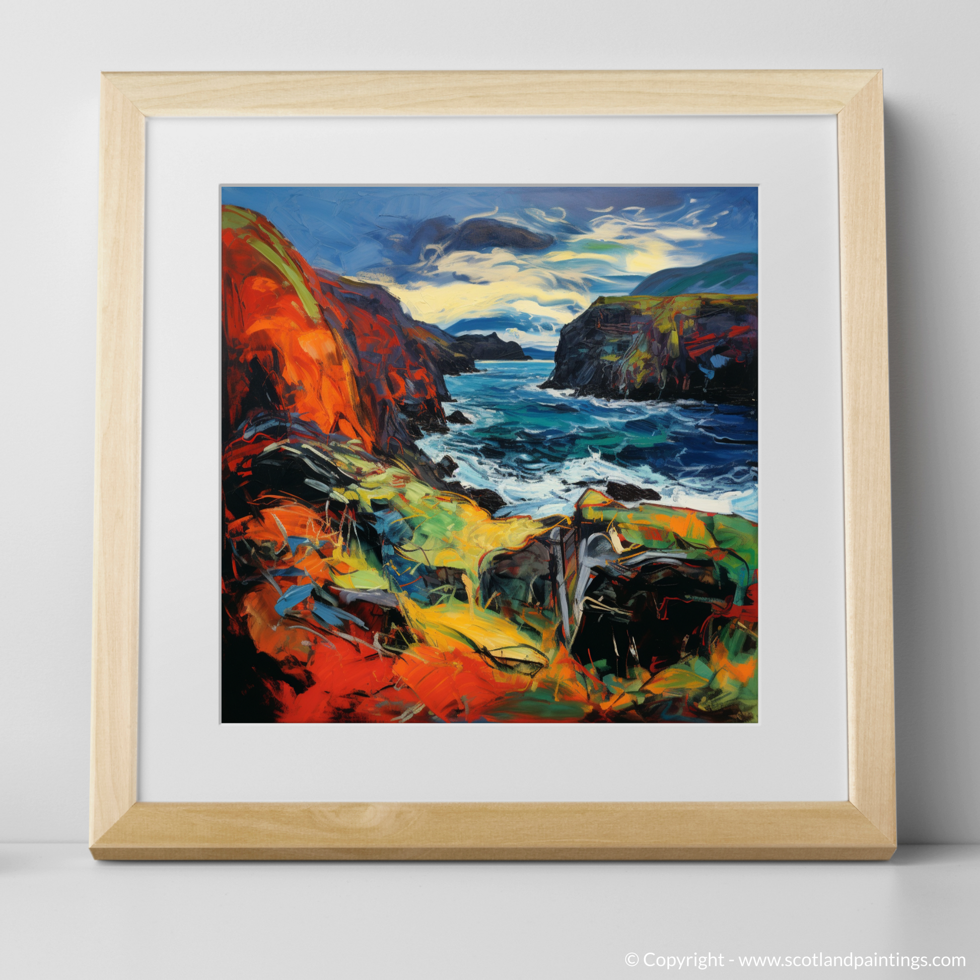 Embark on a visual journey to the enchanting Isle of Ulva, as this evocative print captures the wild, untamed beauty of the Inner Hebrides through the vivid and expressive lens of Fauvism. Bold and unrestrained brushstrokes dance across the canvas, suggesting a landscape alive with movement, where the natural elements are in a constant state of flux.