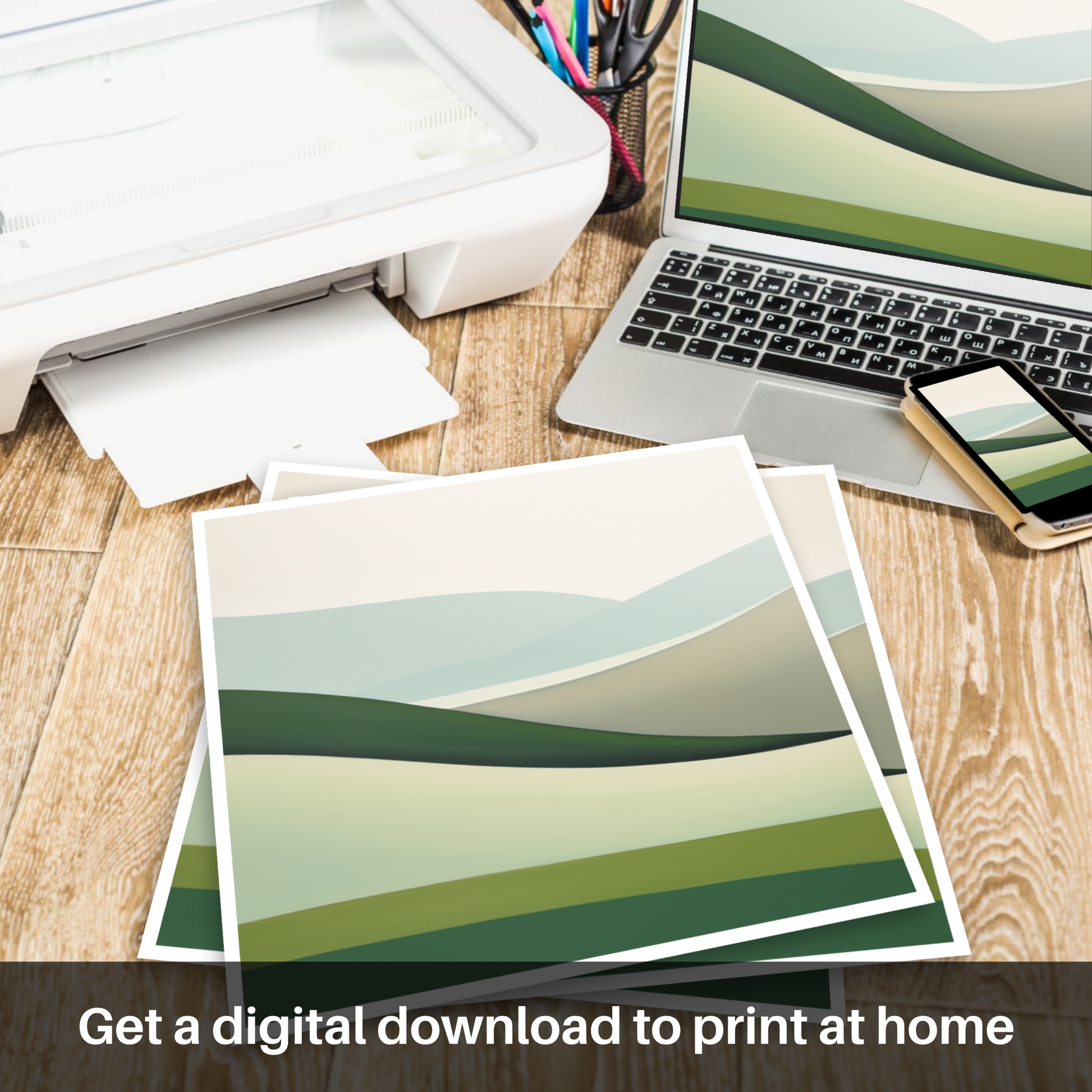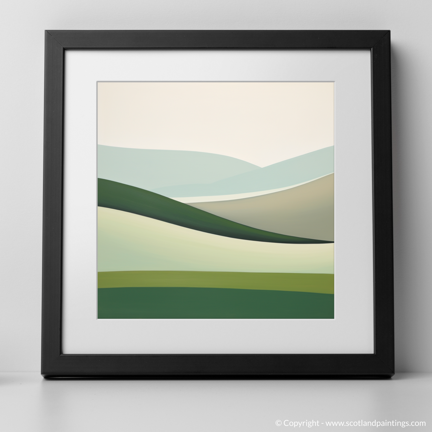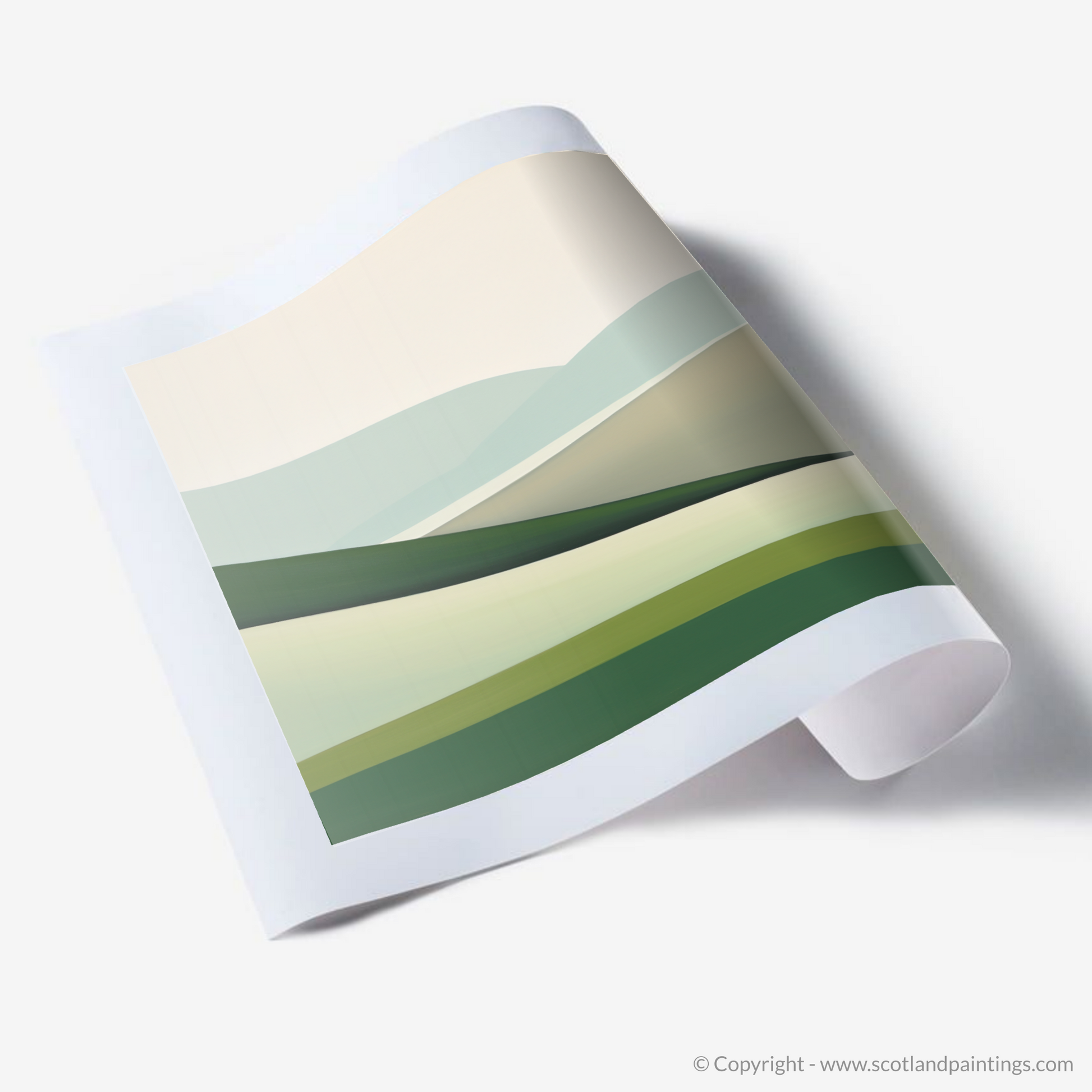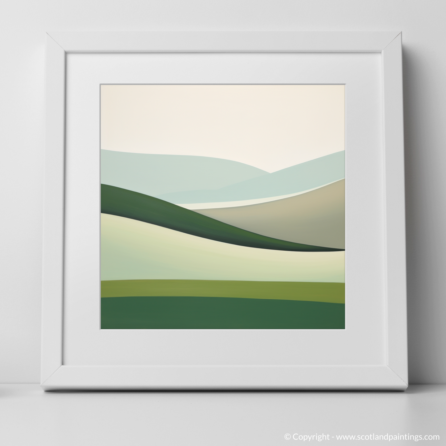 Echoing the serene beauty of Glenlivet, Moray, this exquisite print captures the essence of the Scottish Glens with an air of simplicity and tranquillity. Painted in a minimalist style, the artwork distils the natural landscape to its purest forms and colours, inviting contemplation and calm reflection.