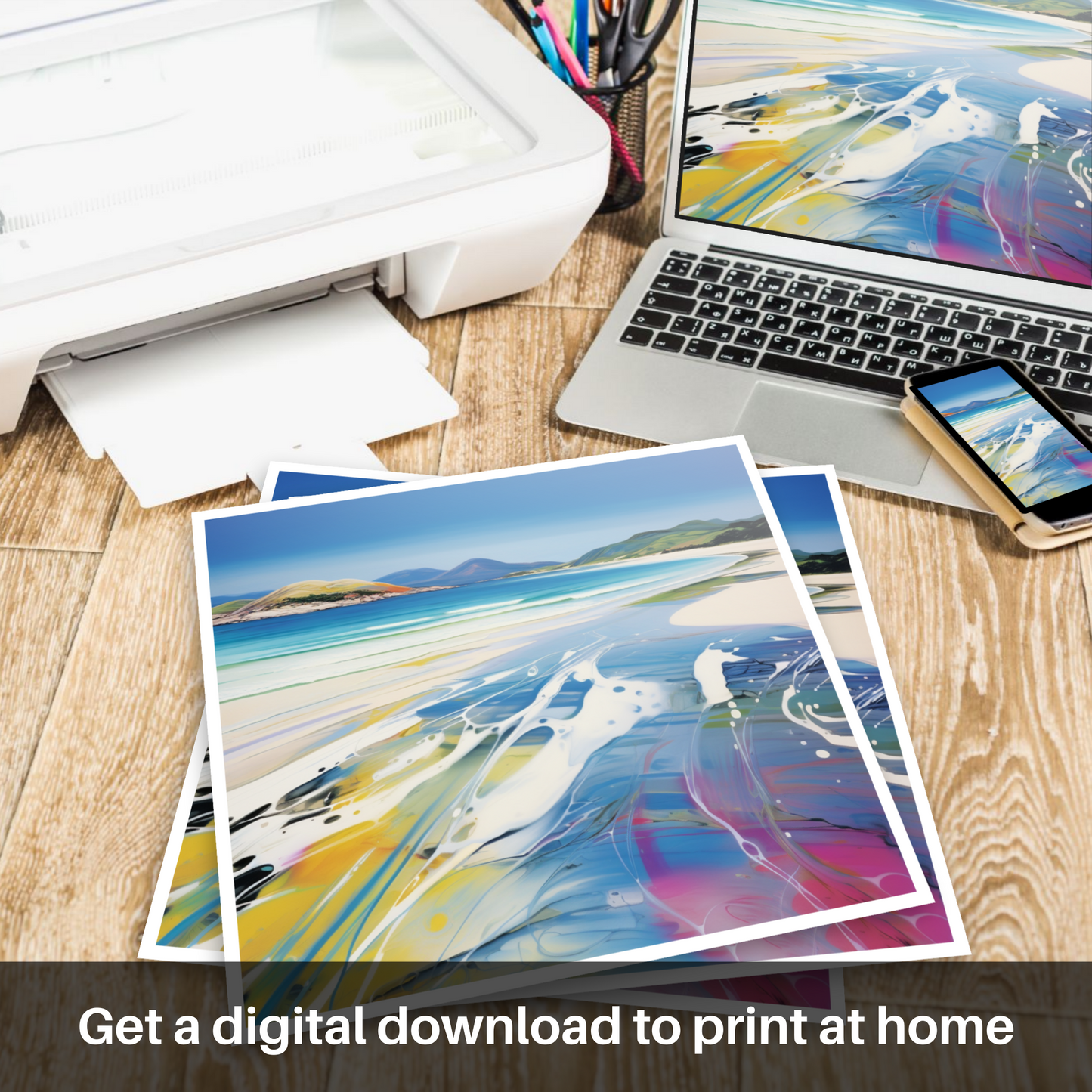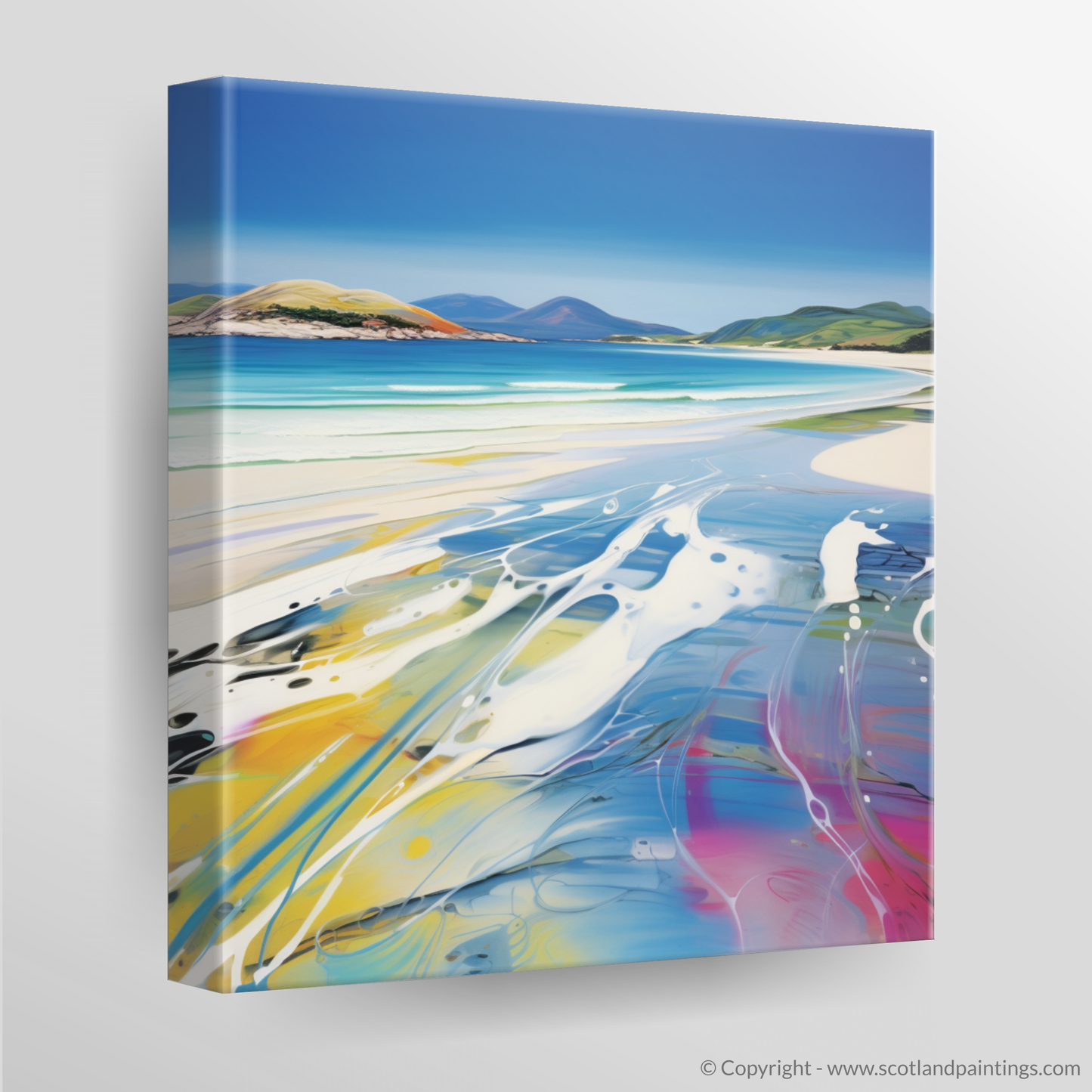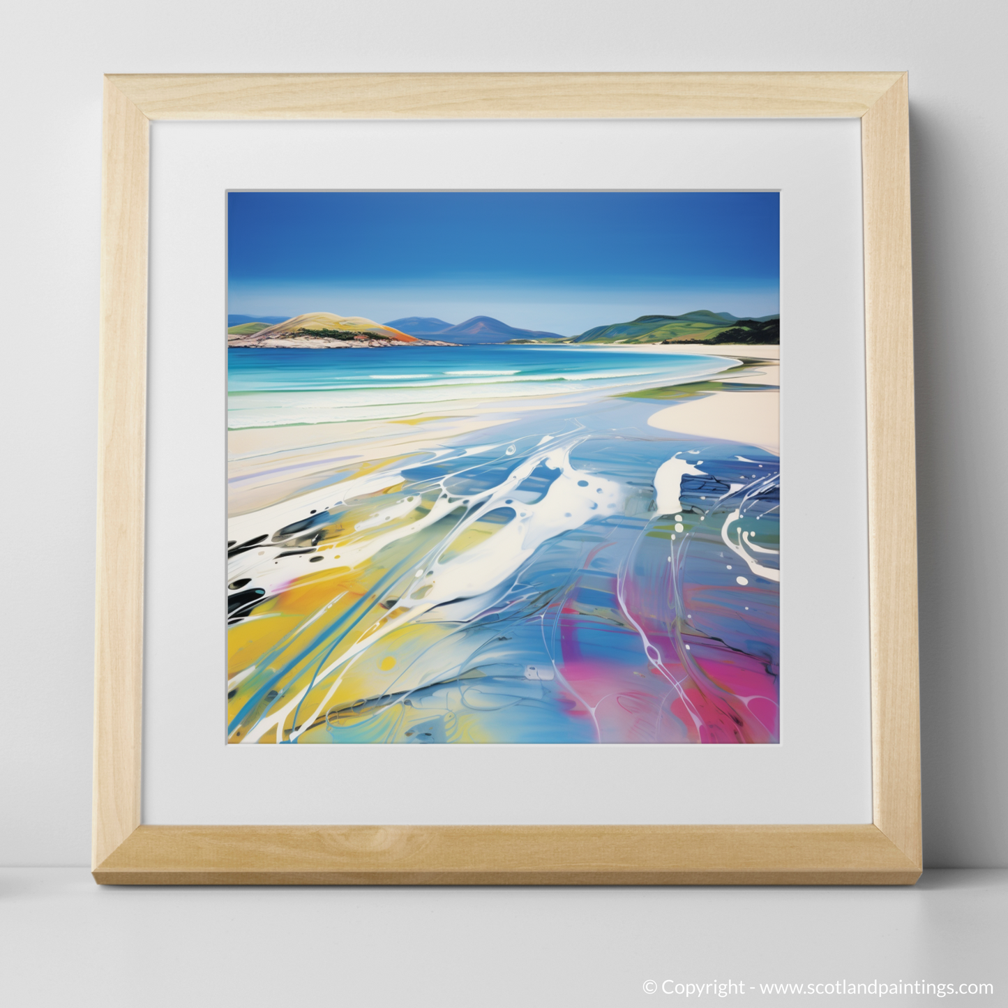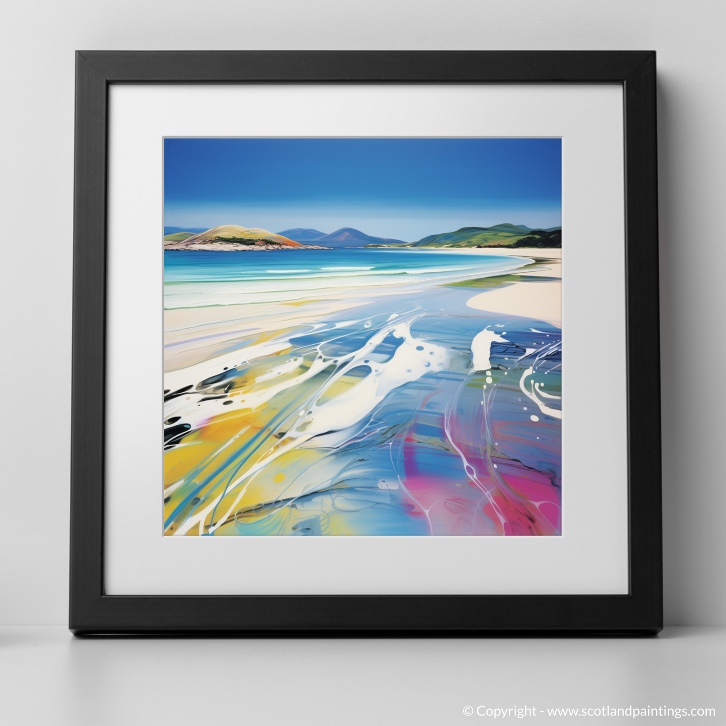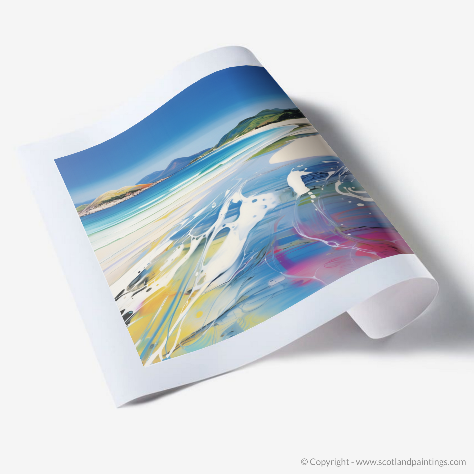 This print, part of our 'Scottish Beaches' collection, offers a dynamic perspective on coastal tranquillity. It invites the viewer to experience the familiar beauty of Seilebost Beach through a fresh, iconoclastic approach, making it an ideal piece to inject life and artistry into any space.