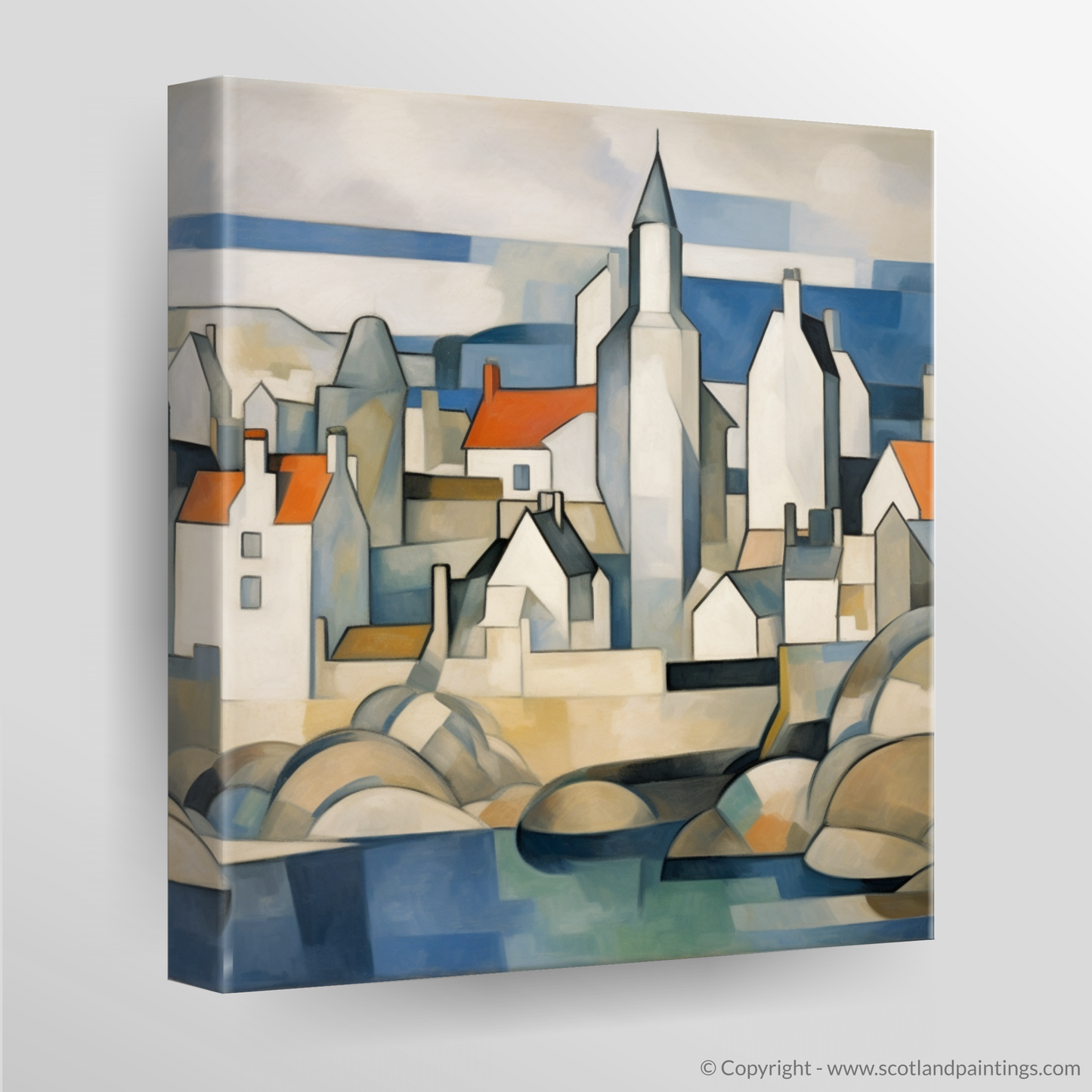 Immerse yourself in the geometric abstraction of this exceptional print, where the charming essence of Newburgh, Aberdeenshire, has been masterfully reimagined through the prism of Cubism. This artwork captivates the viewer with its mosaic of interlocking shapes and planes, inviting a contemplative journey through the angular landscapes that echo the unique character of the Scottish village.