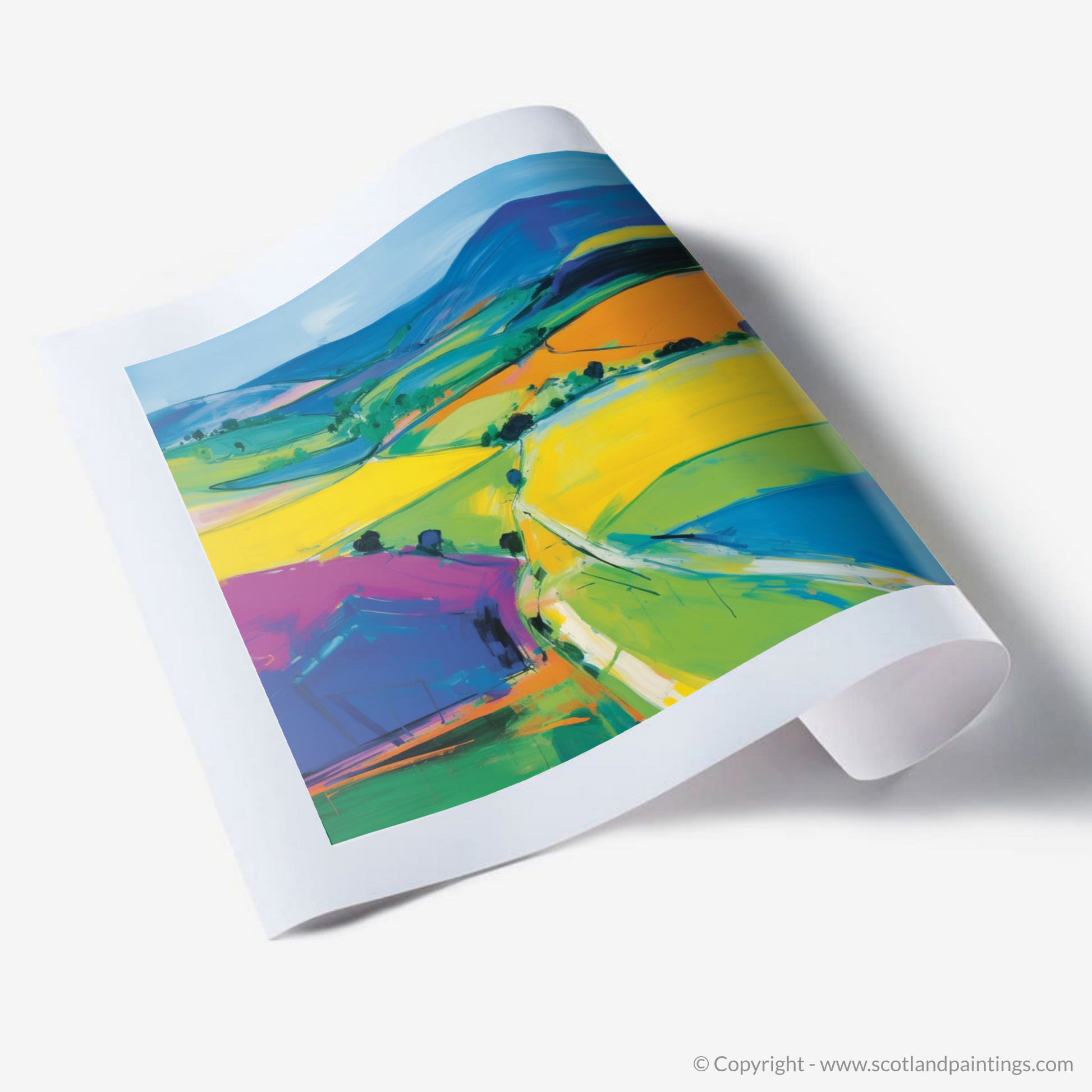 Immerse yourself in the vibrant hues of the Scottish countryside with this evocative print, a tribute to the serene beauty of Glendevon in Perth and Kinross. This piece captures the spirit of the Scottish Glens through a striking Color Field interpretation, inviting viewers to experience the location's natural splendour through a bold and emotive lens. The artwork is a visual symphony of juxtaposed colours, speaking to the untamed charm of Scotland's landscapes.