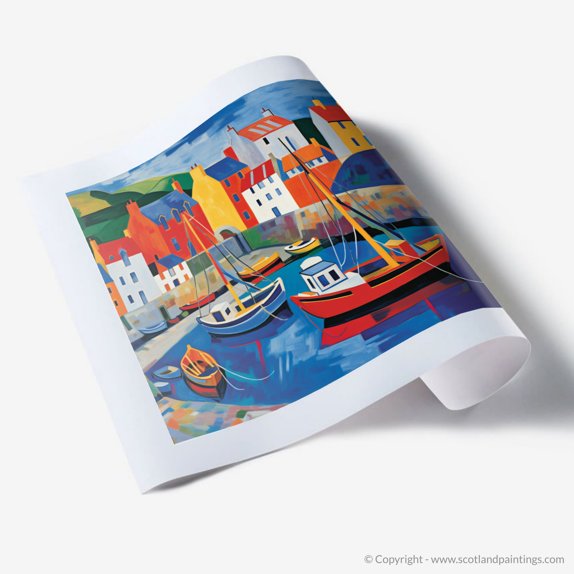 Perfect for aficionados of expressive art, this print brings a piece of Scotland into your space, making it more than just a visual treat; it's a bold statement for any room that calls out for colour and character. Feel the bracing sea breeze and the vibrant aura of maritime beauty through this homage to one of Scotland's picturesque harbours.