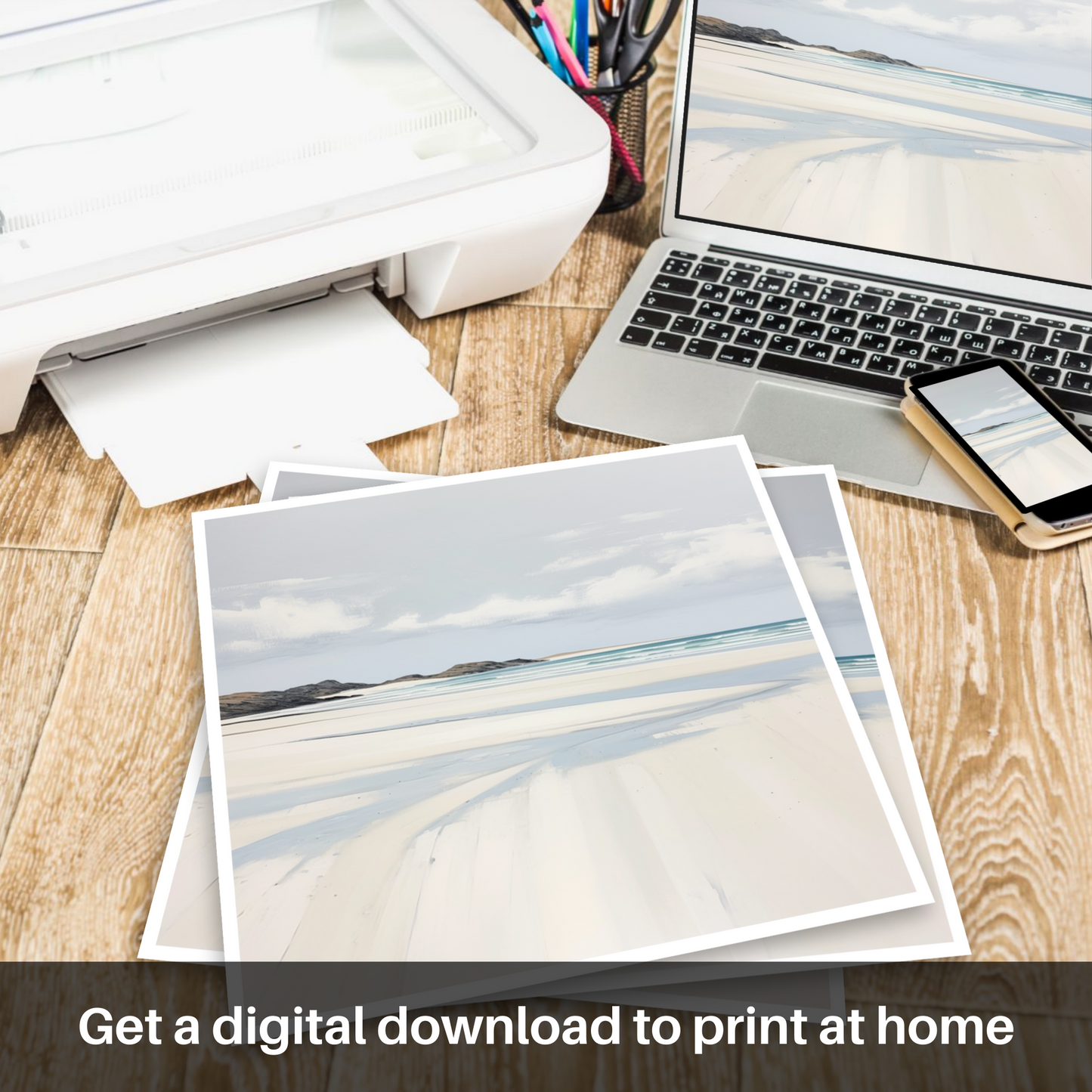 Perfect for aficionados of minimalist art or those enchanted by Scotland's rugged coastlines, this print is a versatile addition to any space, ready to transform a room with its tranquil allure and sophisticated simplicity. It serves as a timeless memento of the untouched and enduring beauty of the Scottish beaches, a celebration of nature's own artistry.