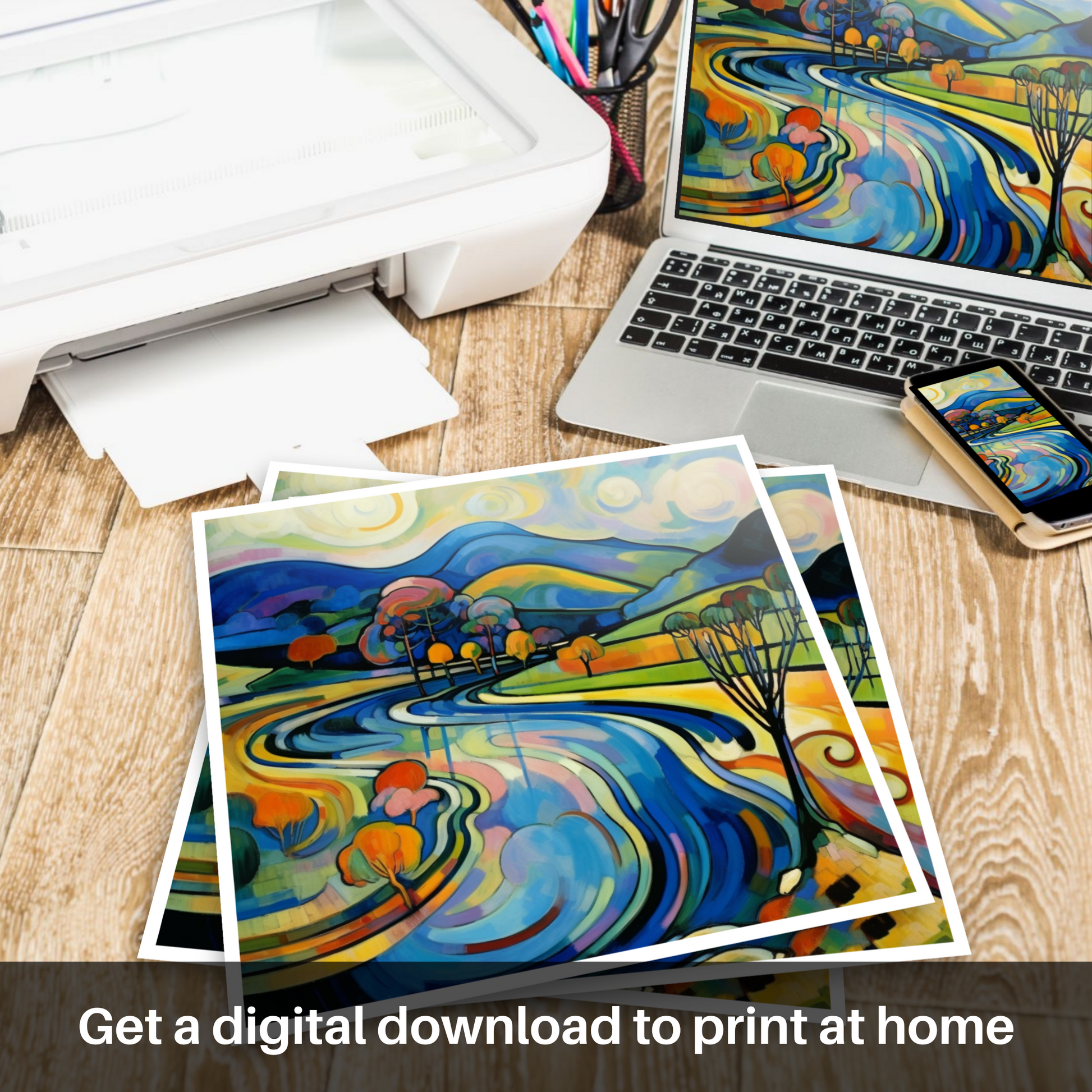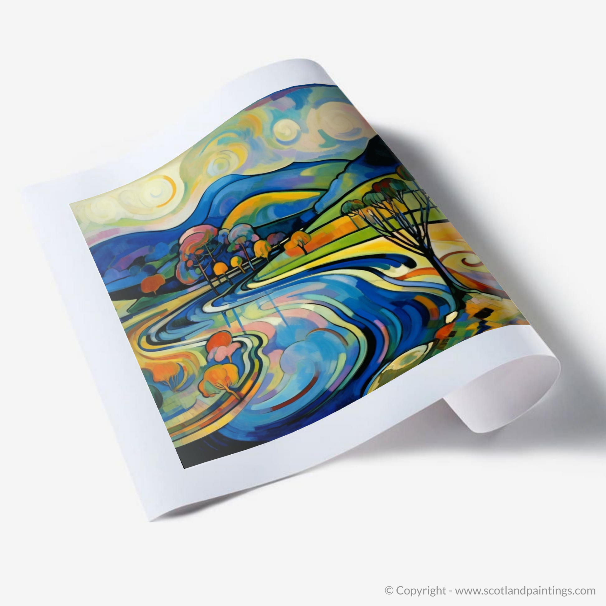 Immerse yourself in the captivating swirls and vibrant hues of this abstract interpretation of Loch Tay, a piece that invites contemplation and ignites the imagination. This striking print features a fluid tapestry of colours that breathes life into the serene vista, transforming Scotland's tranquil scenery into a dynamic visual experience.