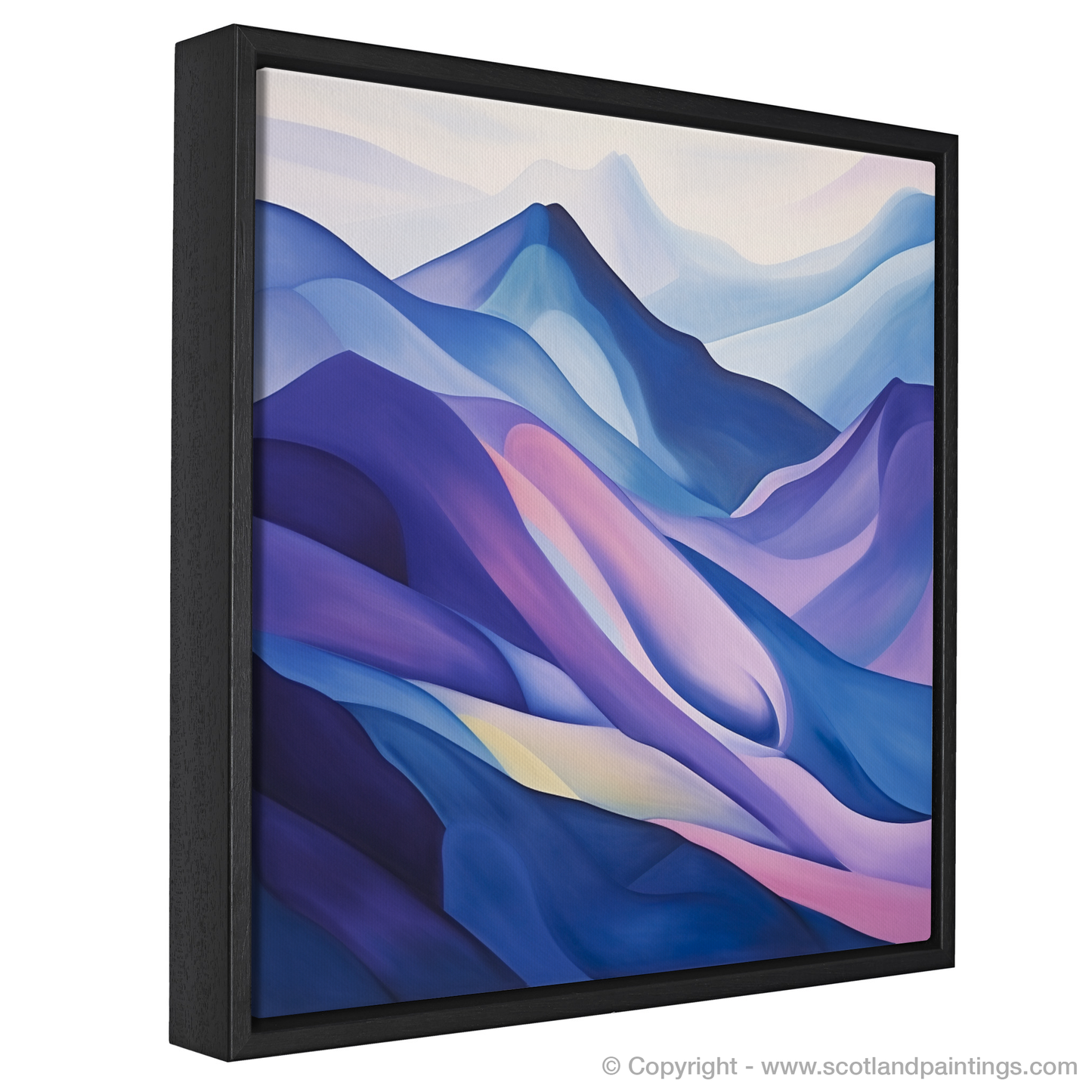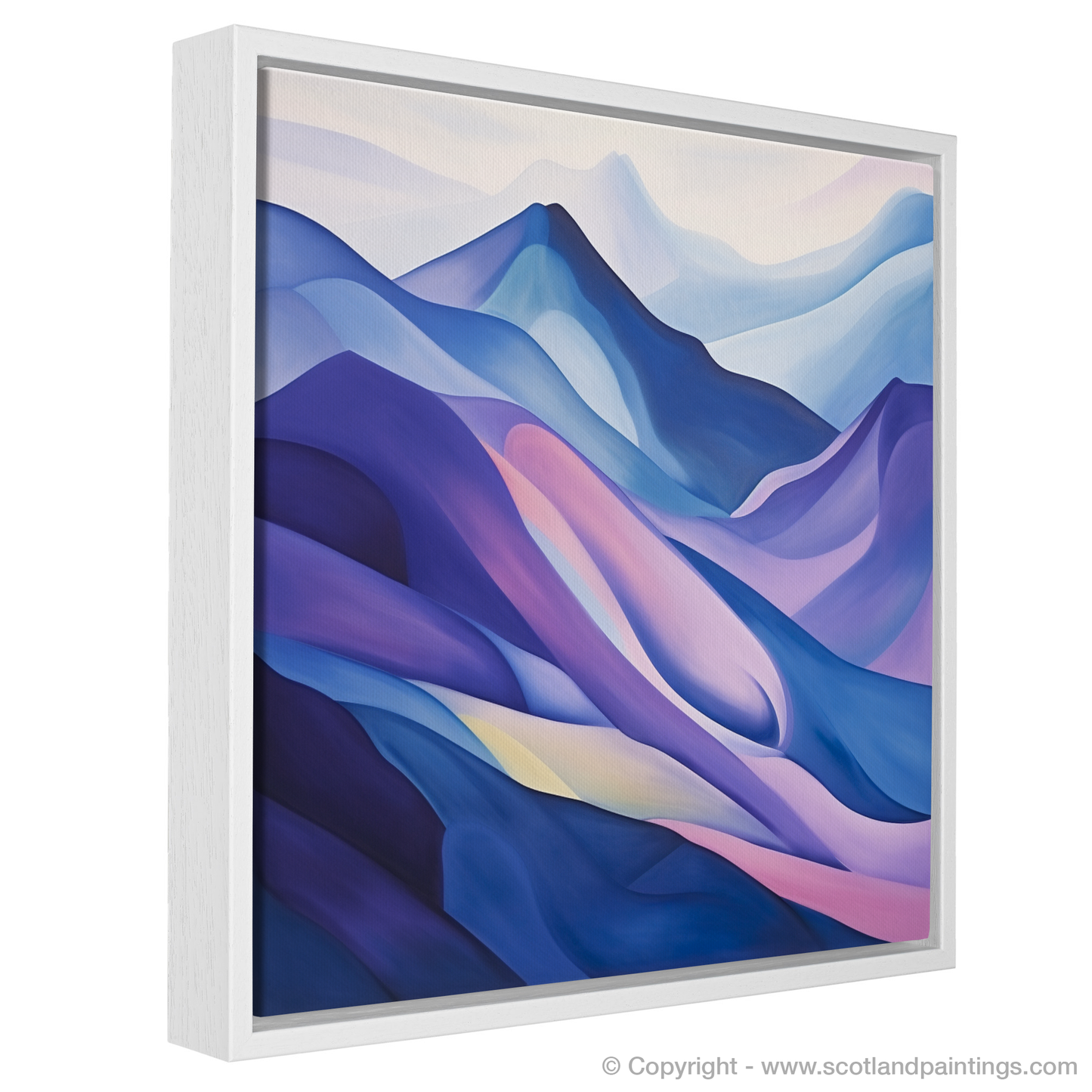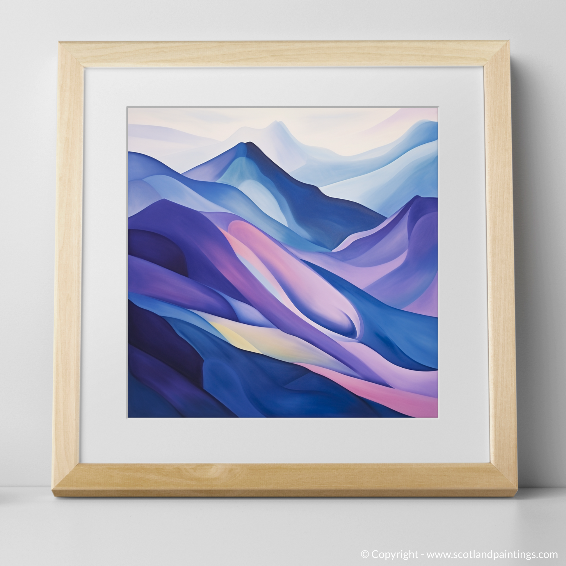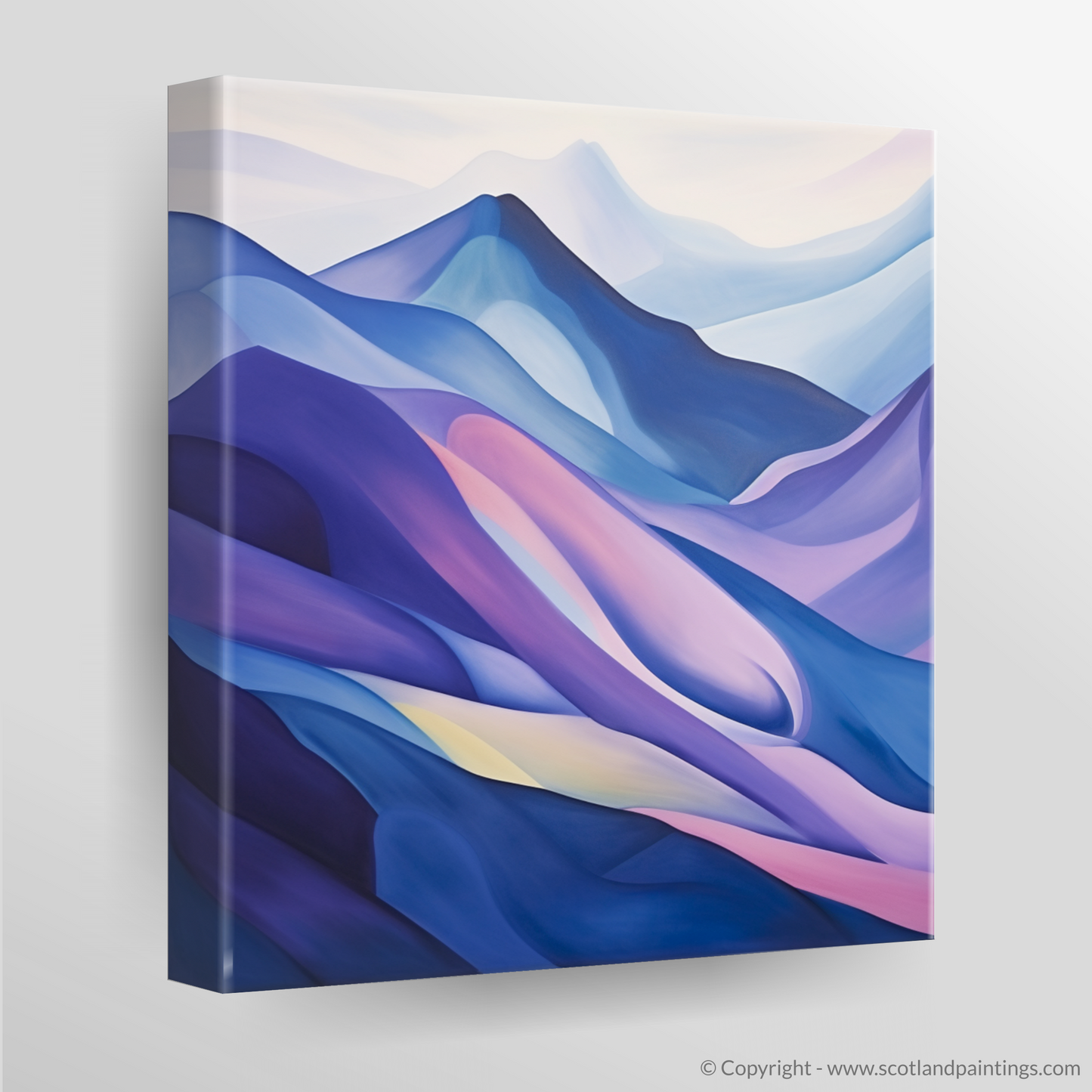 Step into a realm where the contours of nature meld into a fluid dreamscape, as this abstract interpretation of Stob Coire Sgreamhach invites viewers to reimagine the rugged beauty of the Scottish Highlands. Cascading shapes, reminiscent of the mountain's majestic stature, flow across the canvas in a symphony of blues and purples, punctuated with whispers of pink and gentle creams.