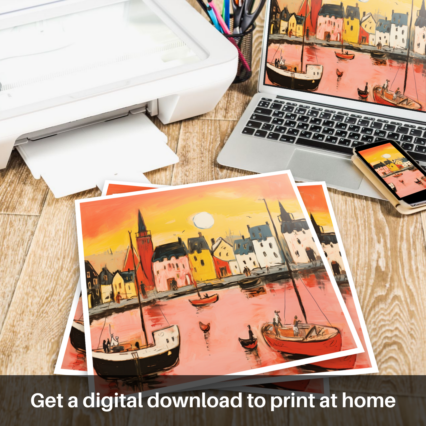 Each stroke on this print is not just a splash of colour but a whisper of the locale's serenity, the history embedded in the harbour's stones, and the ceaseless rhythm of the tide. Let this piece, a jewel among our 'Scottish Harbours' collection, transport you to a coastal reverie, wherein the boundary between art and emotion becomes beautifully blurred.