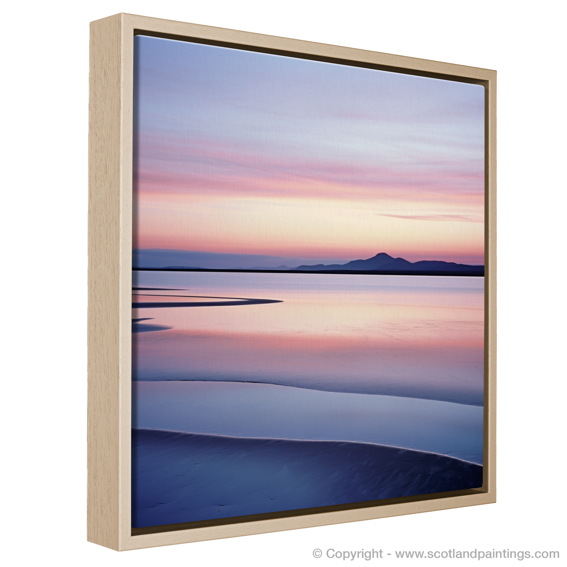 Allow the tranquil aura of the Scottish coastline to wash over you with this serene portrayal of Traigh Mhor at the day's end. The sweep of twilight hues gracefully unfolds across the print, capturing the sublime interaction of sky and sea at sunset. Each minimalistic stroke conveys the calmness of the secluded cove, where undisturbed waters mirror the pastel symphony above.