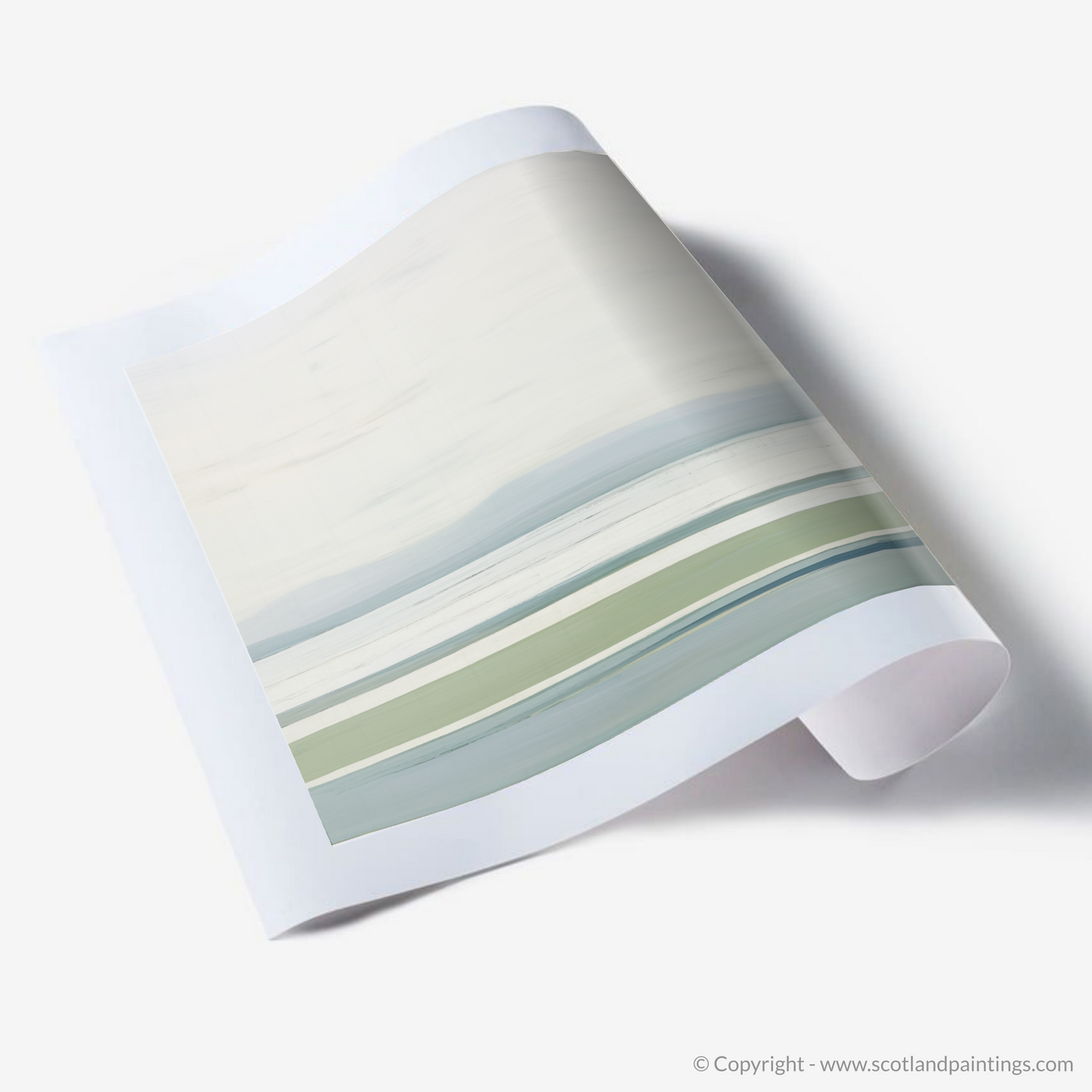 The minimalist composition invites contemplation, drawing the viewer into a landscape distilled to its purest elements. Fleeting brushstrokes dance lightly across the canvas, reminiscent of the fleeting glimpses of wildlife and the play of light on water. This print is an invitation to pause and reflect, to lose oneself in the vastness of the open highland airs and the soft, rolling hills that cradle the river's journey.