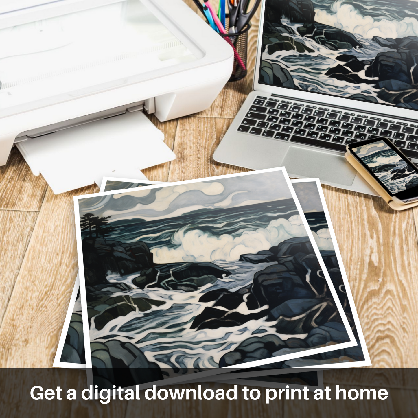 This print, from our 'Scottish Coves' collection, is an ode to the wild beauty that is Scotland's coastline. It breathes with the life force of the natural world while paying homage to the Art Nouveau movement's distinctive style, rendering it an ideal piece for those who cherish both the artistry of that era and the untamed spirit of Scotland's shores.