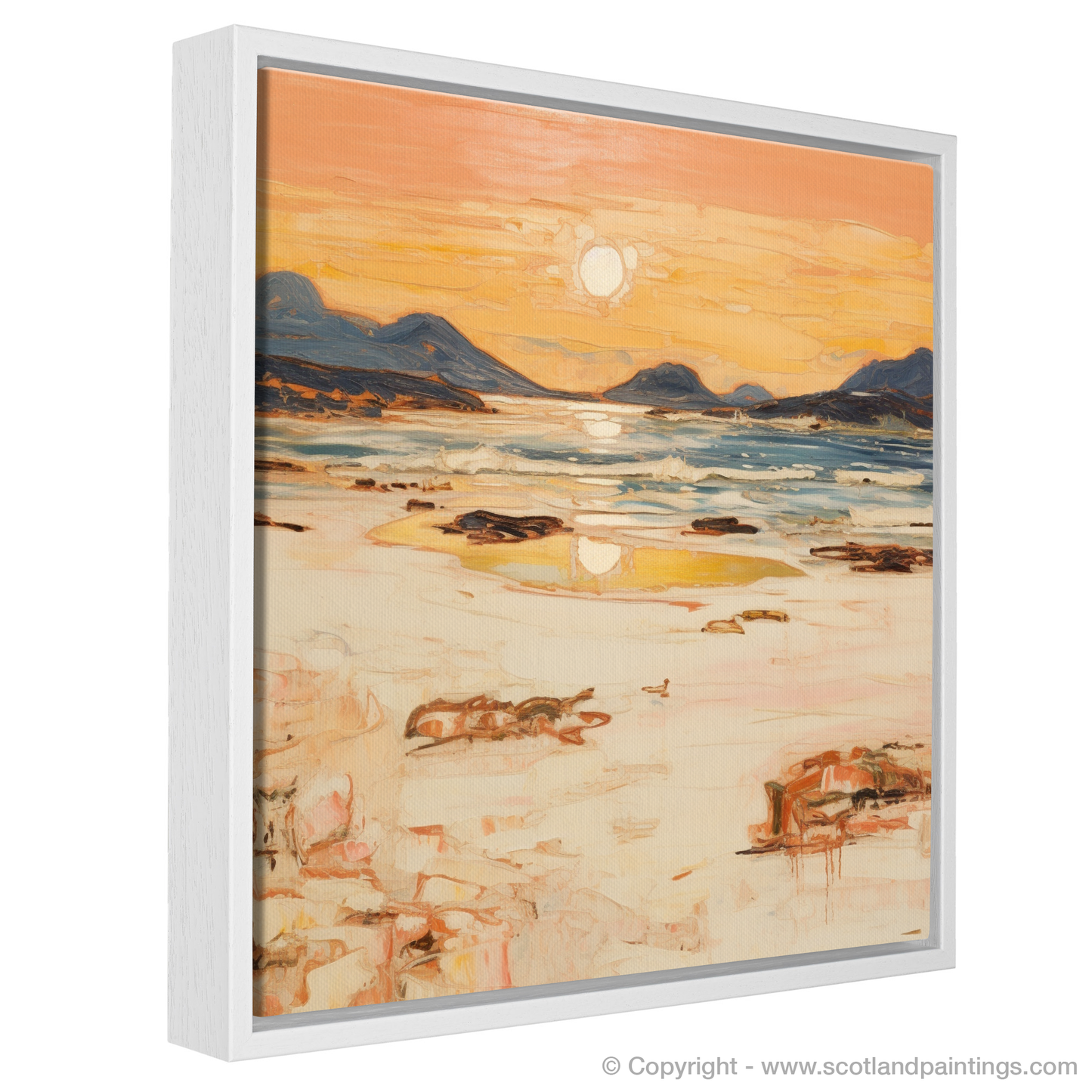 Immerse yourself in the captivating allure of the Scottish Highlands with this exquisite print, drawing inspiration from the serene Mellon Udrigle Beach at the enchanting golden hour. The artwork, a masterpiece of Abstract Expressionism, encapsulates the ephemeral interplay of light and nature in a symphony of colour and form.