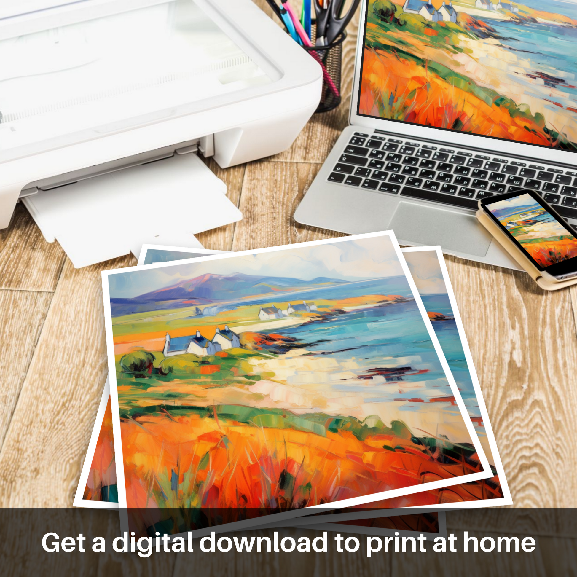 This print, a highlight of our 'Scottish Coves' collection, invites viewers to immerse themselves in the untamed beauty of Scotland's coastline, interpreted through the unrestrained joy of colour and the impassioned application of paint. It is an invitation to wander, if only visually, to a place where the vibrancy of the natural world is celebrated in every brushstroke. Whether a lover of art, nature, or the spirit of Scotland, this piece promises to be a mesmerising focal point in any space.