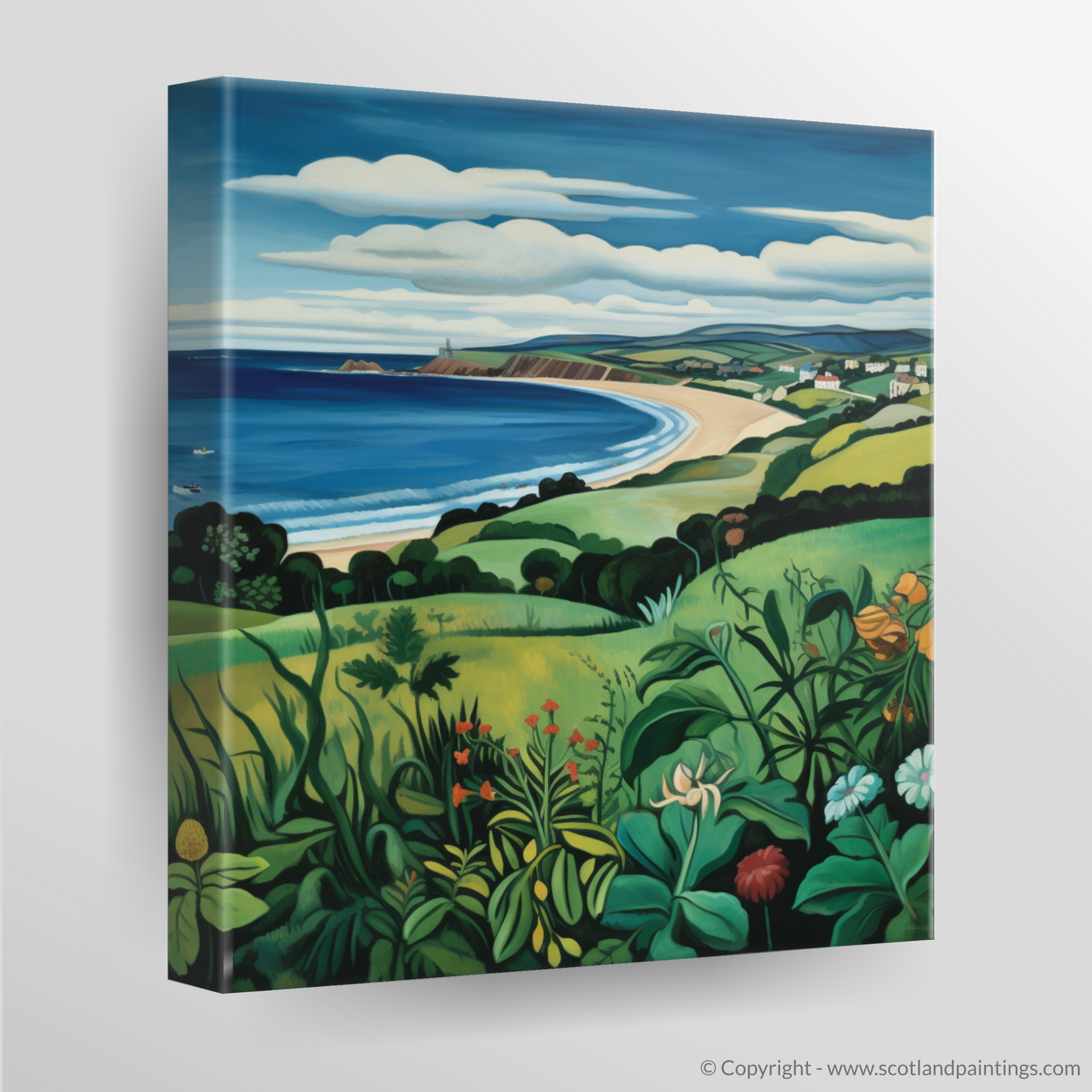 Coldingham Bay Enchantment: A Naive Art Homage to Scottish Seaside Splendor