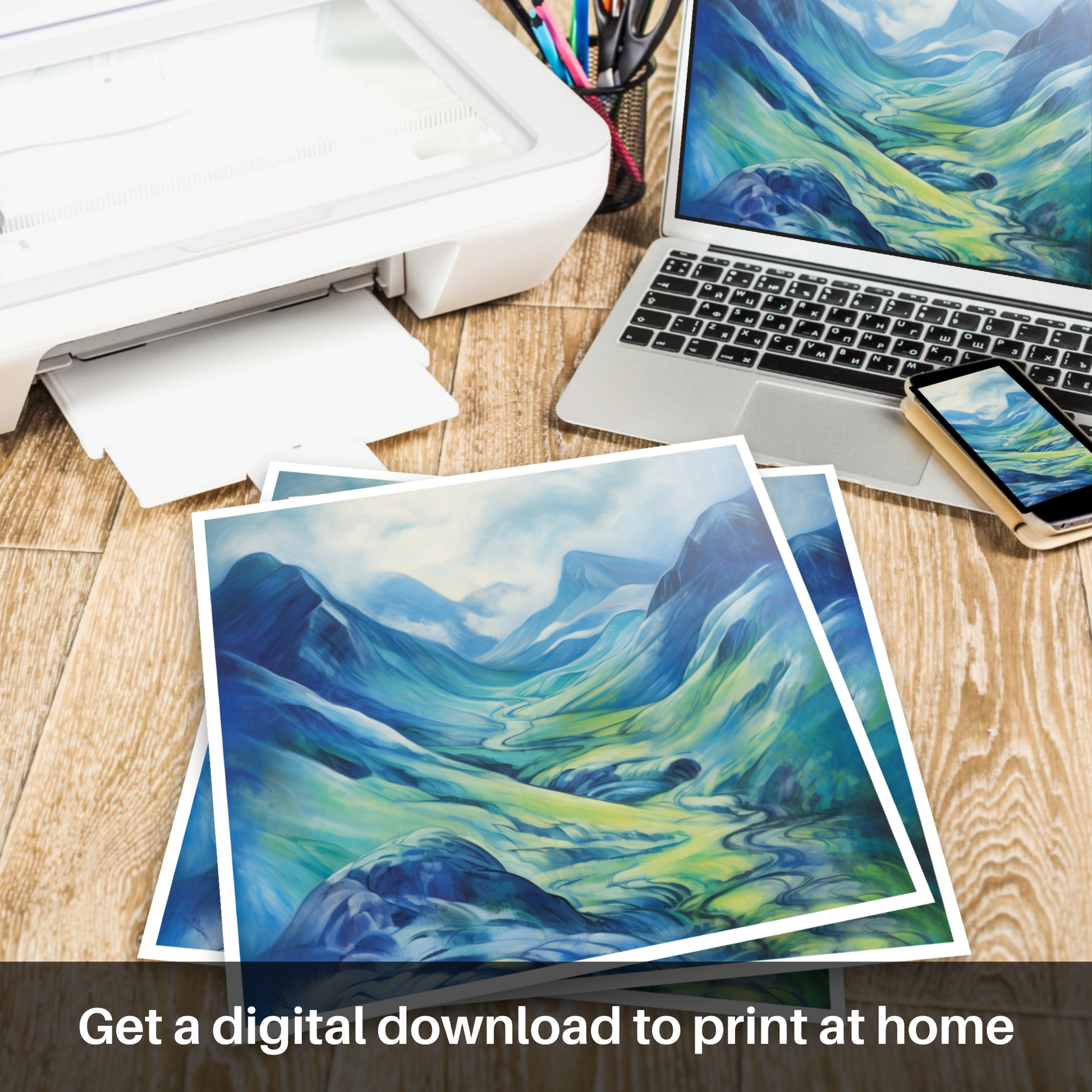 Ideal for lovers of mountainous landscapes and seekers of artistic transcendence, this print is a poetic homage to the spirit of Scotland's majestic peaks, enriched by the transformative power of surreal artistry. It is sure to evoke a sense of wonder and inspire the imagination, making it a superb addition to any collection that celebrates the convergence of nature and the fantastical.