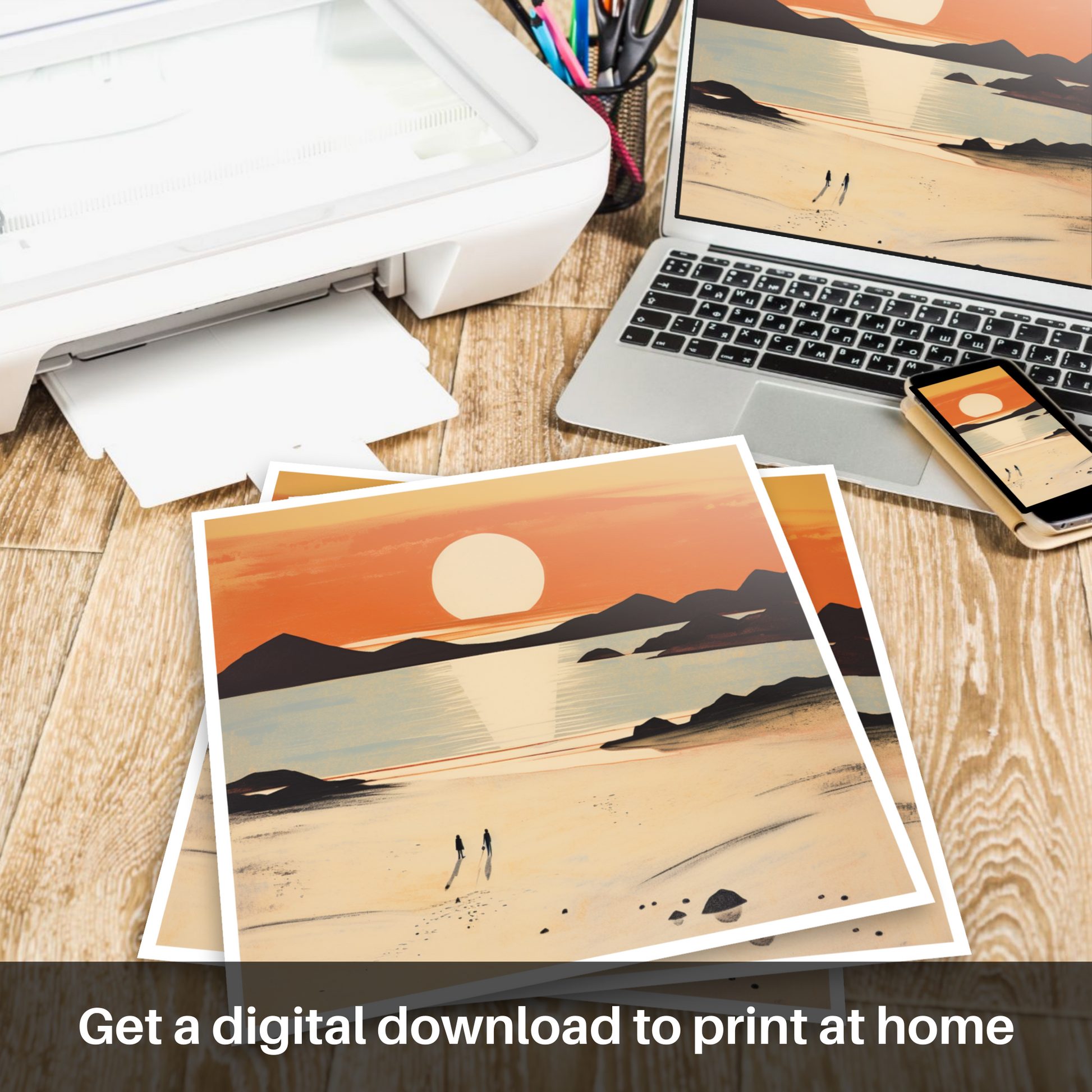 This print finds its harmony in the interplay of bold colours and minimalist details, making it an enchanting choice for anyone seeking to infuse their home with the idyllic calm of a Scottish beach at sunset.