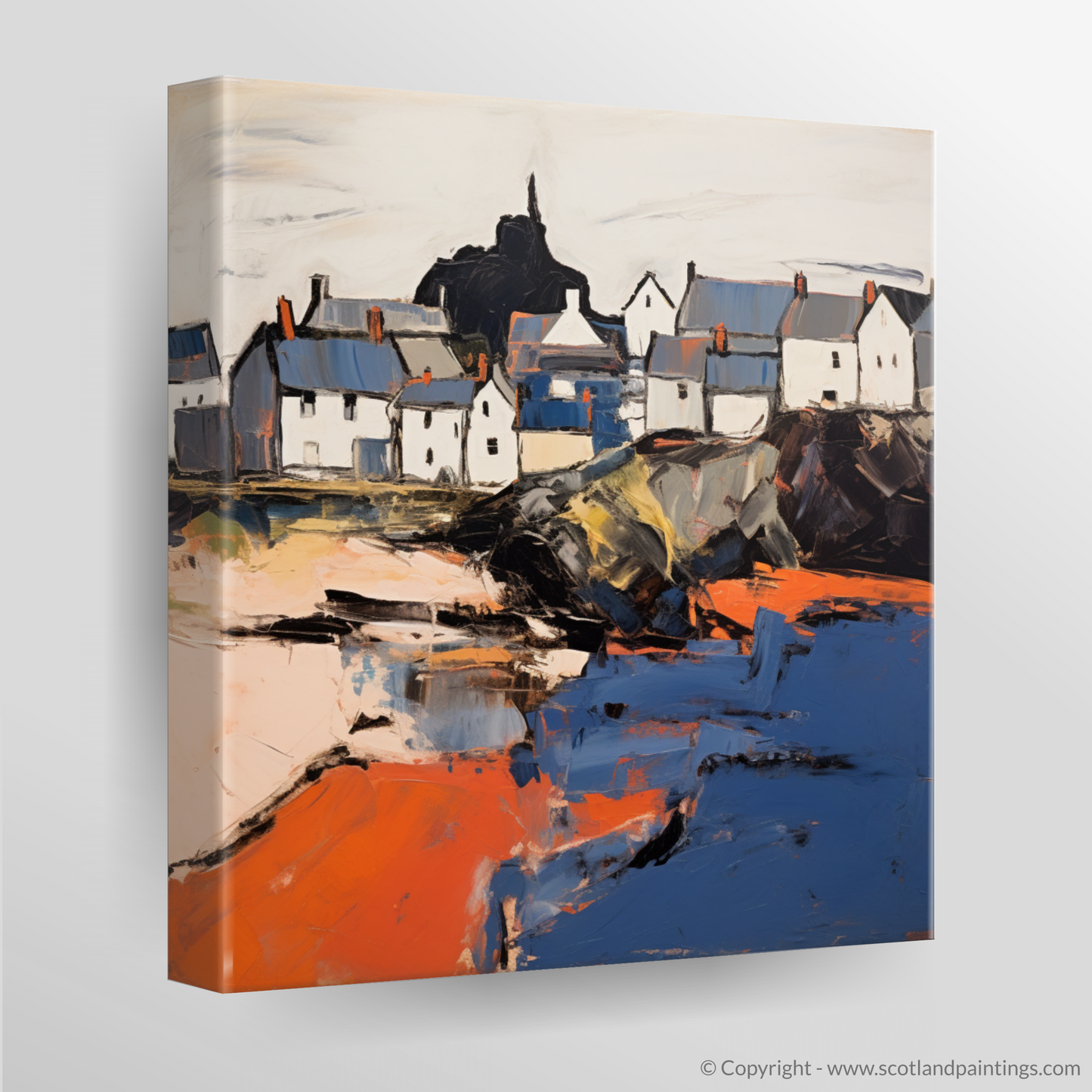 Immerse yourself in the captivating allure of Aberdeenshire through this evocative print, rich with abstract impressionistic flair. With a palette that resonates with emotion, this piece channels the rugged beauty of Stonehaven in bold strokes and a spectrum of hues that hint at the North Sea's volatile moods. Crimson and azure clash against earthen tones, suggesting the vivid interplay of light at the cusp of dusk or dawn, painting the landscape's natural drama.
