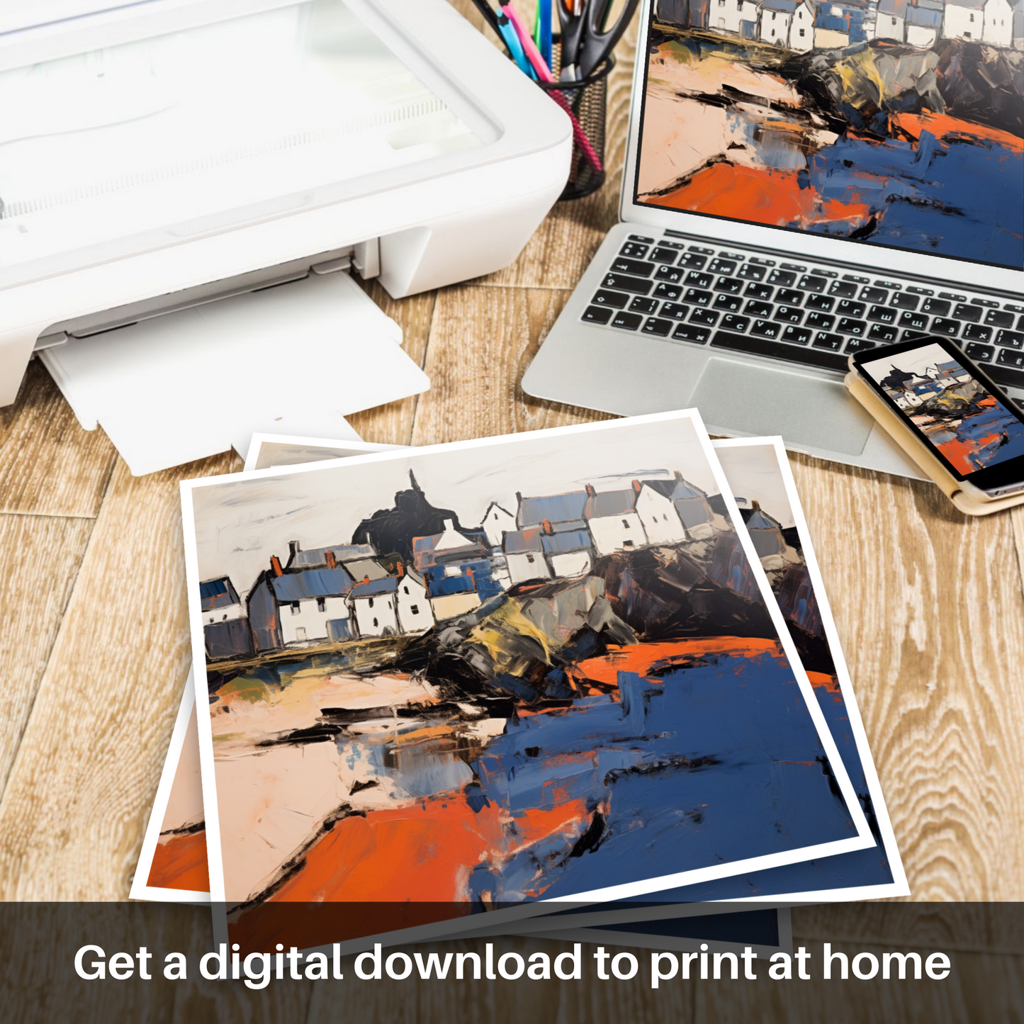This print from our 'Scottish Cities' collection is an invitation to explore Stonehaven through the eyes of an artist who has distilled its essence into an image that dances on the edge of reality. It encourages viewers to transcend the ordinary and to appreciate the landscape in an entirely new dimension. Ideal for those who cherish Scotland's unique beauty and for connoisseurs of art that transcends the simple depiction of place, this print will bring a touch of abstract impressionism into any space.