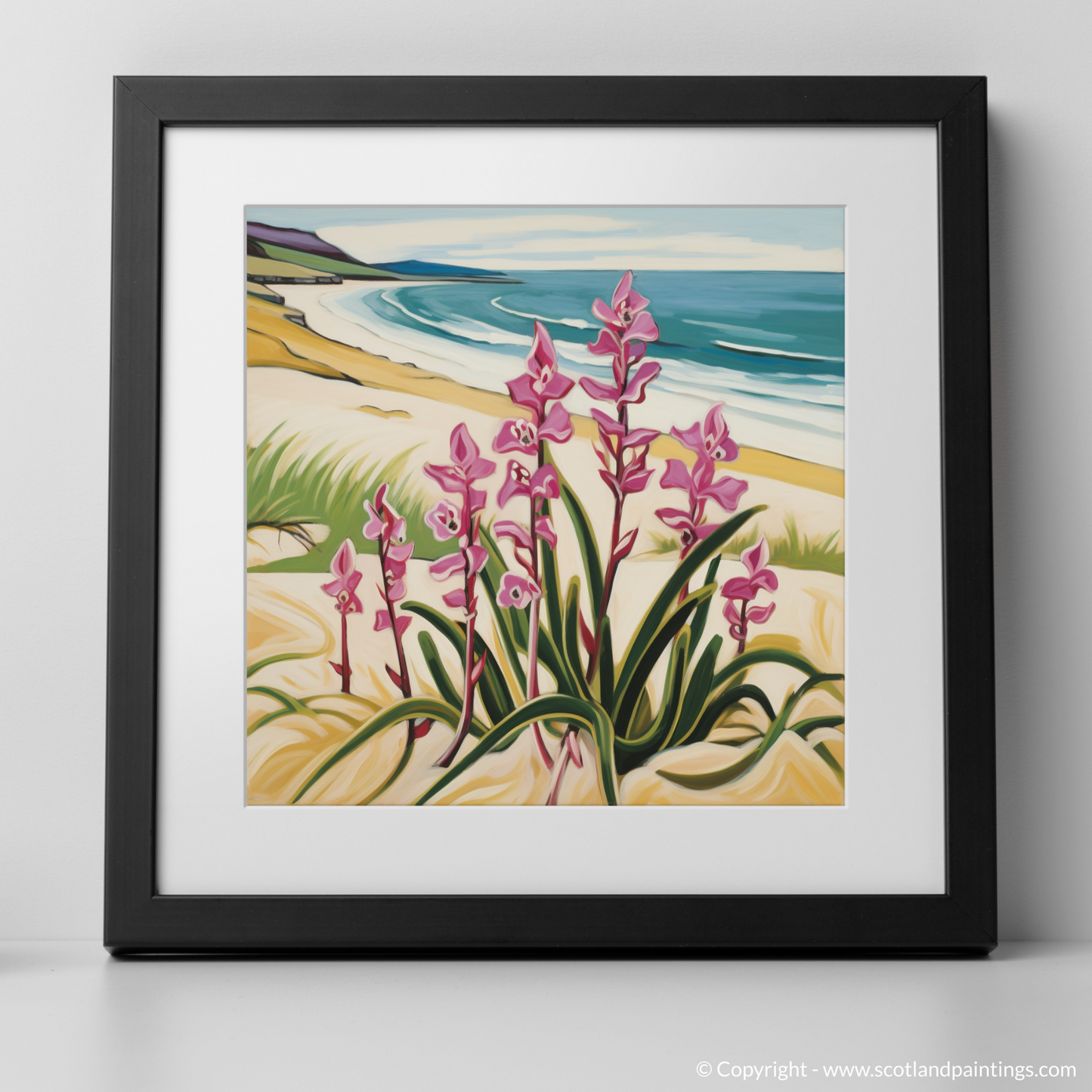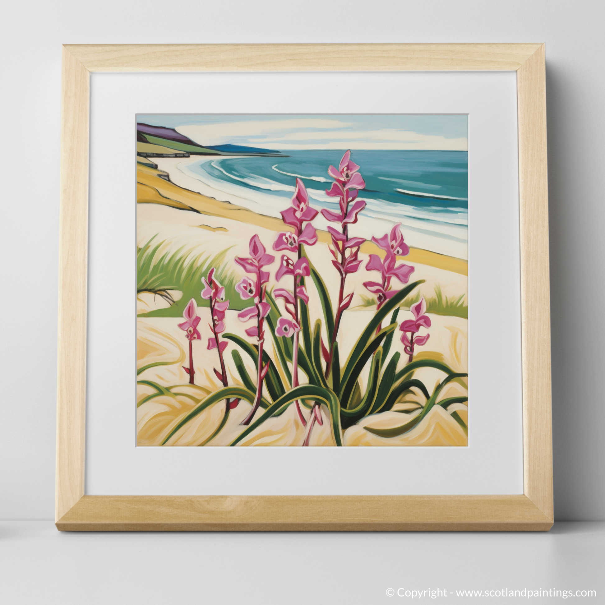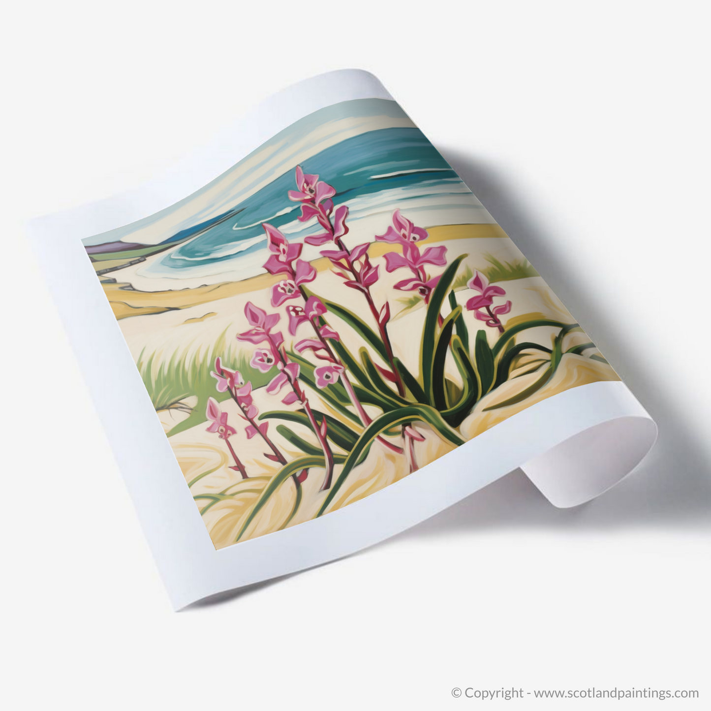 Capturing the whimsy of the natural world with a delightful simplicity, this charming print features a cluster of Coralroot orchids, standing proud and vibrant against a serene backdrop of a coastal dunescape. Each petal is bathed in enchanting shades of pink, their delicate forms reaching towards the open sky in a dance of colour and vivacity.