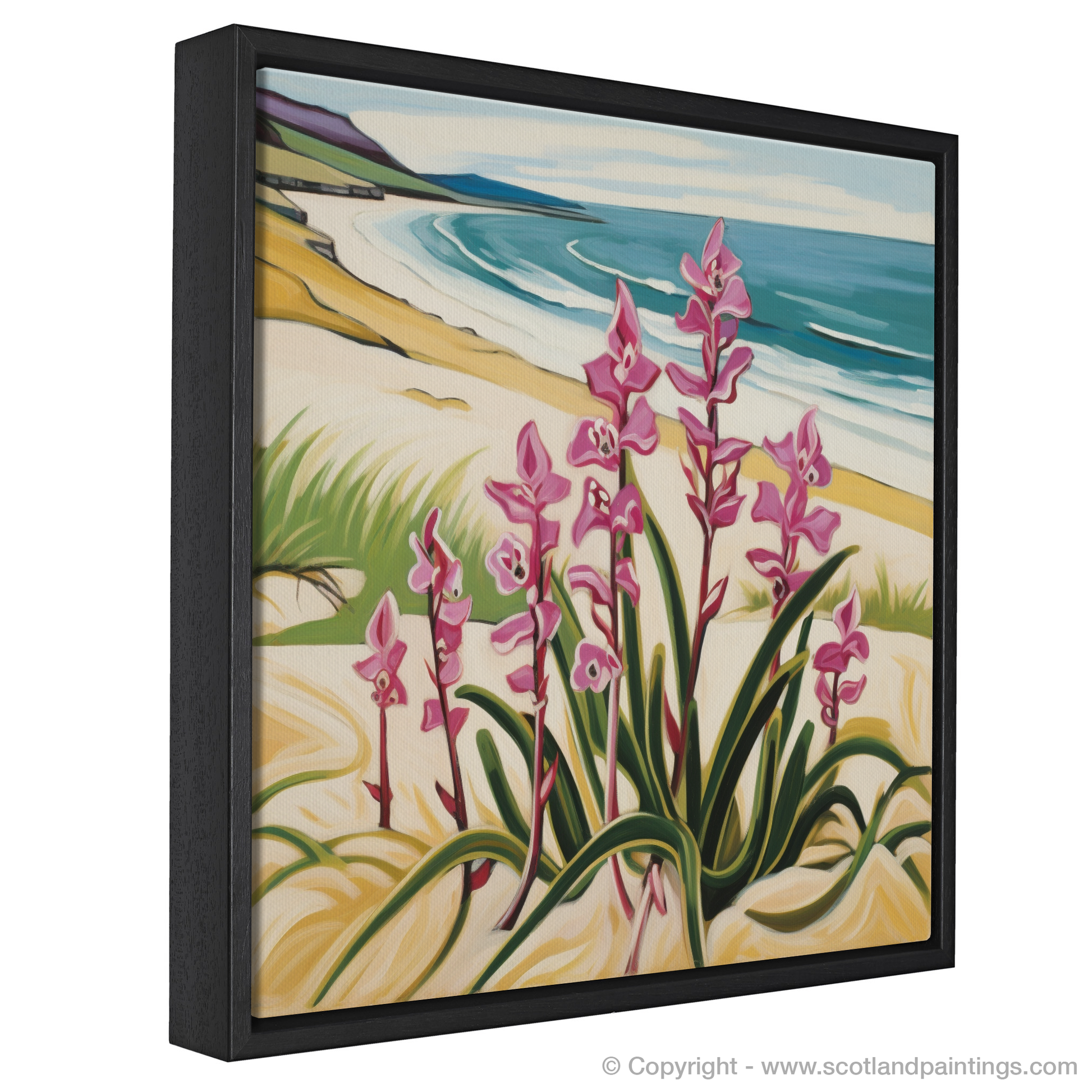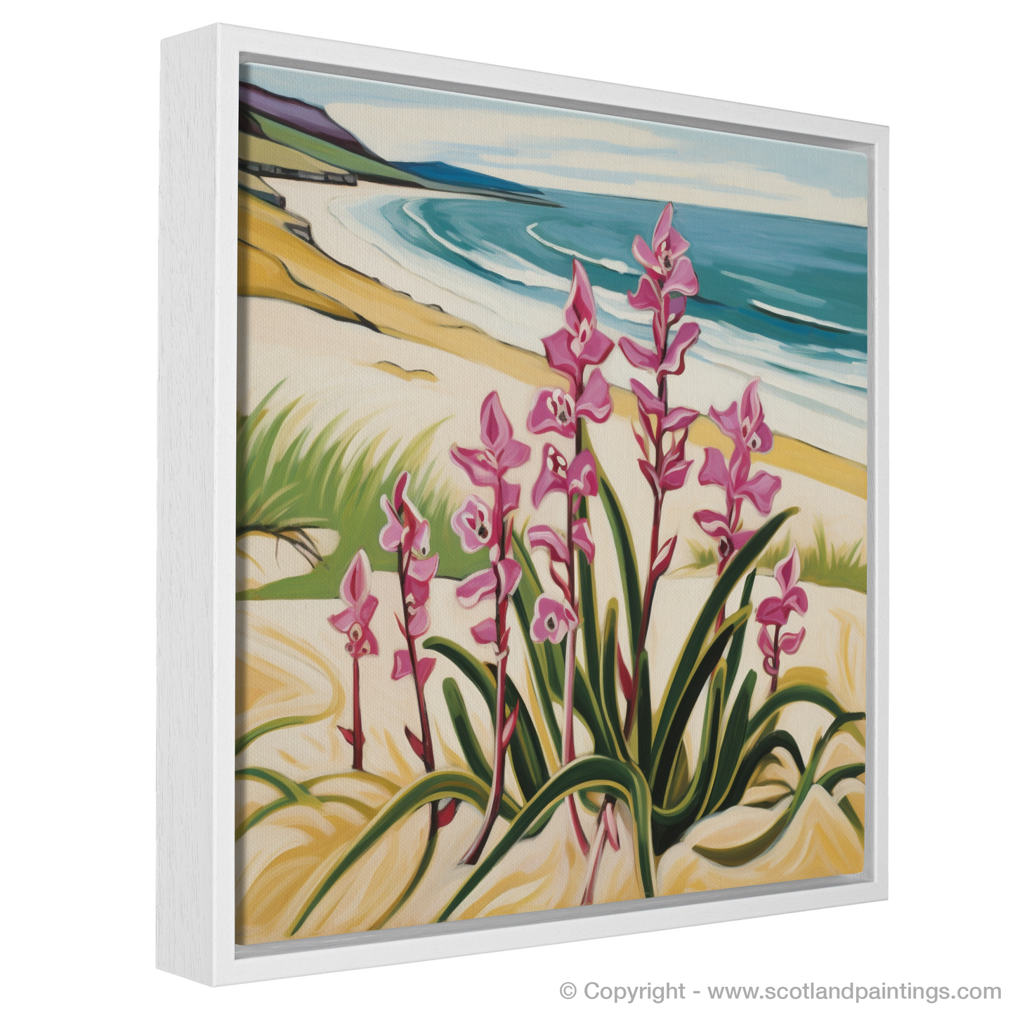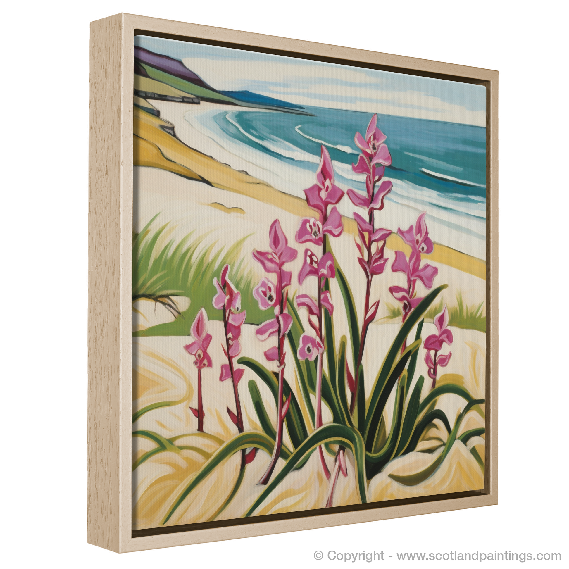 Capturing the whimsy of the natural world with a delightful simplicity, this charming print features a cluster of Coralroot orchids, standing proud and vibrant against a serene backdrop of a coastal dunescape. Each petal is bathed in enchanting shades of pink, their delicate forms reaching towards the open sky in a dance of colour and vivacity.