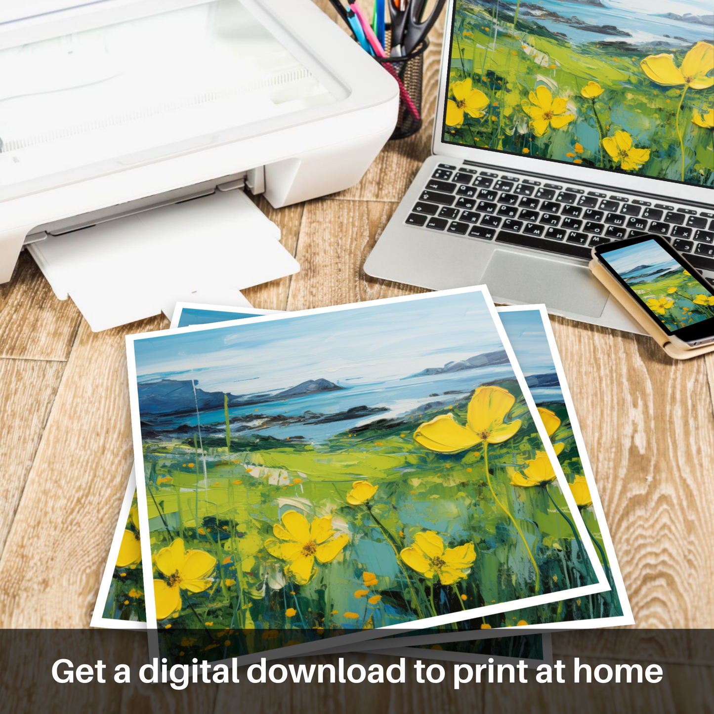 Let the vibrant essence of Scotland's rugged coastlines and delicate flora captivate you through the swirling abstraction of this exquisite print. Embodying the wild spirit of the natural landscapes of Argyll and Bute, this piece thrums with the dynamic energy of Abstract Expressionism.