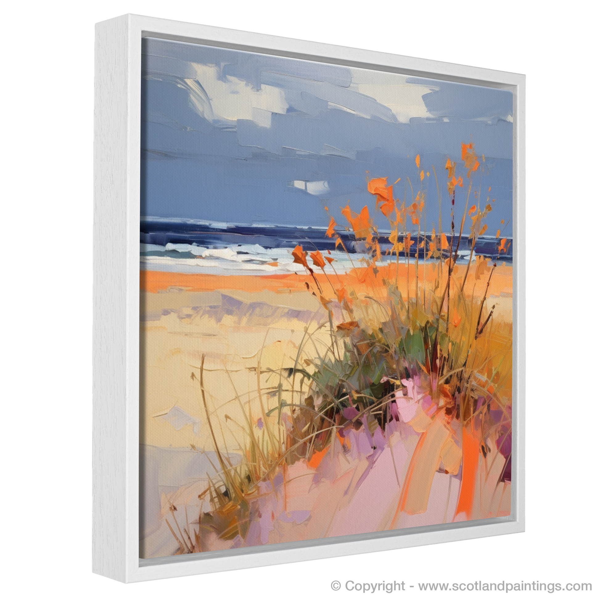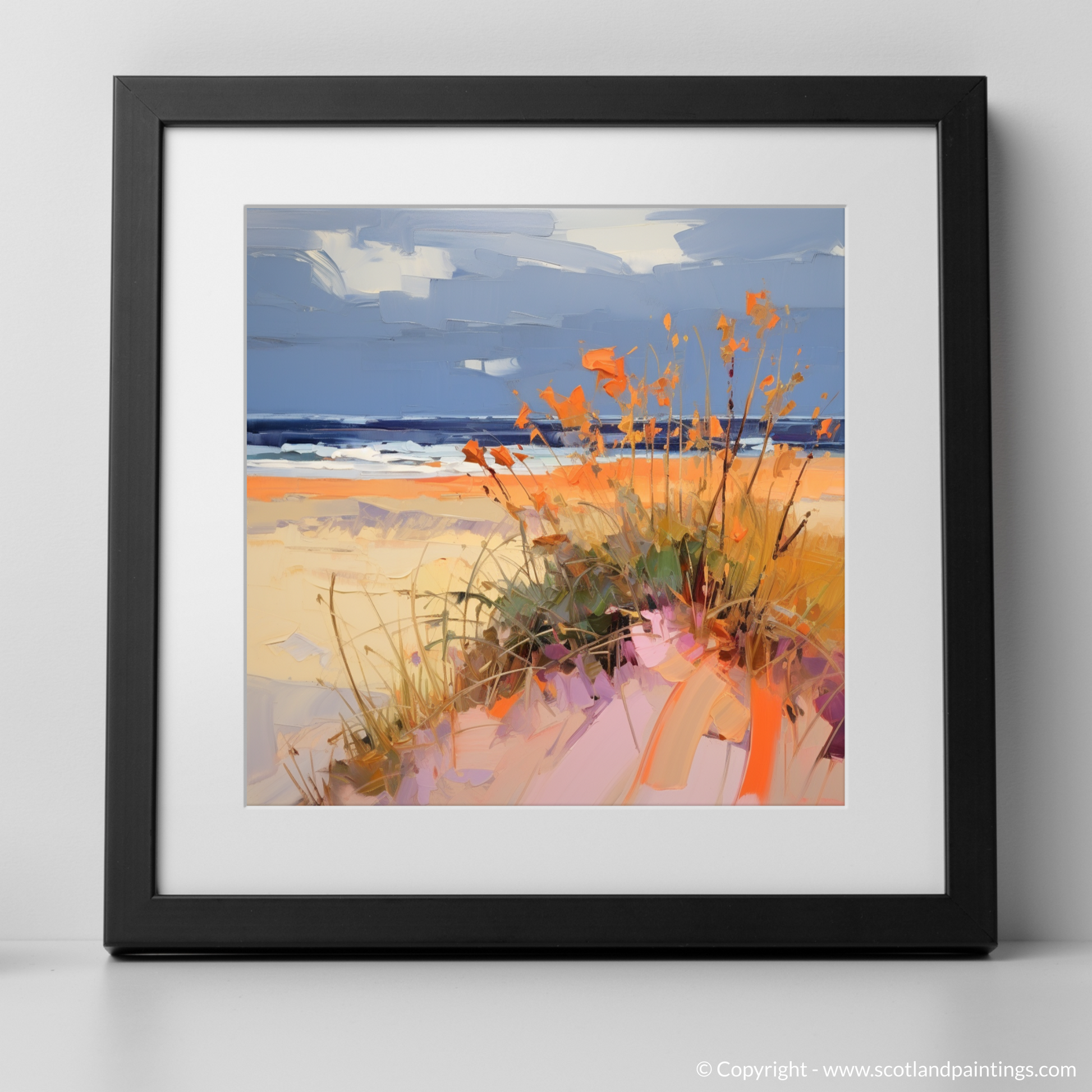 Intrinsic to this portrayal is a sense of serenity and untouched wilderness, with the undulating rhythm of the dunes and the distant, peaceful sea reflecting a timeless scene. The print, an integral piece of our 'Scottish Flowers and Flora' collection, distills the essence of the untamed Scottish coastline, providing an evocative and contemporary capture that will enhance any space it graces.