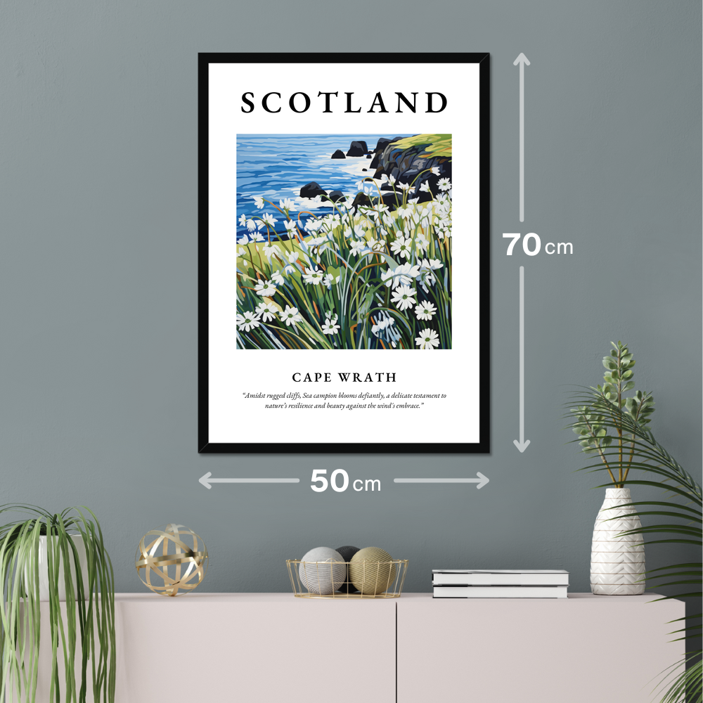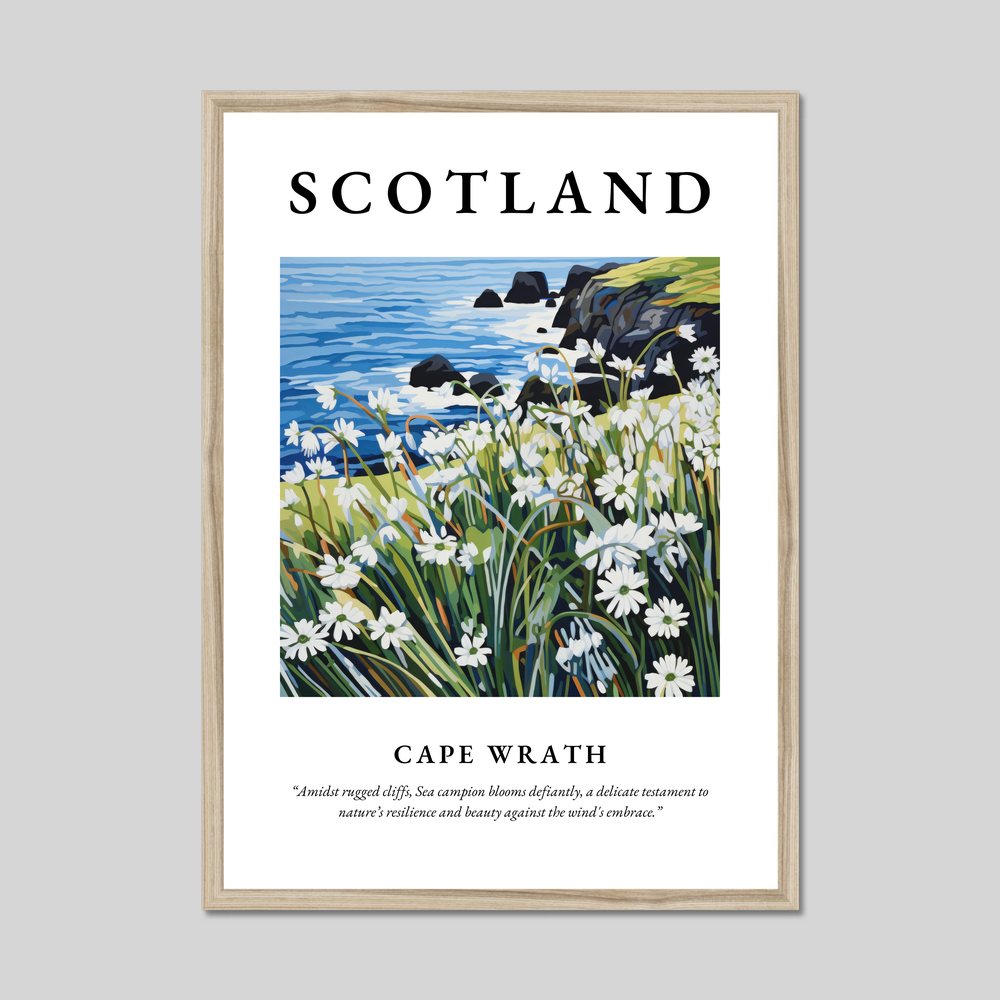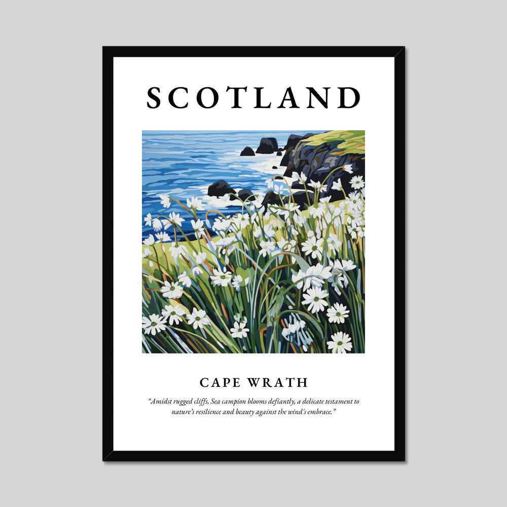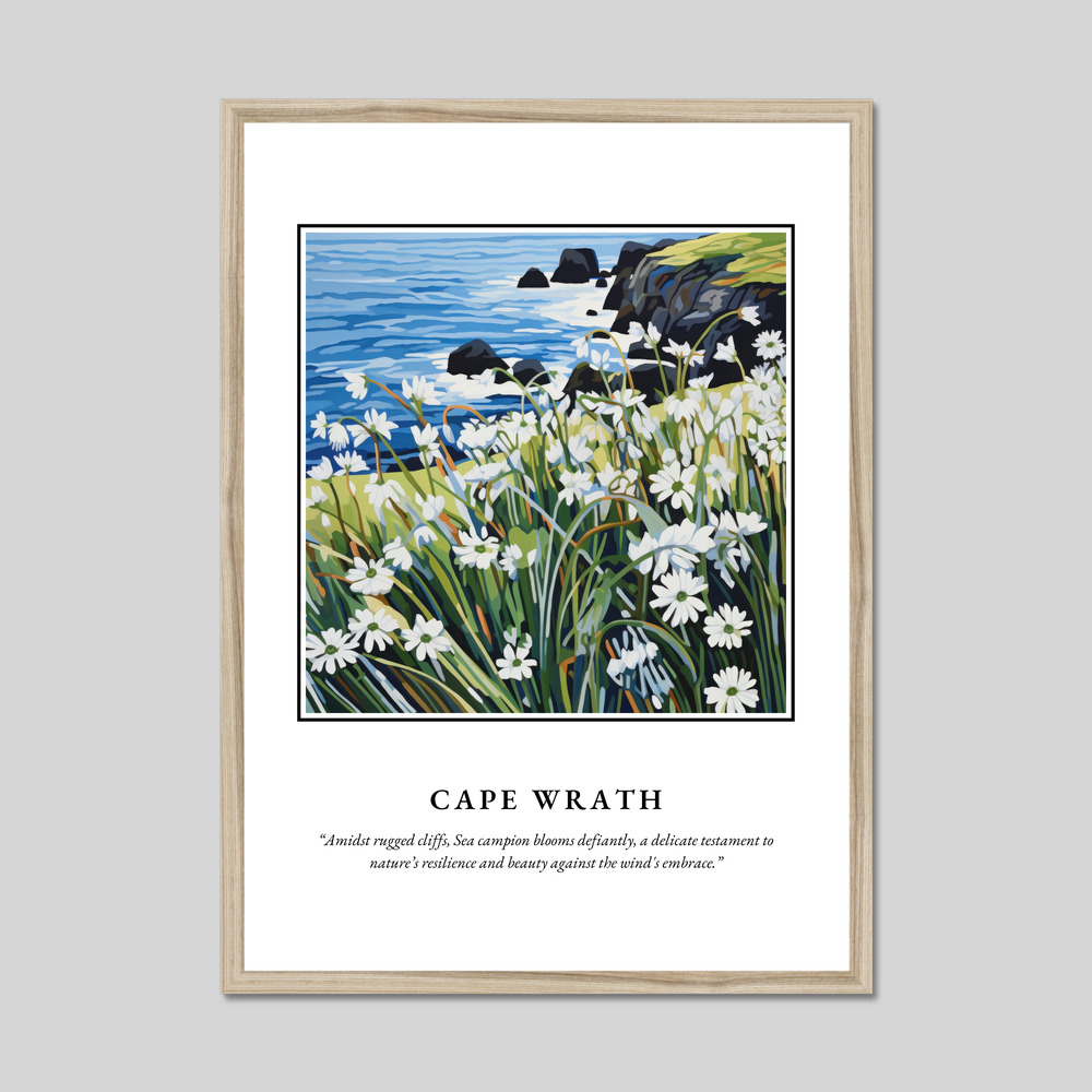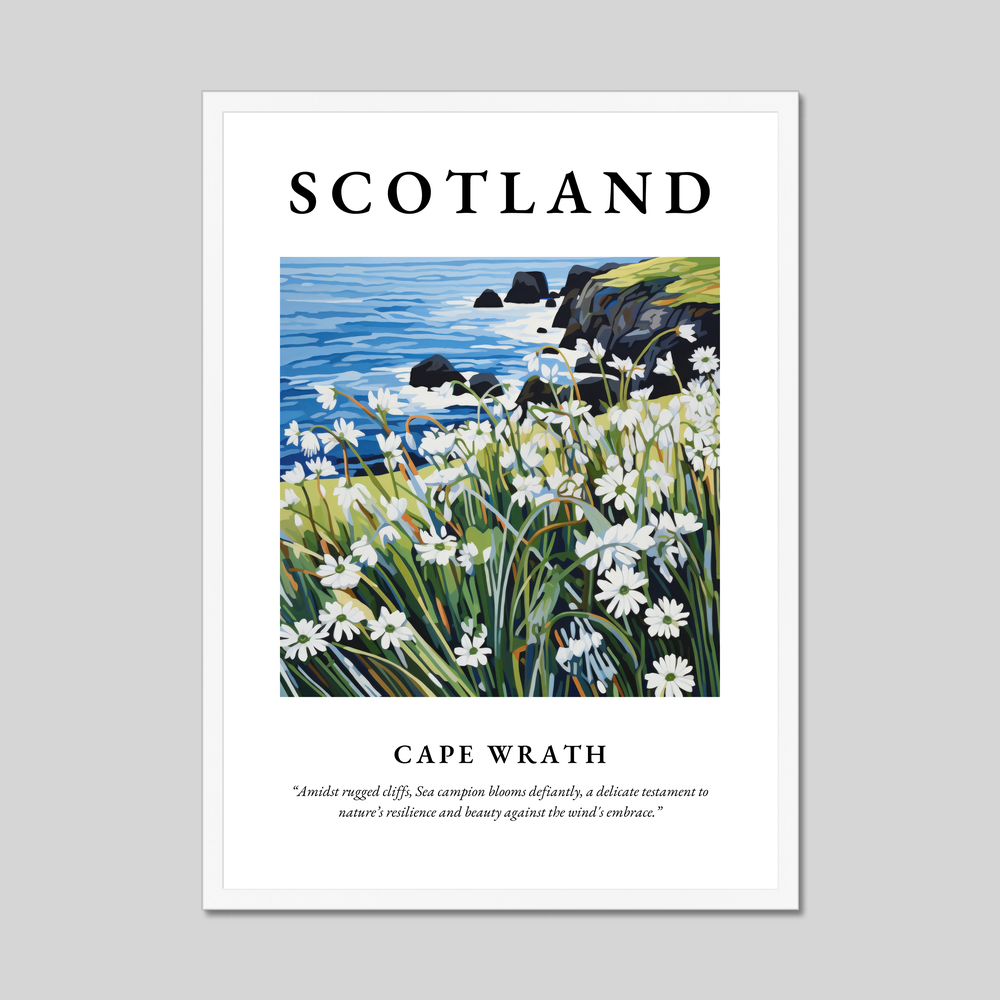 This artwork, with its abstract representation of this incredible headland and its resilient flora, invites contemplation and admiration. Whether you have walked the cliffs of Cape Wrath or simply yearn for the beauty of the Scottish wilderness, this framed poster is the perfect piece to transport you to that windswept edge of the world.