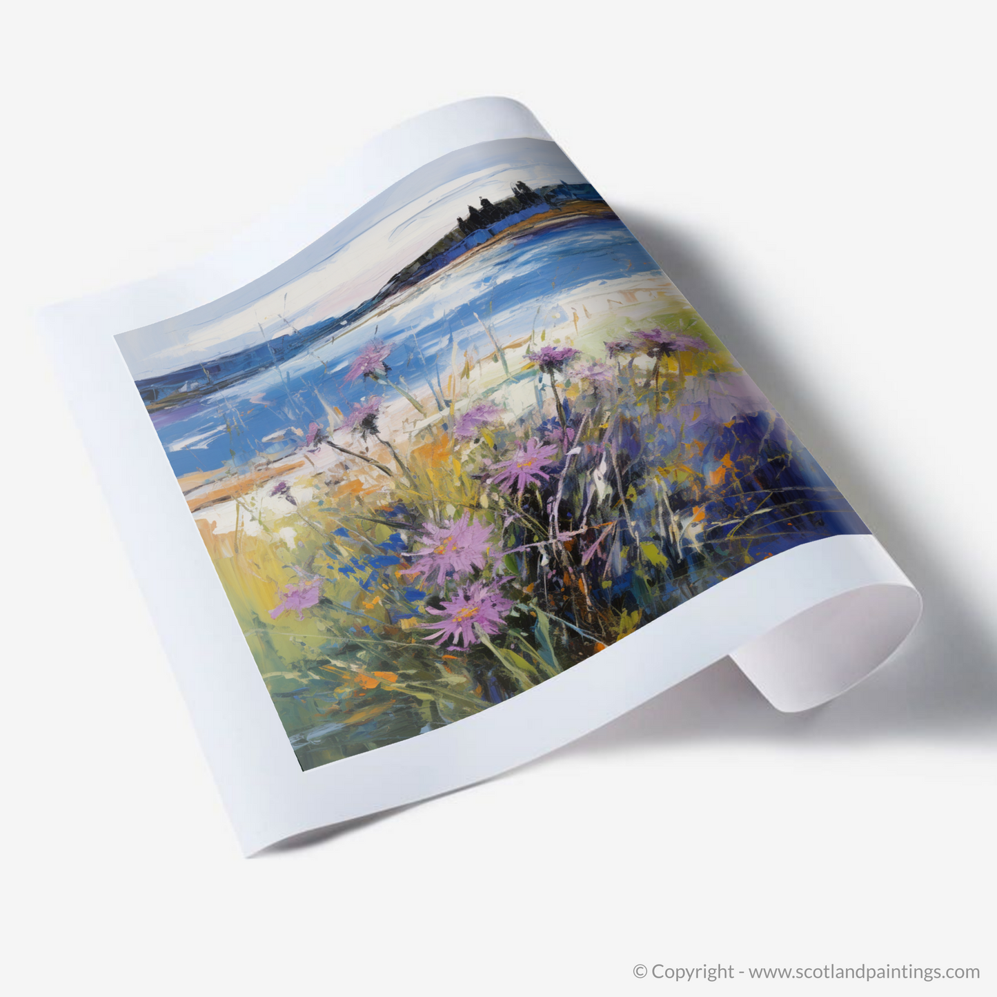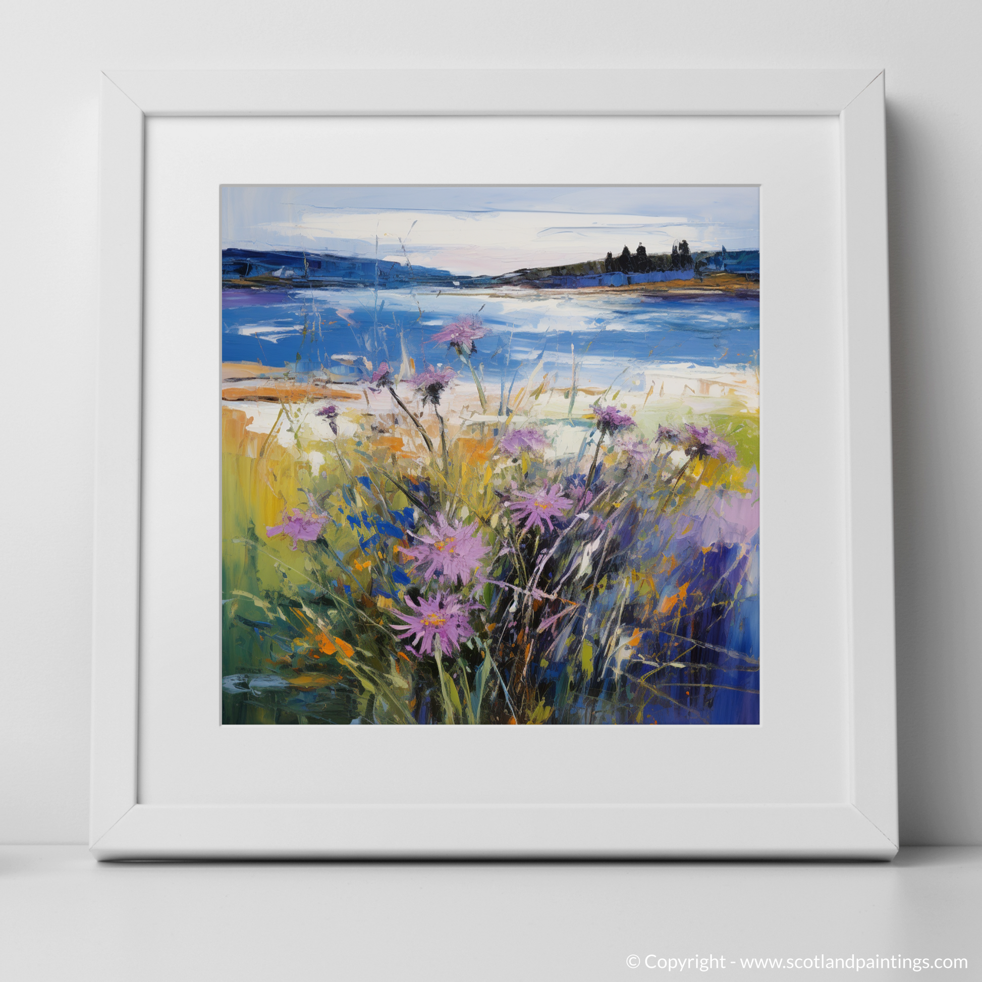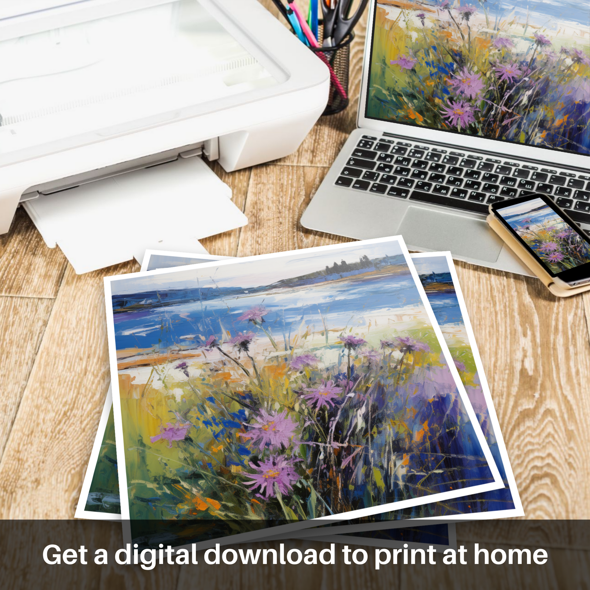 Immerse yourself in a captivating blend of colour and motion embodied in this exquisite print, hailing from our 'Scottish Flowers and Flora' collection. The artwork showcases the unique beauty of Sea aster as observed in the brackish marshes of Solway Firth, rendered in a style that fuses the spontaneous energy of abstraction with the evocative touch of Impressionism.