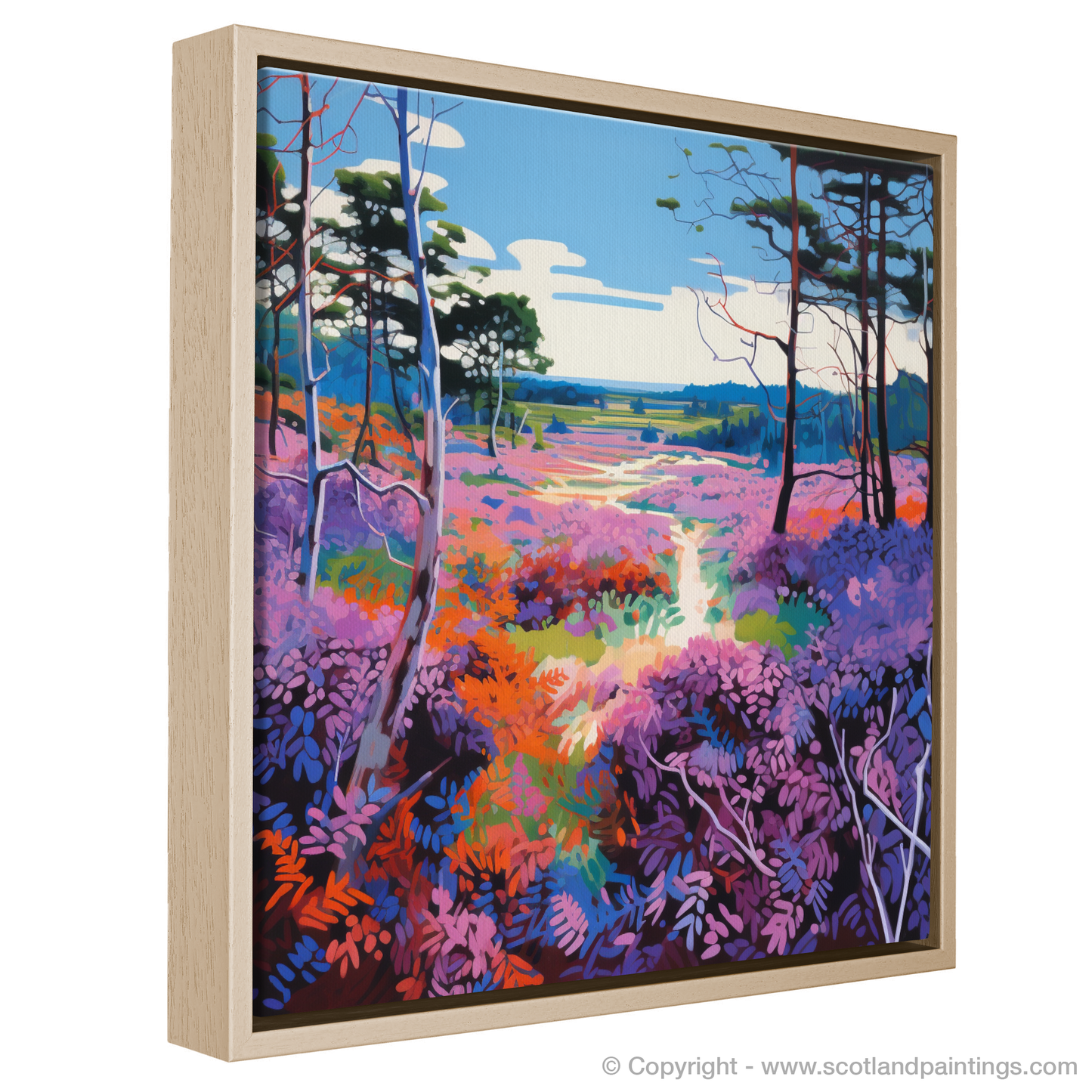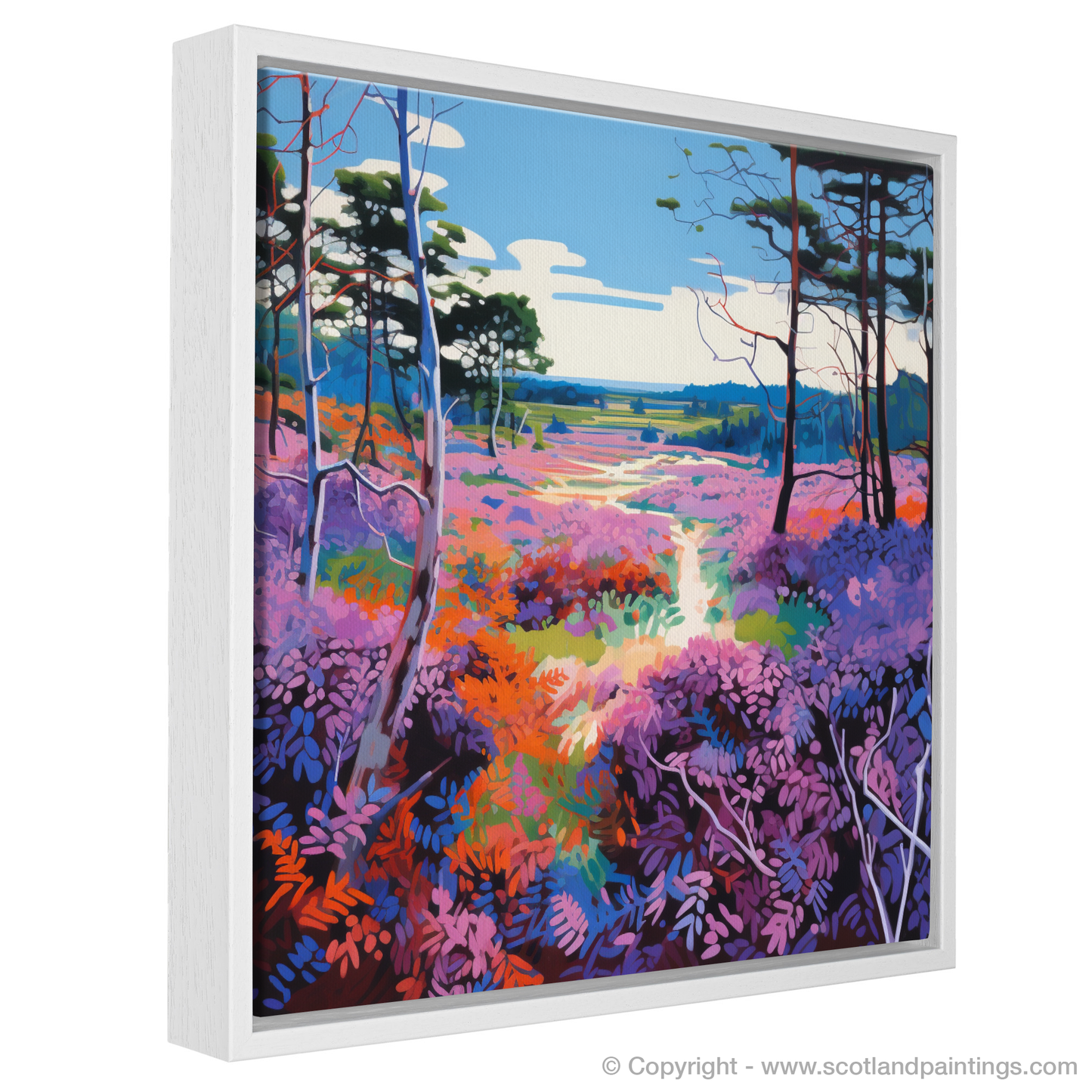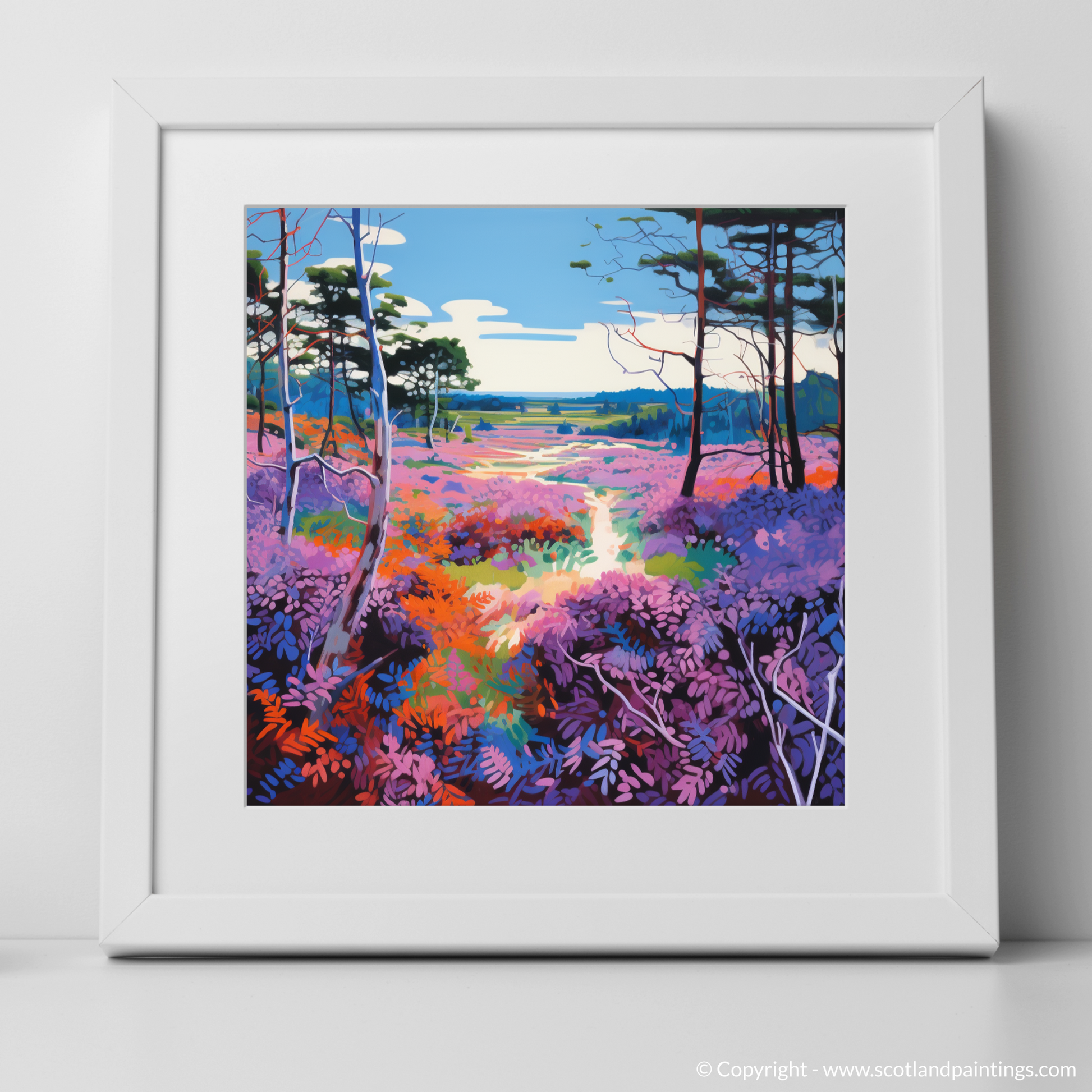 A winding path draws the viewer's eye through the composition, suggesting an inviting journey through Galloway Forest Park's renowned beauty. The playful yet exquisite use of colour and form invites both admiration and contemplation, making this print an ideal choice for anyone looking to bring the charm of Scottish Flowers and Flora into their space.