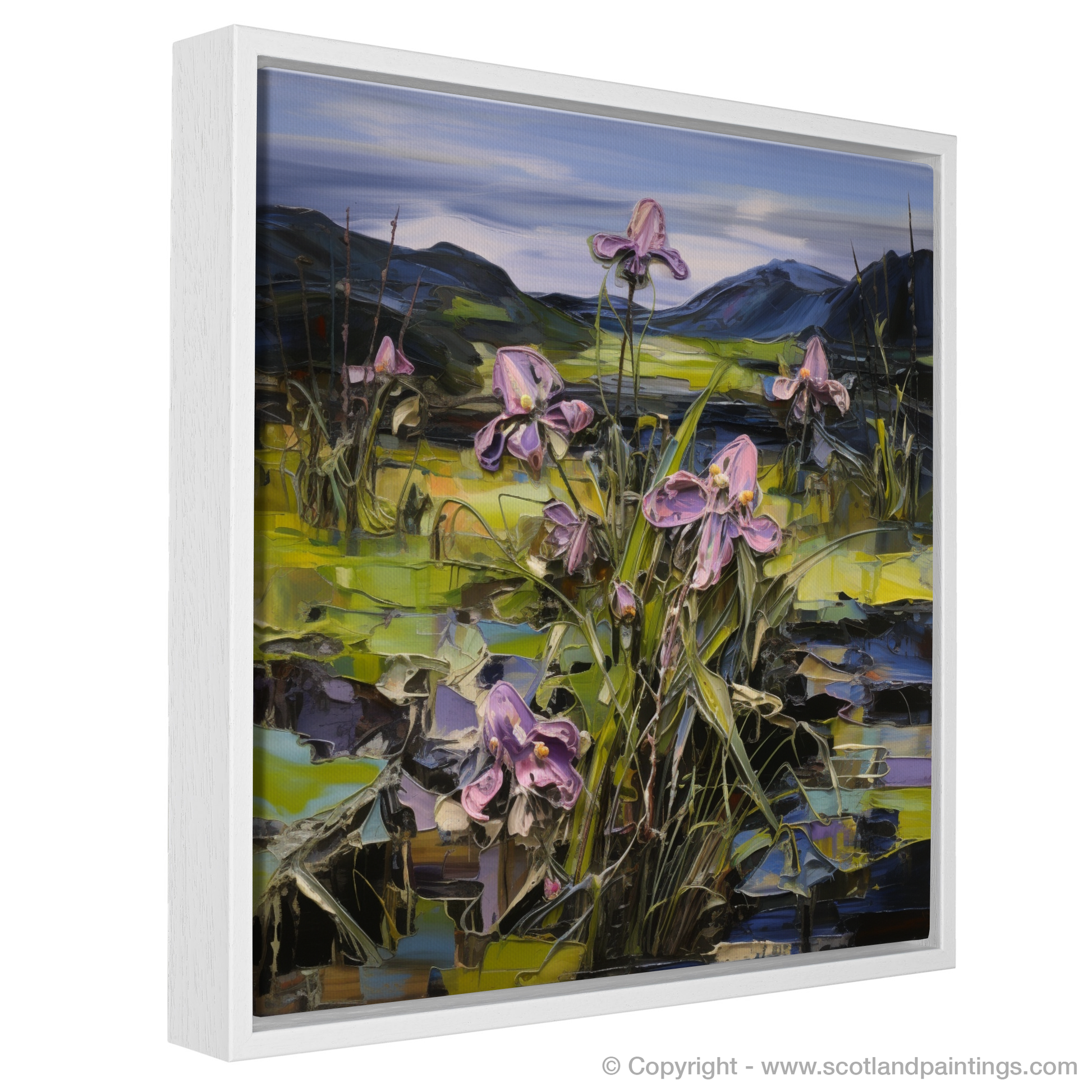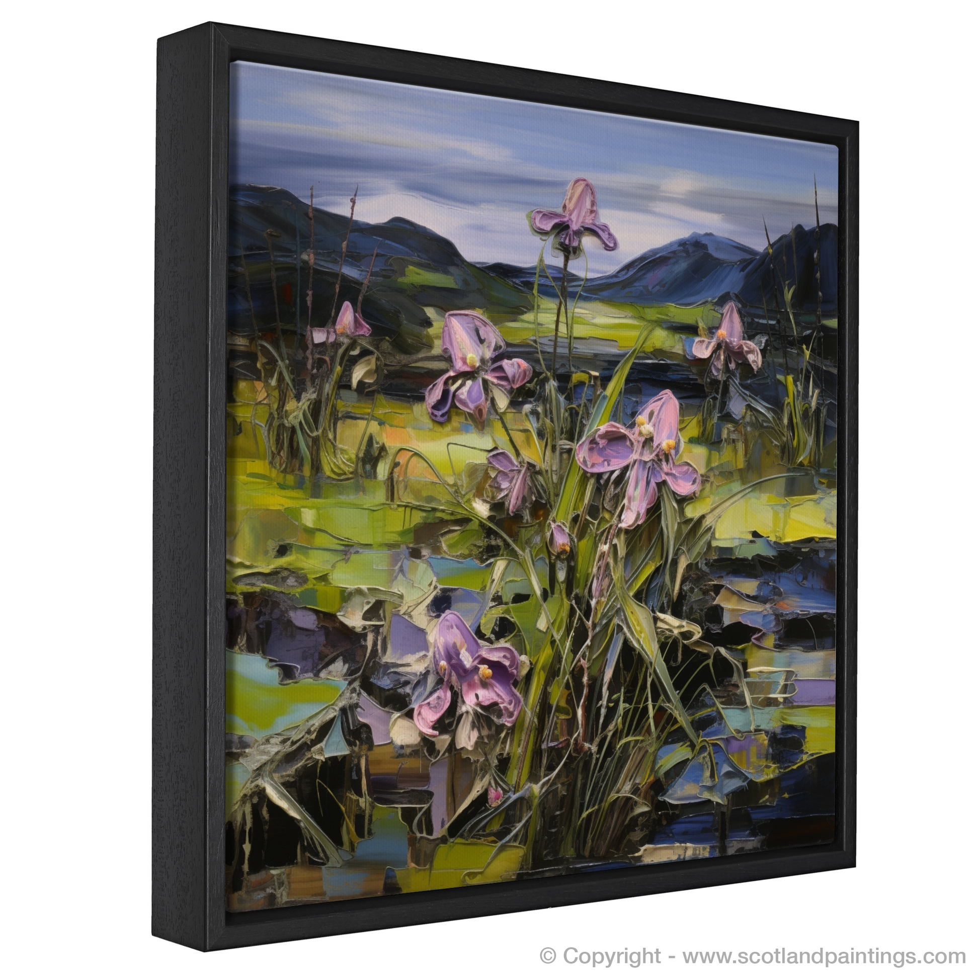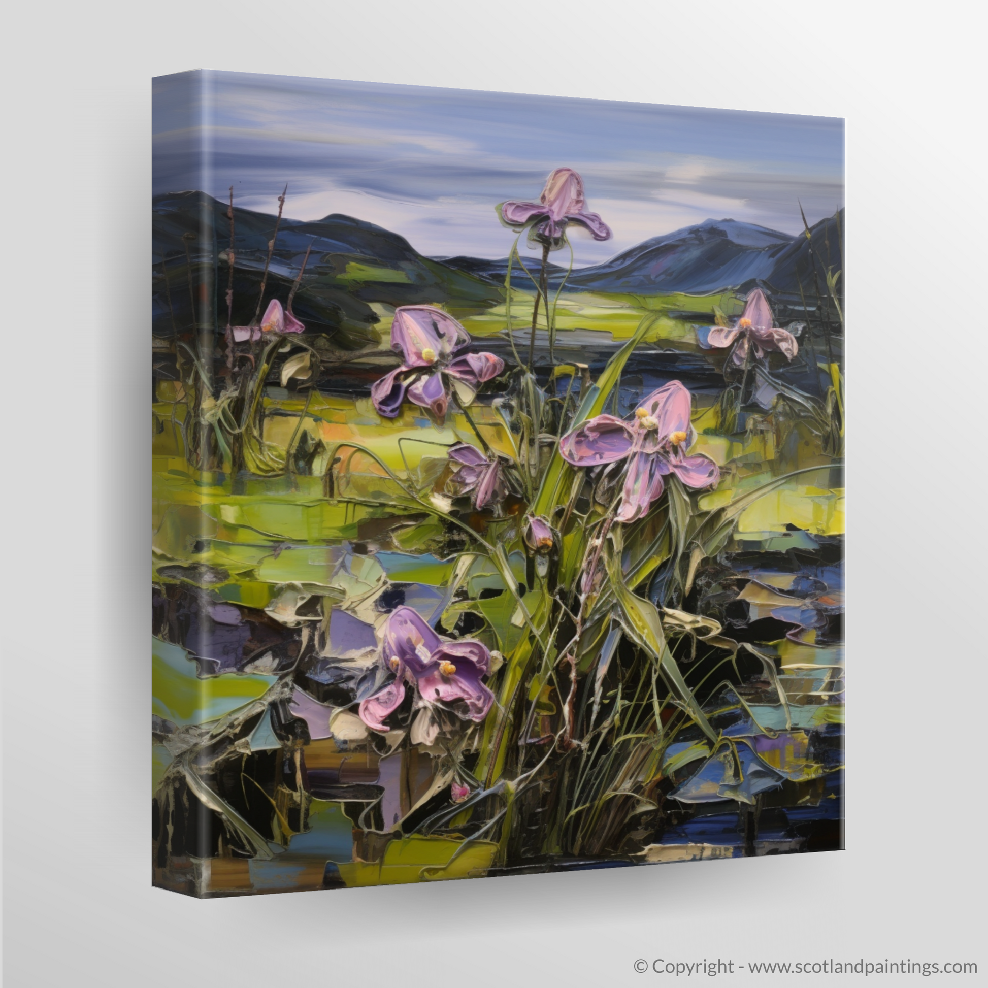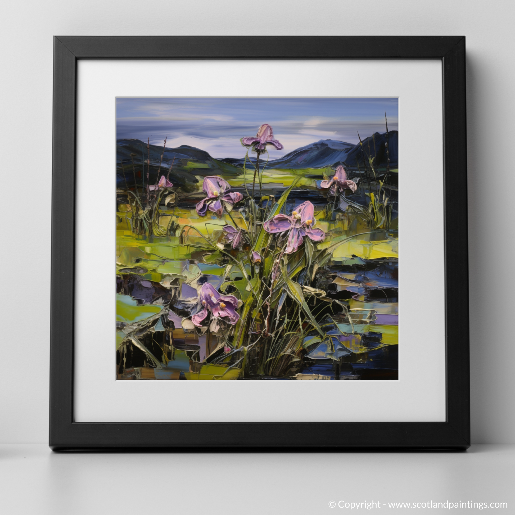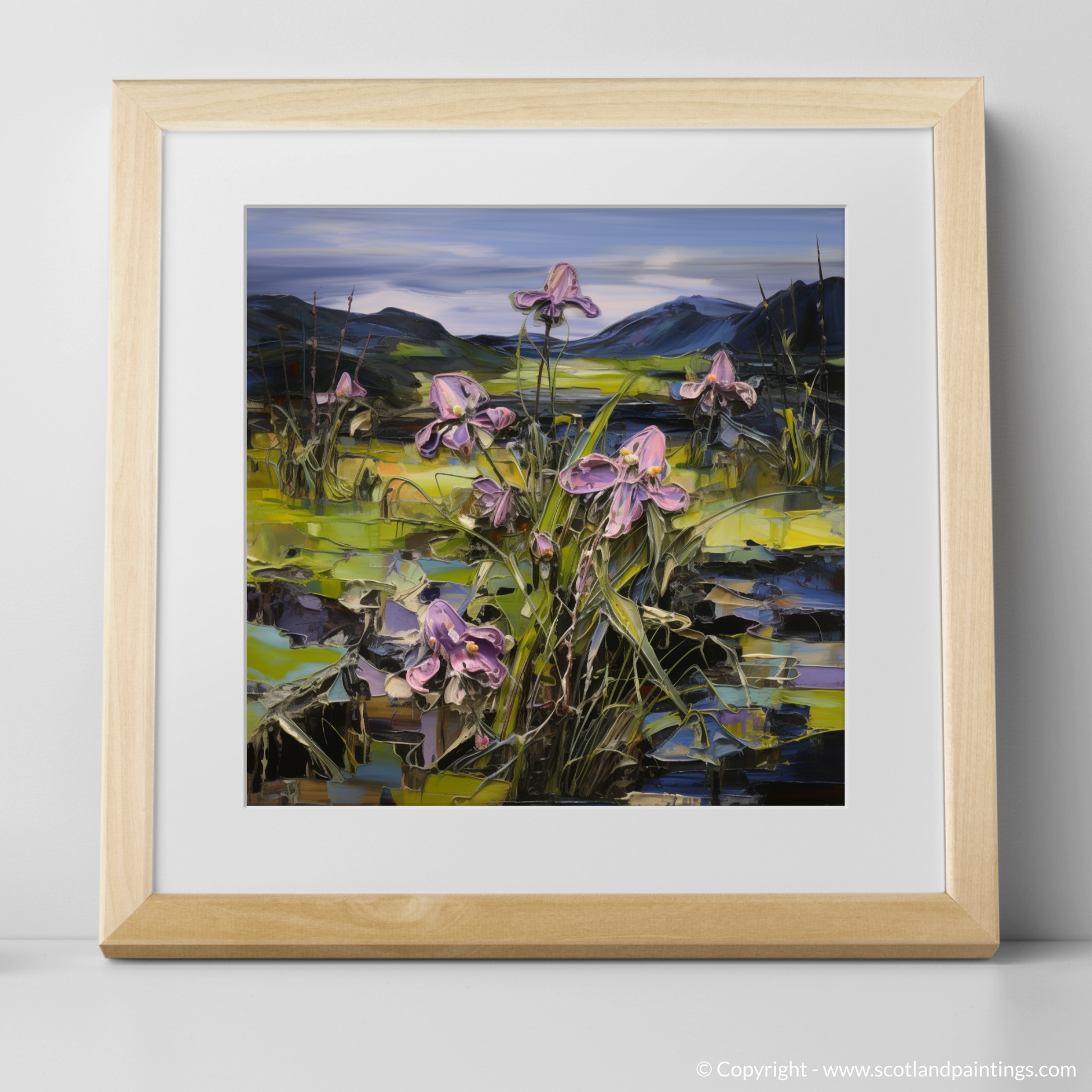 Immerse yourself in the rich tapestry of Ardnamurchan's natural beauty with this enchanting print, masterfully capturing the essence of Scottish wildflowers against a backdrop of the area's moody landscapes. At the heart of this artwork lies the captivating Butterwort, a native jewel of the boggy terrain, rendered in a palette of subtle purples and greens that seem to emerge and recede into the canvas in true Abstract Impressionist form.